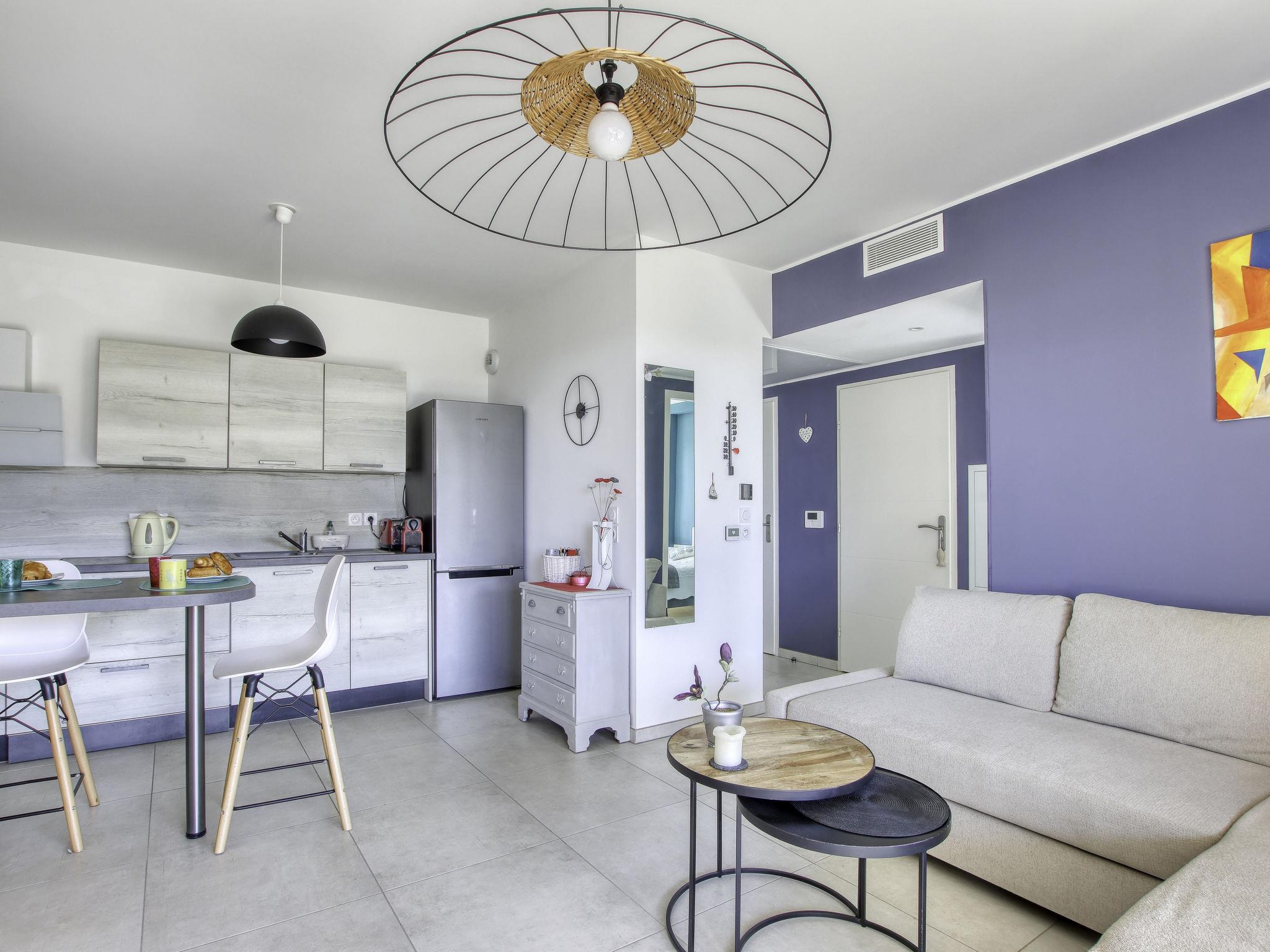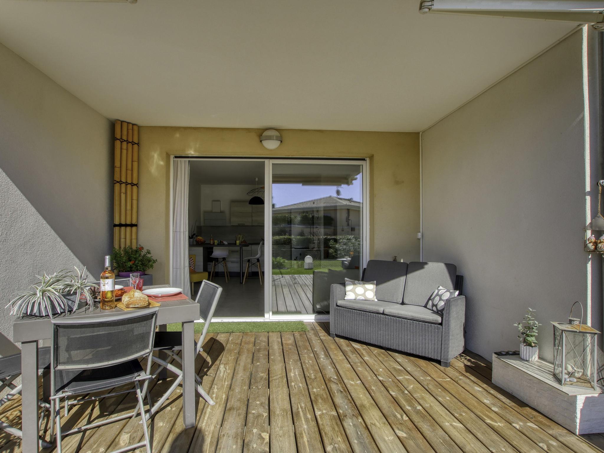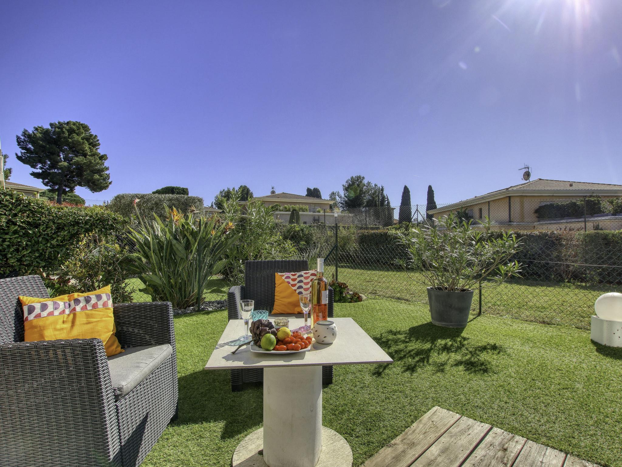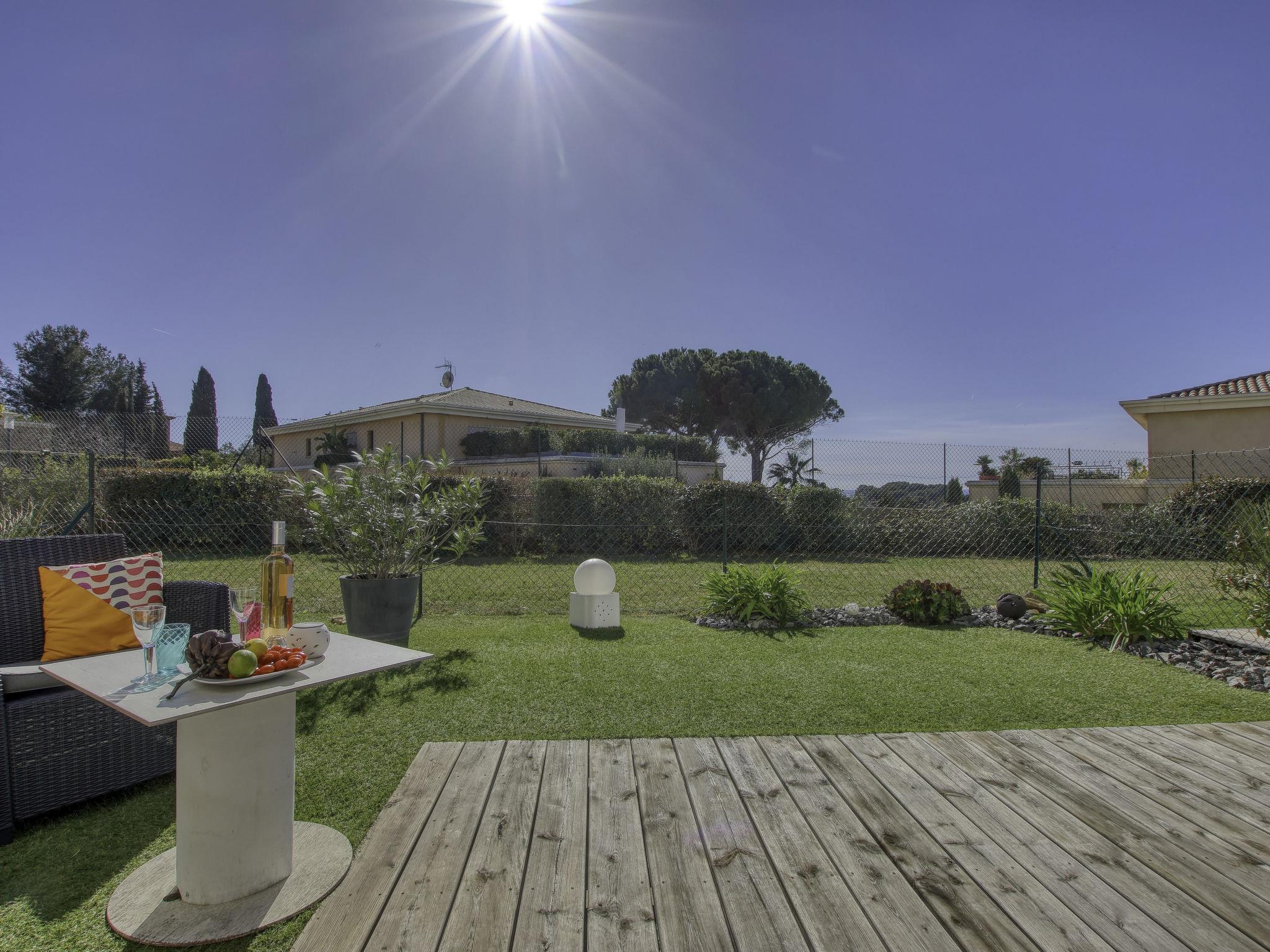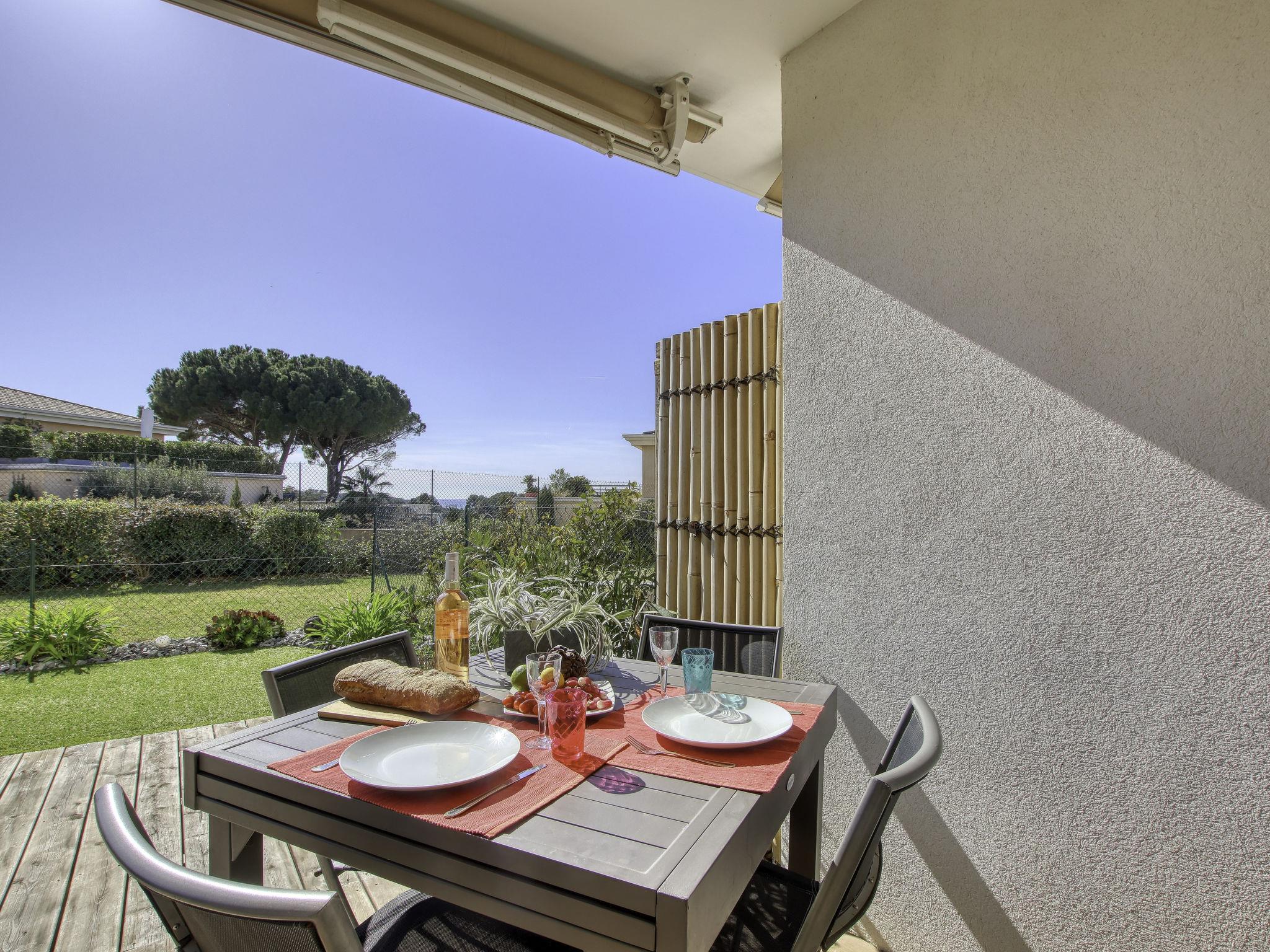 2-room apartment 40 m2, on the ground floor. Bright, comfortable and beautiful furnishings: living/dining room 23 m2 with TV (flat screen), air conditioning. Exit to the garden, to the terrace. 1 room with 1 french bed (160 cm, length 200 cm), air conditioning. Exit to the garden. Open kitchen (dishwasher, 3 induction hot plates, toaster, kettle, freezer, electric coffee machine, Capsules for coffee machine (SENSEO) extra, combination microwave). Shower, sep. WC. Forced-air heating. Terrace 40 m2, south-west facing position, patio, south-west facing position. Terrace furniture. Partial distant view of the sea. Facilities: washing machine. Internet (WiFi, extra). Garage space n 15 (1 car), height 186 cm, width 255 cm. Please note: non-smokers only. TV only FR. Smoke alarm. Offer by a private individual according to Art. 155, IV of CGI. 83123001755SF