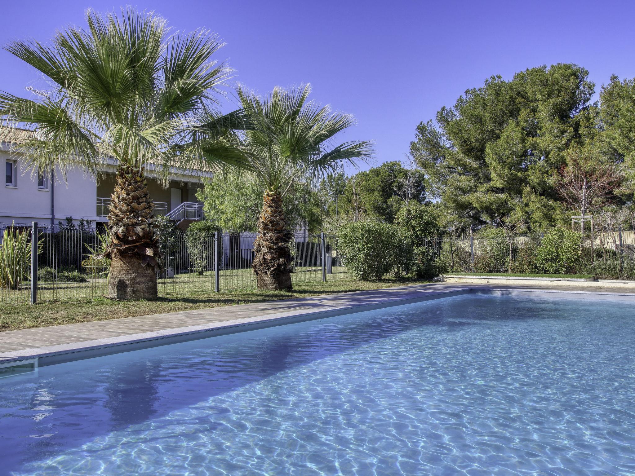 Residence "Les Terrasses d'Azur", built in 2020. In a quiet, elevated position residential area (villas), 700 m from the sea, 700 m from the beach, in a cul-de-sac. For shared use: well-kept garden (fenced), swimming pool (14 x 5 m, seasonal availability: 01.Jul. - 30.Sep. pool opening hours: 09:00-20:00) with alarm system. Grocery 1 km, bus stop 700 m, sandy beach "de la gorguette" 700 m. Golf course (27 hole) 6 km. Nearby attractions: Aqualand 10 km. Hiking paths: Sainte Baume,Sainte Victoire,Calanque, Cassis,Porquerolles,Ile verte,Embiez. Residence with electric gates. The keys‘ handover takes place by the agency Interhome in SIX FOURS LES PLAGES, 5 km. The residence has a bowling alley and animals are not accepted.