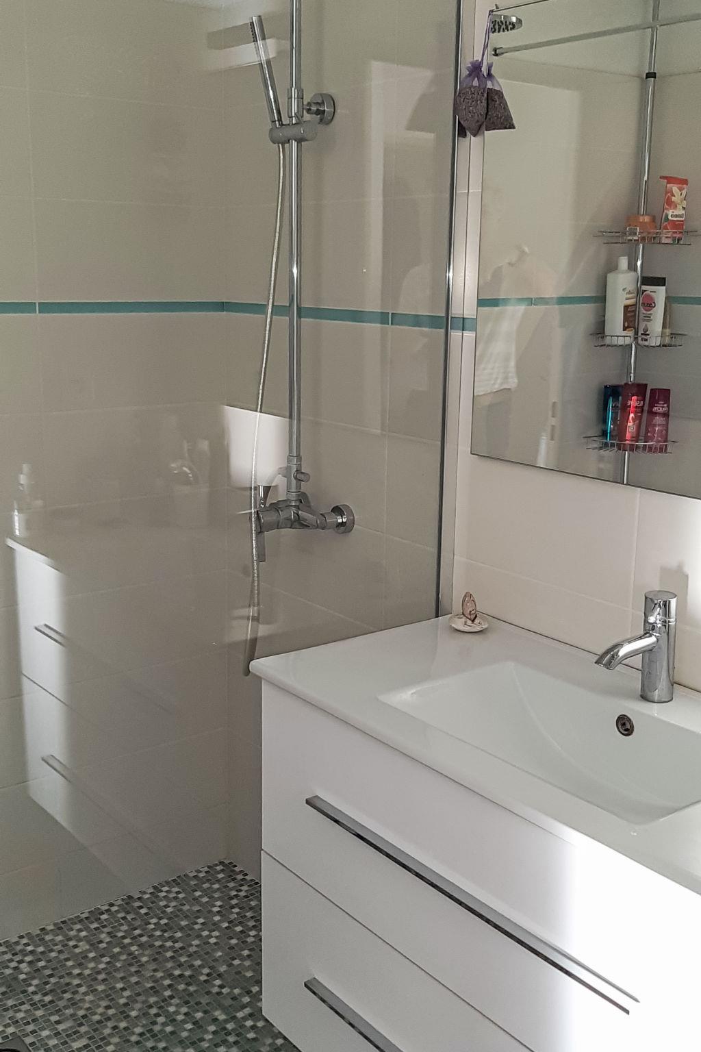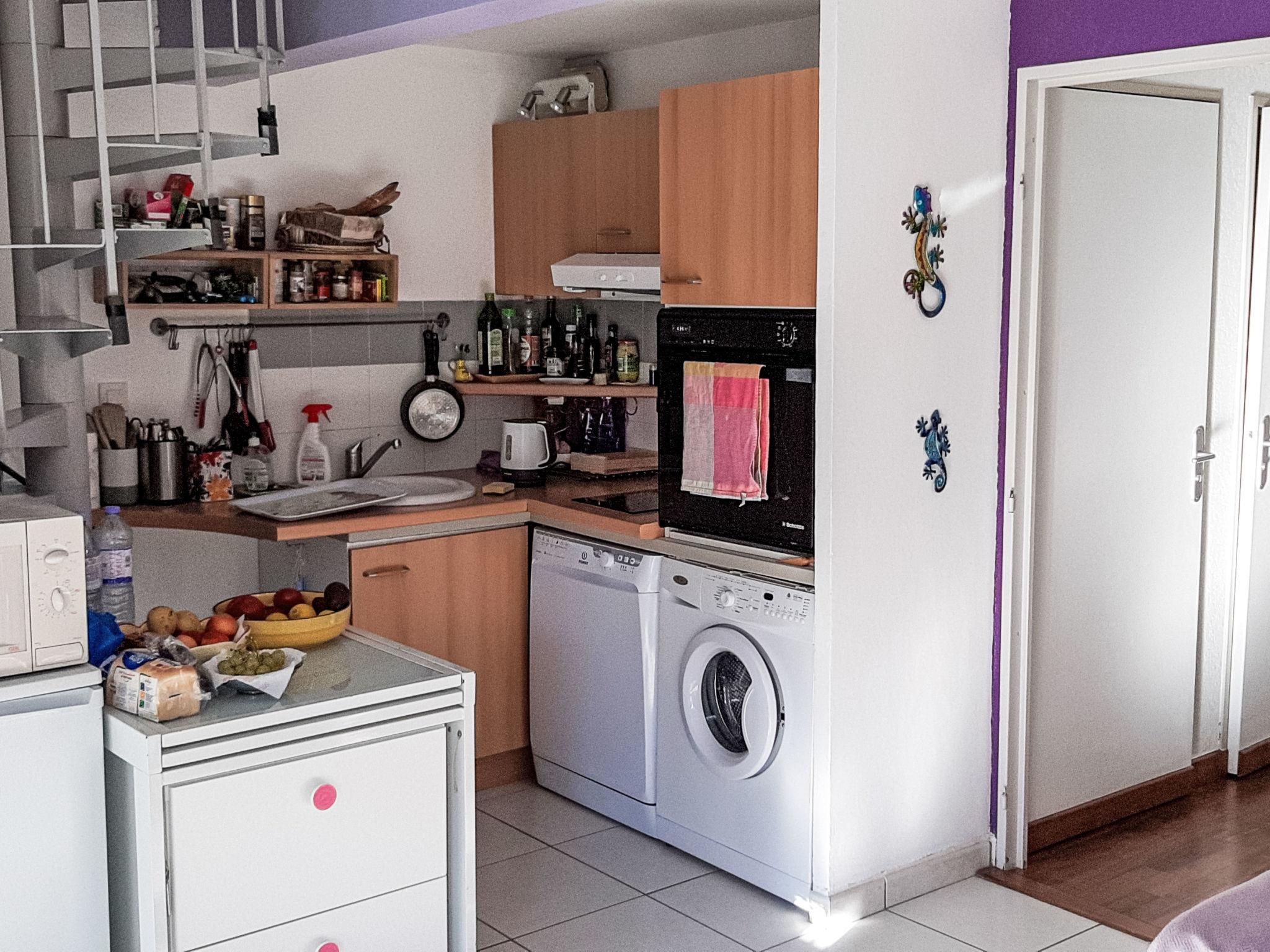 You will have a fully equipped kitchen area (coffee maker, kettle, toaster, hob, washing machine, oven, dishwasher) opening onto a living room, two bedrooms, one of which is on the mezzanine (140 beds), a small bedroom with shelves without beds very practical for storage, a bathroom with sink and shower with 2 jets on the ground floor, a separate toilet, a terrace that will allow you to enjoy the aperitif/your meals in the evening, with friends or family, against a background of unique and evolving colours of the reflections of the setting sun on the vegetation without vis-à-vis.
