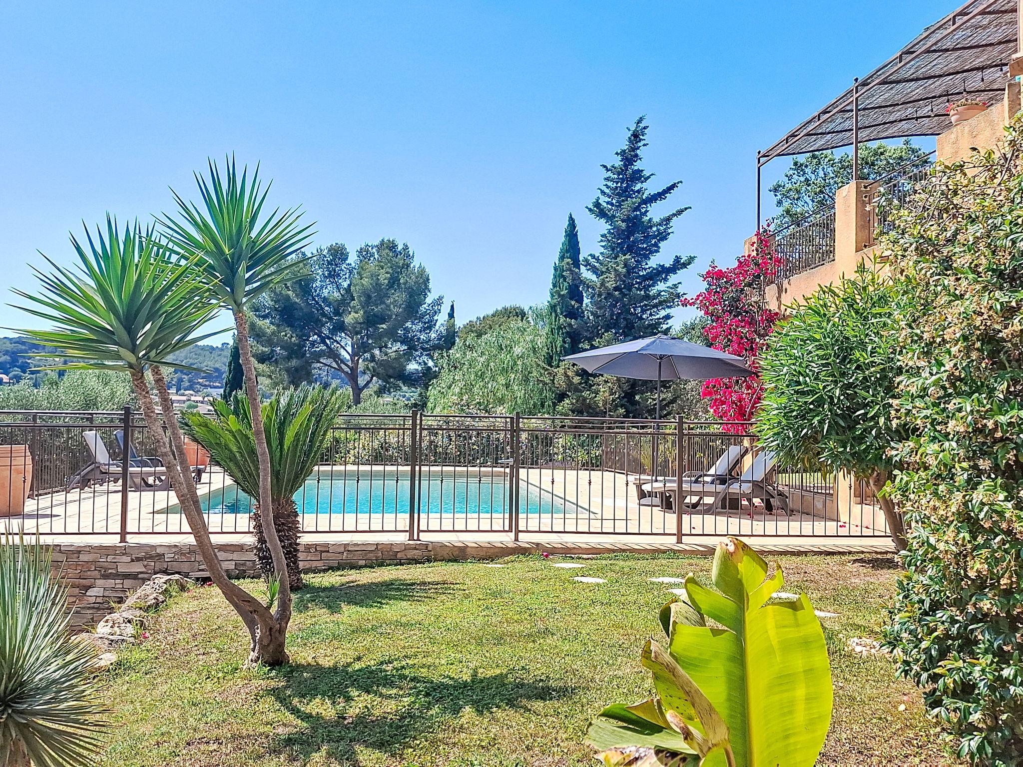 3-family house "Douce parenthése". In the resort 3 km from the centre of Sanary sur Mer, in a quiet position in the residential district, 3.5 km from the sea, in a cul-de-sac. For shared use: well-kept terraced garden (fenced), swimming pool (11 x 5 m, depth 90 - 150 cm, seasonal availability: 01.May. - 30.Sep.) with internal staircase. Parking. Grocery 3 km, restaurant 3 km, bus stop 1.5 km, sandy beach "Plage la Gorguette" 3 km. Golf course (18 hole) 12 km. Hiking paths: Sainte Baume, Sainte Victoire, Calanques Port-Cros, Porquerolles, Ile verte, Embiez, Figuerolles, Cassis. Please note: the keys‘ handover takes place by the agency Interhome in SIX FOURS LES PLAGES, 5 km. The owner lives in the same residence. The owner has a dog.