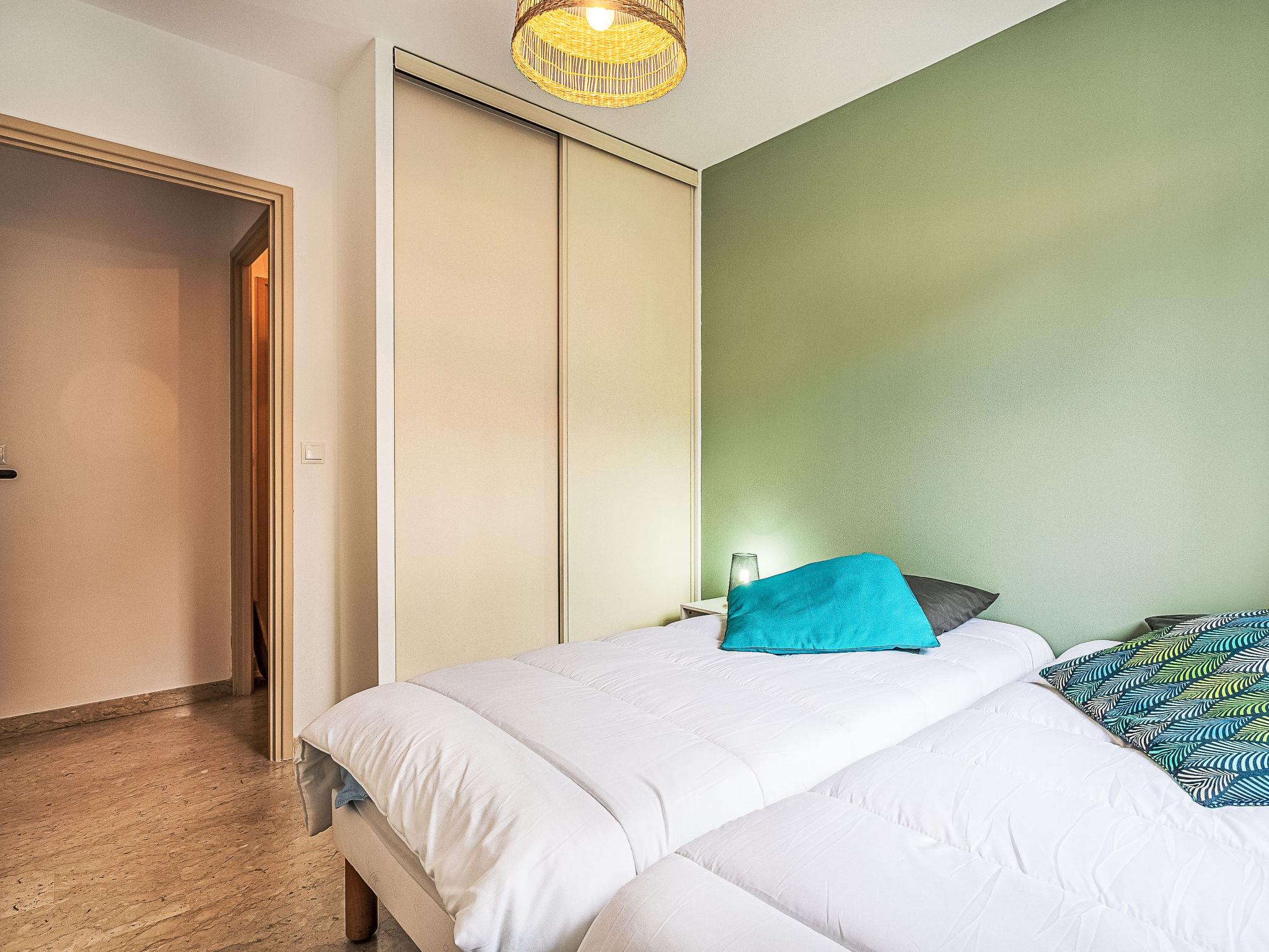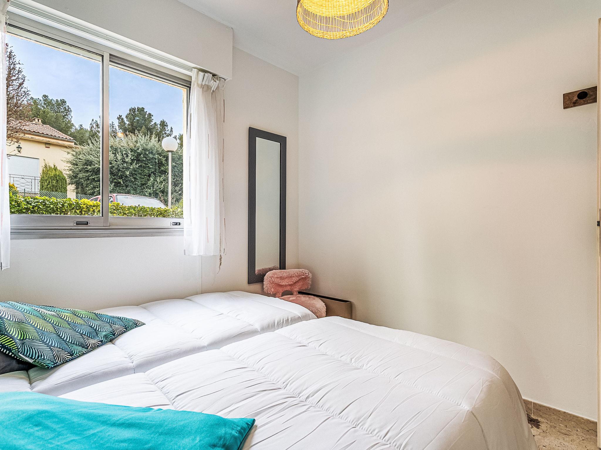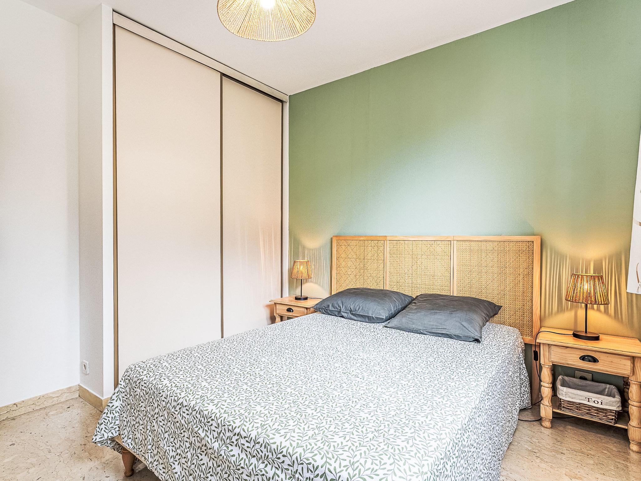 3-room apartment 60 m2, on the upper ground floor. Bright, beautiful furnishings: living/dining room with veranda with 1 sofabed (140 cm, length 190 cm), TV (flat screen), air conditioning. Exit to the veranda. 1 room with 1 french bed (140 cm, length 190 cm), TV (flat screen), fan. 1 room with 2 beds (90 cm, length 190 cm), fan. Kitchen (3 hot plates, oven, dishwasher, toaster, kettle, microwave, freezer, electric coffee machine). Shower, sep. WC. Air-conditioning. Terrace 10 m2, roofed, south facing position and west facing position. Terrace furniture. Facilities: washing machine, iron. Internet (WiFi, free). Parking (1 car). Please note: TV only FR. Smoke alarm, no lift. Offer by a private individual according to Art. 155, IV of CGI. 83123001943OH