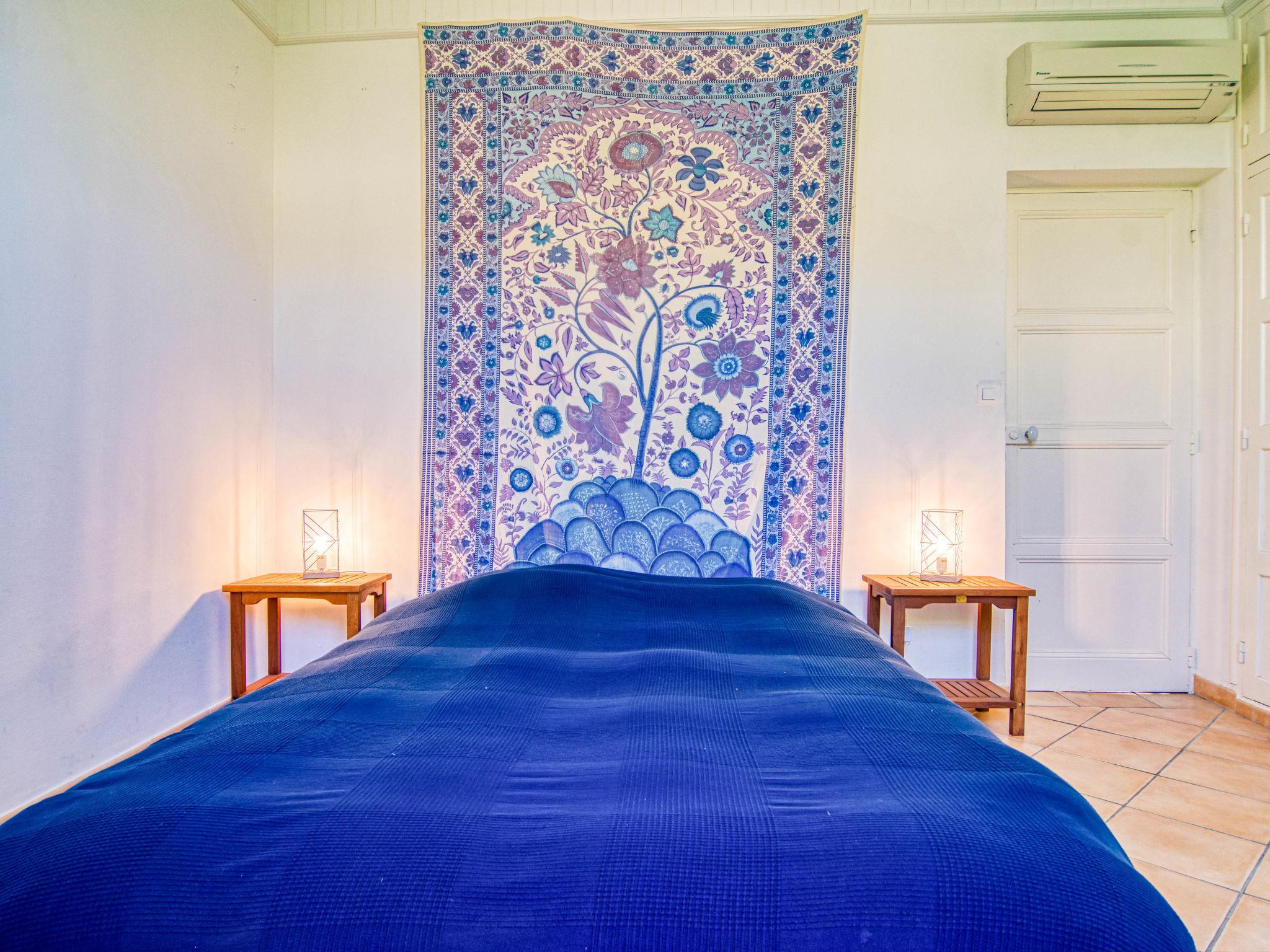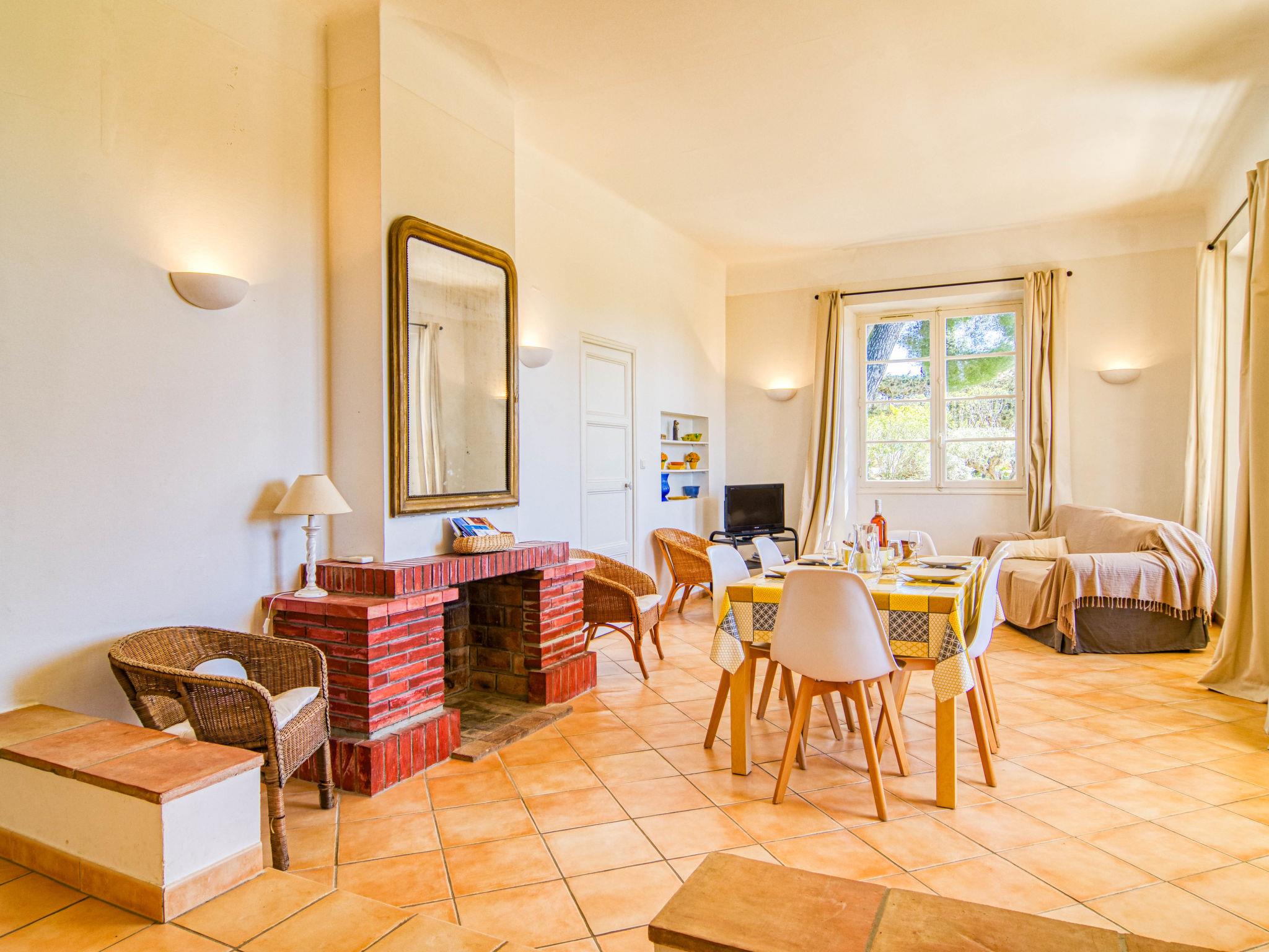 "Le Farigoulo", 4-room house 100 m2. Bright, comfortable furnishings: living/dining room with open-hearth fireplace (only for decoration), dining table, TV, radio and air conditioning. Exit to the terrace. 1 room with 1 double bed (160 cm, length 200 cm), air conditioning. 1 room with 2 beds (80 cm, length 200 cm), air conditioning. 1 room with 1 pull-out bed (2 pers. 2 x 80 cm, length 190 cm), hand-basin. Kitchen (oven, dishwasher, 4 ceramic glass hob hotplates, toaster, kettle, microwave, freezer, electric coffee machine) with dining table. Shower, sep. WC. Electric heating. Terrace 8 m2, roofed, patio. Terrace furniture, barbecue, deck chairs (2), box-room. View of the garden. Facilities: washing machine, iron, children's high chair, baby cot. Internet (WiFi, free). Please note: smoke alarm. 831230019035H