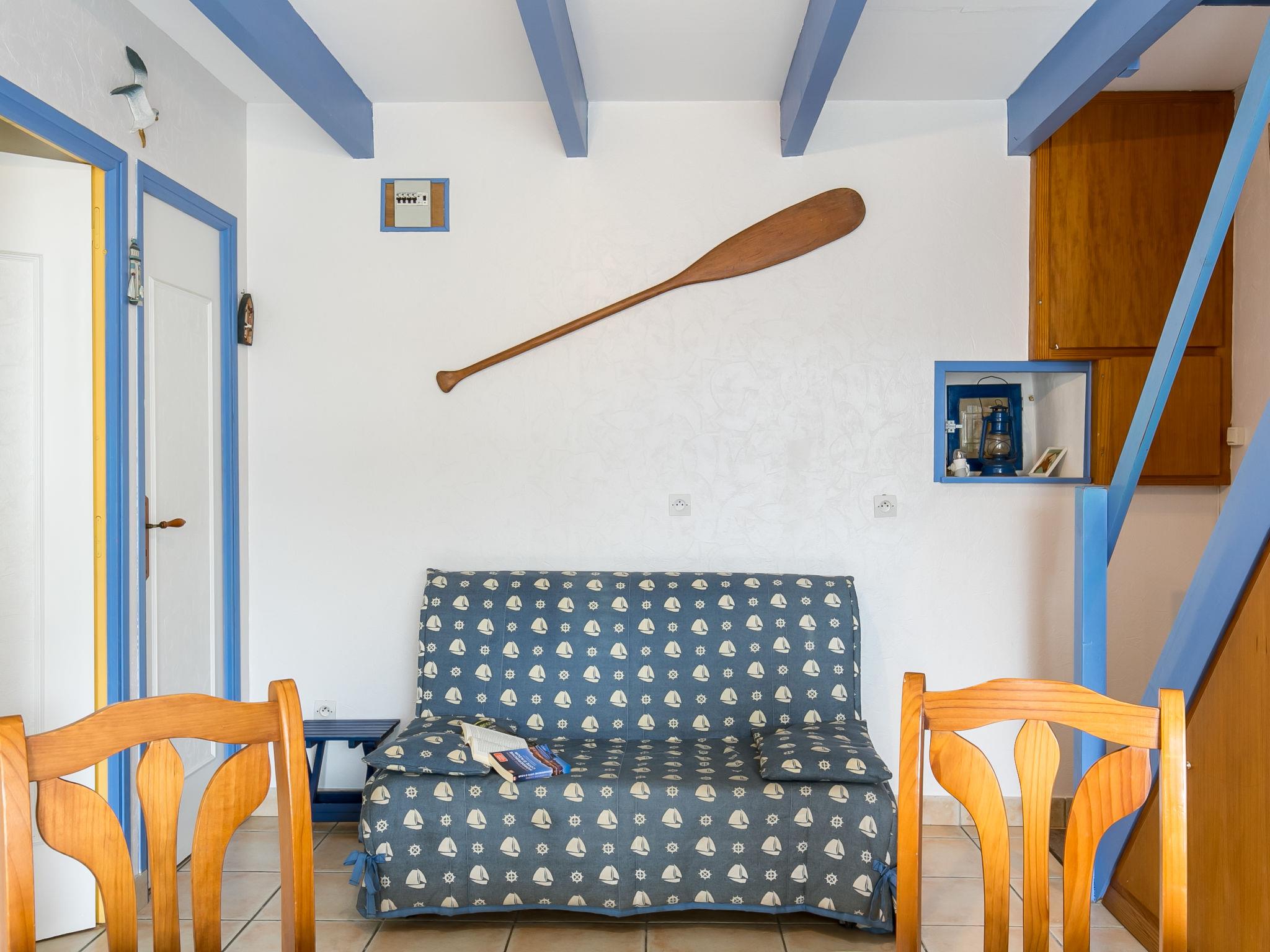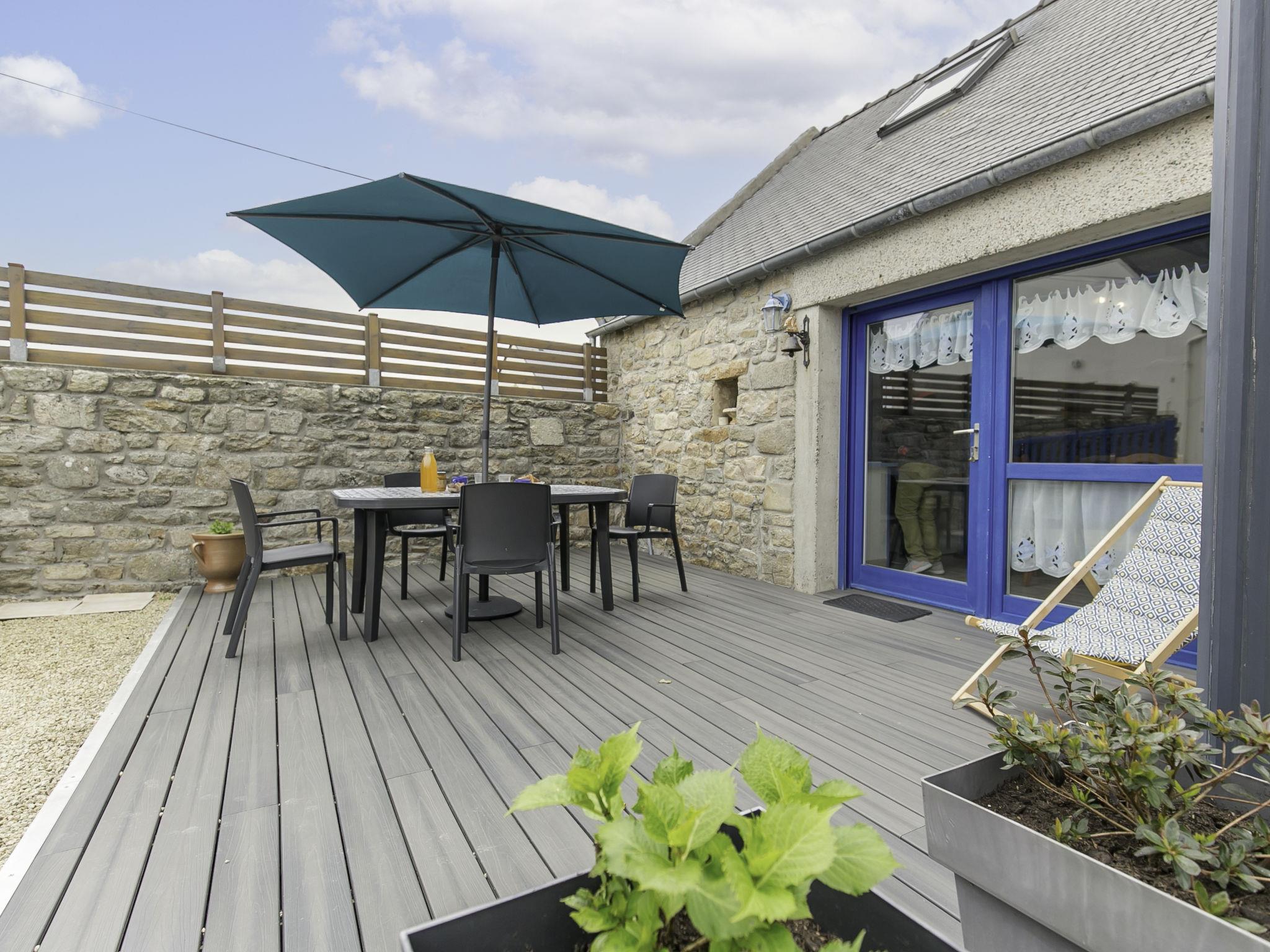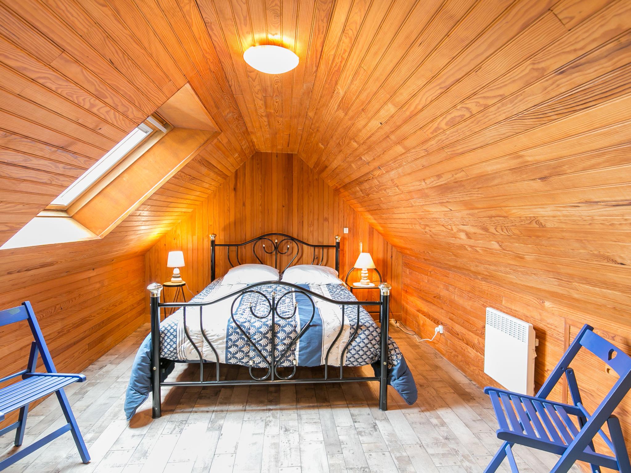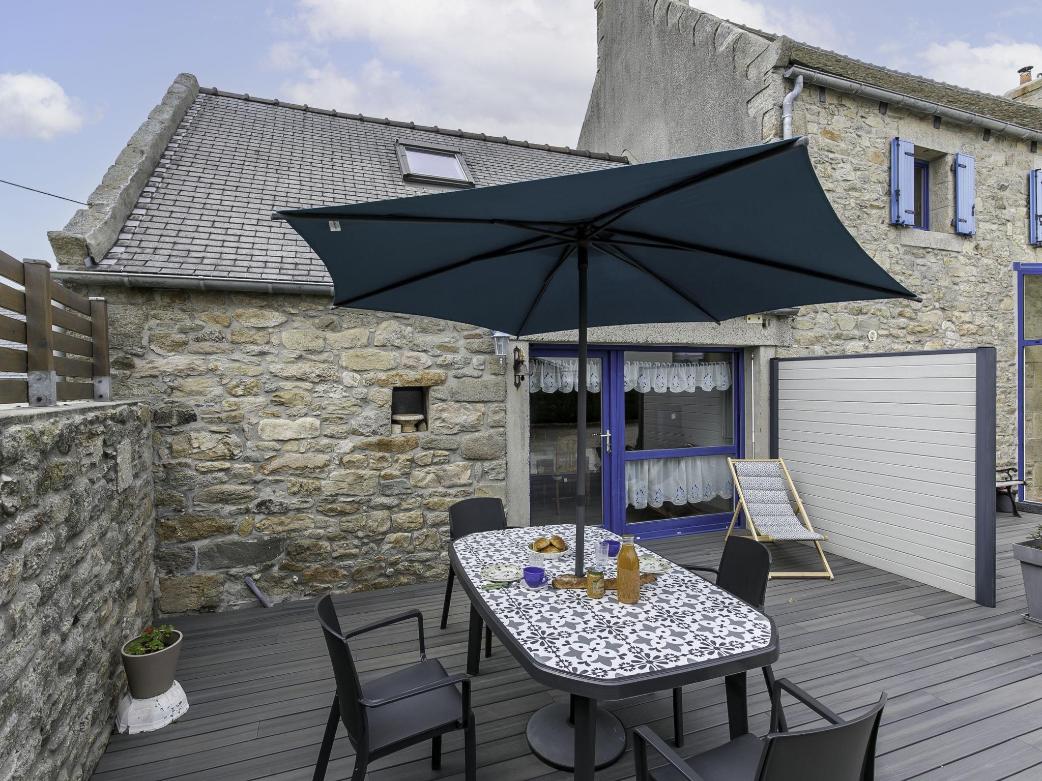 "Ty Kerveal", 2-room house 35 m2 on 2 levels. Practical and wooden furniture furnishings: living/dining room with dining table, satellite TV, international TV channels and hi-fi system. Exit to the terrace. Small, open kitchen (Gas stove, 4 gas rings, toaster, kettle, freezer, electric coffee machine, combination microwave). Shower, sep. WC. Electric heating. Upper floor: (steep stair), 1 open room with sloping ceilings with 1 french bed. Terrace 30 m2. Terrace furniture, barbecue (portable), deck chairs (2). Facilities: washing machine, iron. Please note: non-smoking house. Smoke alarm. 29273 0000 03KJ