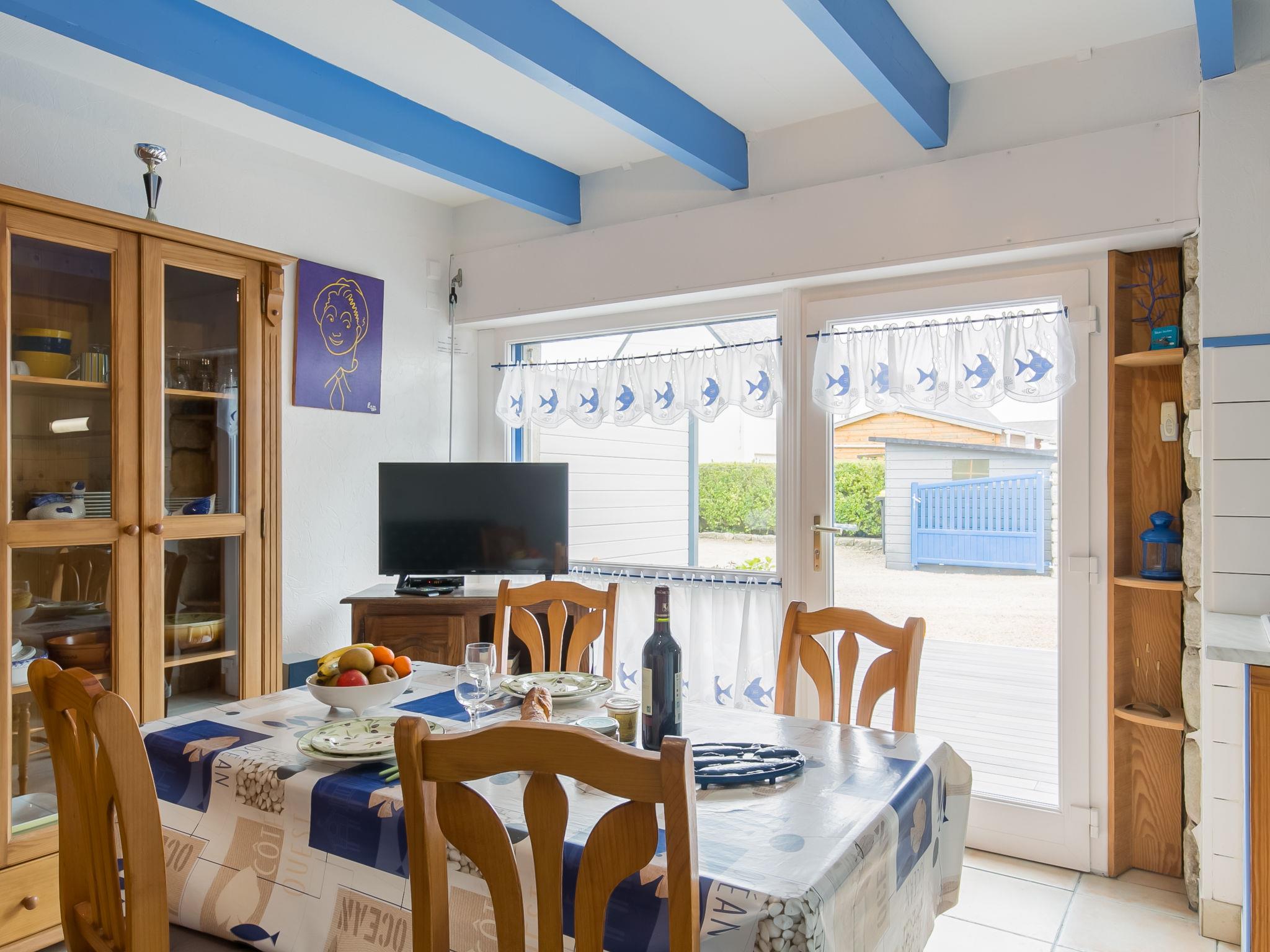 Small terraced house "Ty Kerveal", semi-detached. In the district of Kerveal 1 km from the centre of Santec, 5 km from the centre of Saint Pol-de-Léon, 23 km from the centre of Morlaix, 250 m from the sea, 250 m from the beach. For shared use: property 1'000 m2, courtyard, parking on the premises. Shop 1 km, supermarket 5 km, bakery 1 km, bus stop "Mairie" 850 m, sandy beach "Plage du Staol" 250 m, indoor swimming pool 5 km, thermal baths "Thalasso Roscoff" 6 km. Sports harbour 9 km, golf course (9 hole) 17 km, surf school 1.7 km, sailing school 6.7 km. Nearby attractions: Roscoff 6 km, Jardin Exotique Roscoff 8 km, St.Pol-de-Léon 6 km, Morlaix 26 km, Huelgoat 60 km, Oceanopolis Brest 65 km. Hiking paths: GR34, sentier des douaniers 250 m. Owner lives in separate semi-detached house.