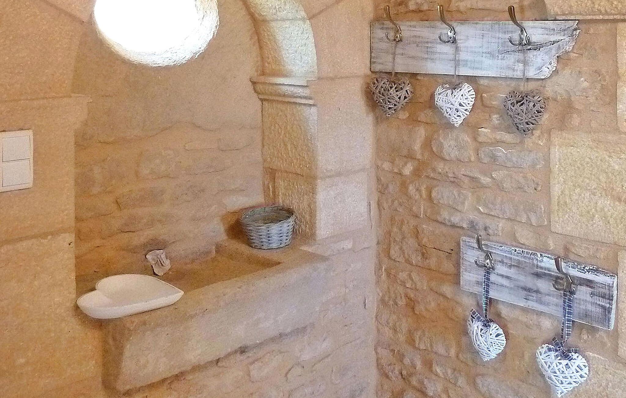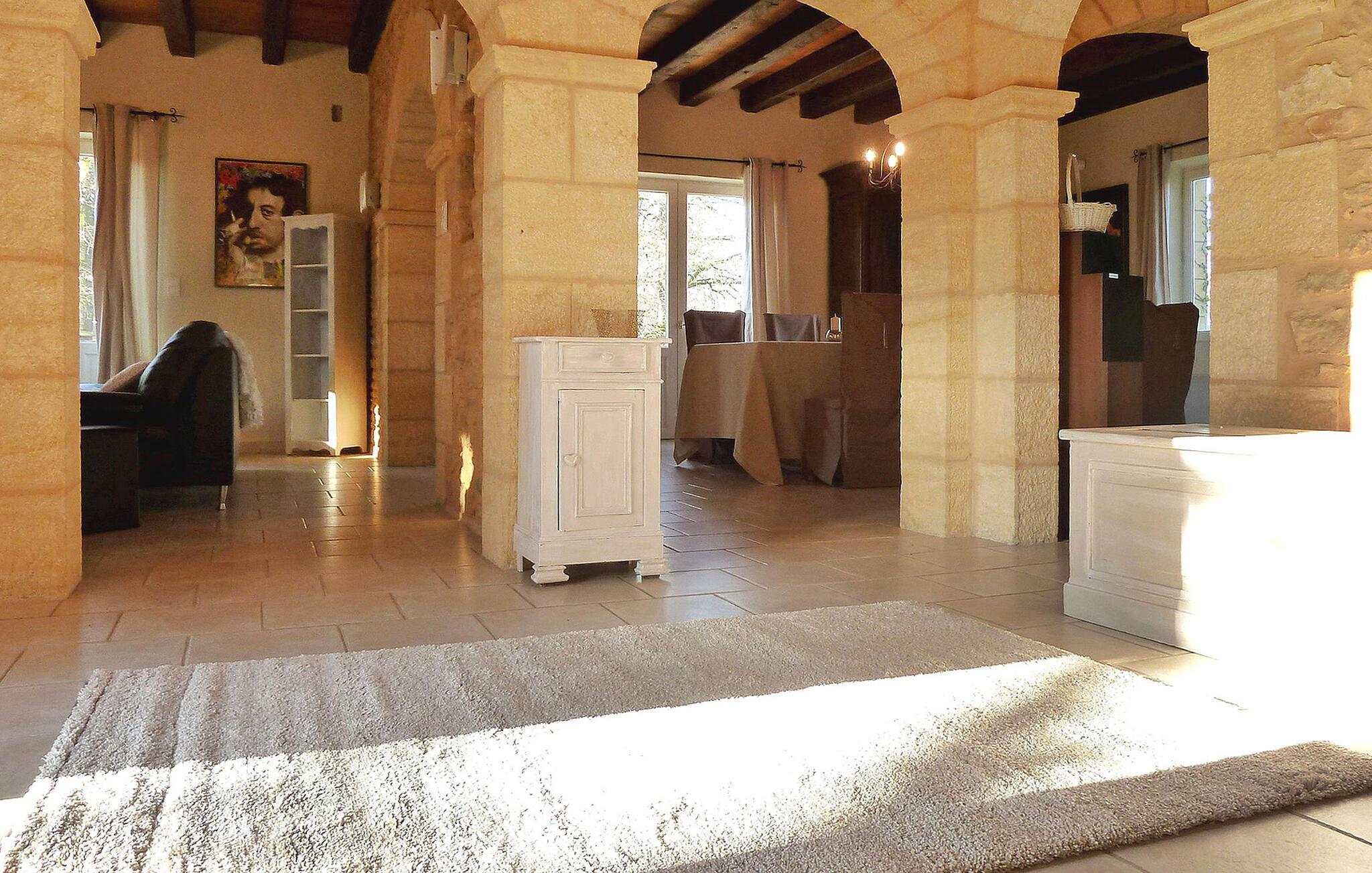 Entdecken Sie die Ruhe nur 10 km von Sarlat entfernt in diesem vollklimatisierten Urlaubsort. Das Erdgeschoss bietet eine einladende Lounge mit nutzbarem Kamin und Essbereich. Während die voll ausgestattete Küche und der Waschraum die Selbstversorgung bequem und angenehm machen. Im Obergeschoss finden Sie drei Schlafzimmer, jedes mit einzigartigem Charme und privaten Annehmlichkeiten; Im Erdgeschoss gibt es einen Keller mit Garage und Tischtennis. Treten Sie hinaus und genießen Sie einen privaten, von Bäumen gesäumten Garten mit zwei Terrassen und einem privaten 8 x 4 m großen Pool mit Liegestühlen. Das Haus liegt in der ruhigen Landschaft der Gemeinde Prats-de-Carlux, ist aber nicht isoliert, es gibt zwei Nachbarn und die örtlichen Geschäfte sind nur 7 km entfernt. Tauchen Sie ein in die Essenz des Landlebens, wo jede Ecke eine Geschichte von Entspannung und Freude erzählt. Hinweise: Das Gelände ist eingezäunt, sodass Privatsphäre gewährleistet ist. Internet (bis zu 20 GB pro Woche) und ein Holzbett sind im Preis inbegriffen.