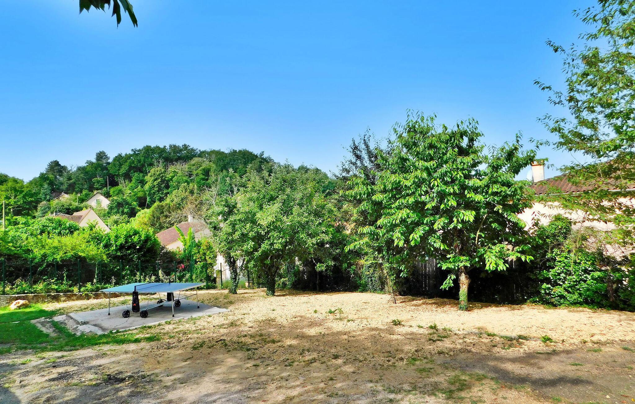 Die Ferienwohnung in Sarlat, Dordogne, liegt günstig etwa 1,2 km vom Stadtzentrum entfernt in einer ruhigen Wohngegend und bietet zahlreiche Annehmlichkeiten für einen komfortablen Aufenthalt. Das Anwesen verfügt über mehrere Wohnräume wie Esszimmer, ein Wohnzimmer mit Sofa und TV sowie zwei Spielzimmer mit verschiedenen Unterhaltungsmöglichkeiten. Die separate Küche ist gut ausgestattet und hat Zugang zur Terrasse. Im Obergeschoss finden Sie die komfortablen Schlafzimmer, einige davon mit eigenem Bad. Draußen gibt es eine Tischtennisplatte, mehrere Terrassen, Rasenflächen mit Gartenmöbeln und Sonnenliegen sowie einen kleinen oberirdischen beheizten Pool, der mit einer Abdeckung gesichert ist.