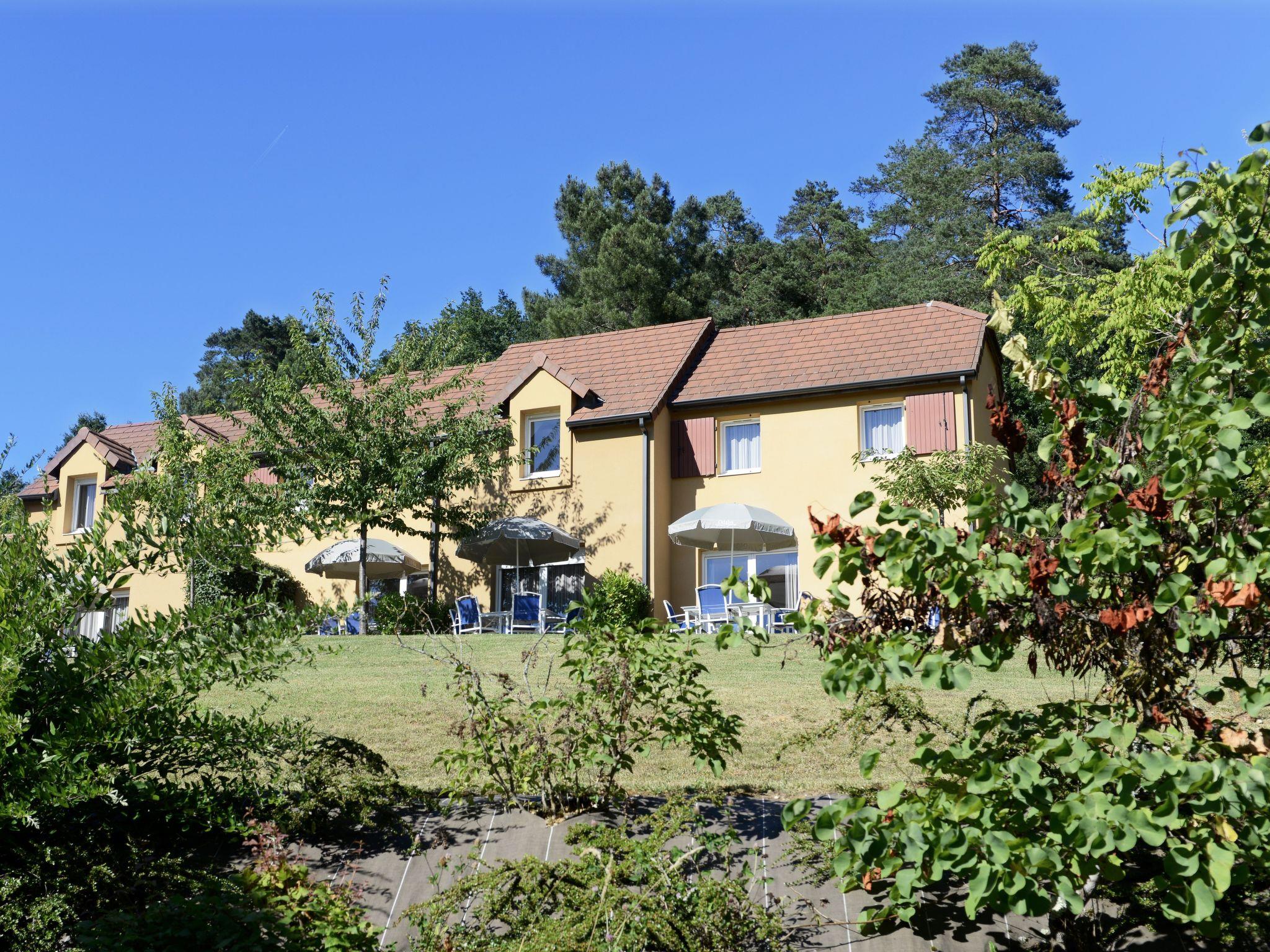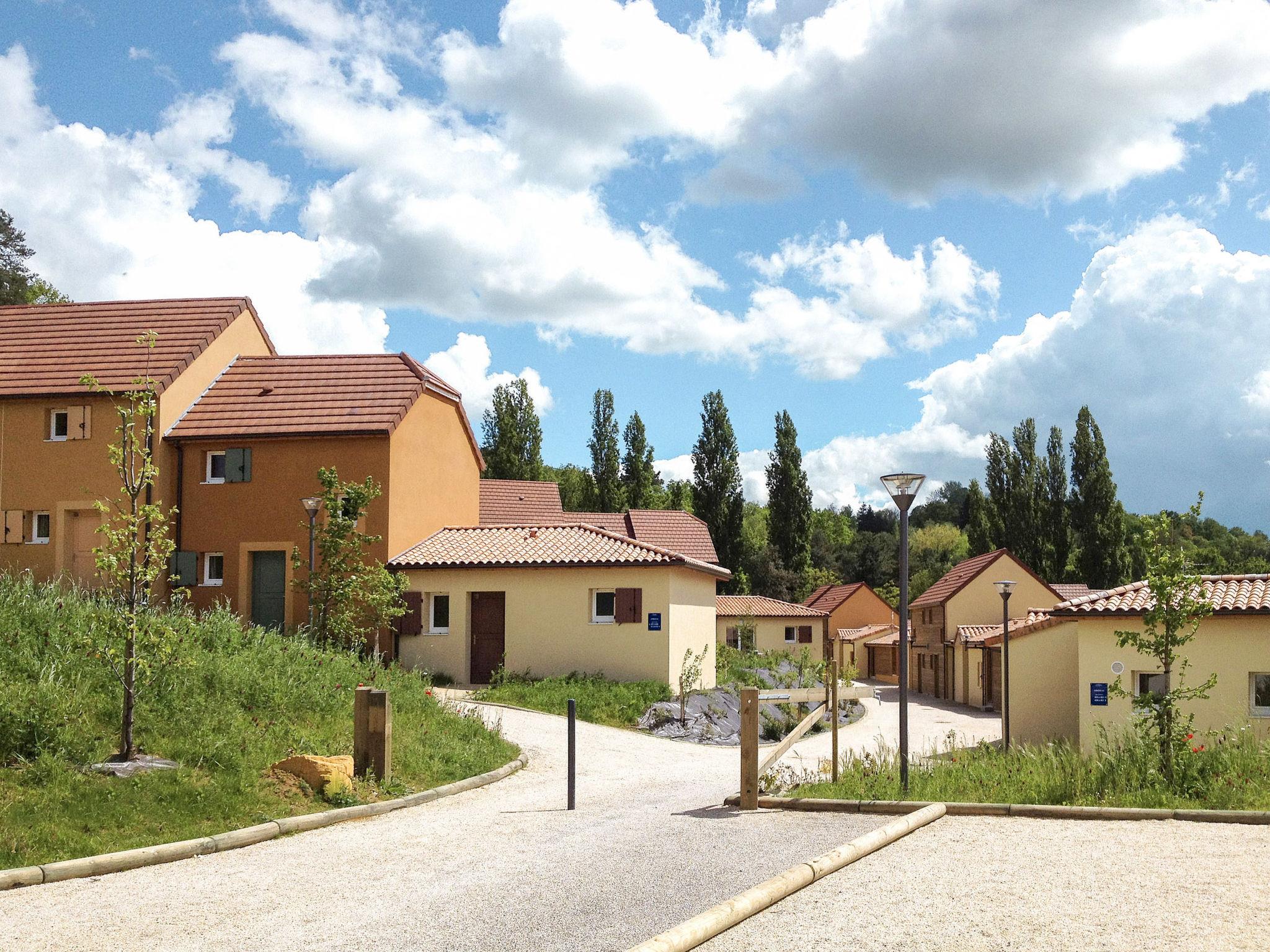 "Odalys Référence Les Côteaux de Sarlat", 2-room terraced house 30 m2. Bright, cosy furnishings: living/sleeping room with 1 sofabed, 1 pull-out bed, dining table and satellite TV. Exit to the terrace. 1 room with 1 french bed. Kitchenette (dishwasher, 2 ceramic glass hob hotplates, kettle, microwave, electric coffee machine). Sep. WC, bath or shower. Electric heating. Parquet floors. Terrace. Terrace furniture. Facilities: children's high chair, baby cot. Internet (WiFi, free). Please note: non-smoking house. Maximum 1 pet/ dog allowed. Smoke alarm.