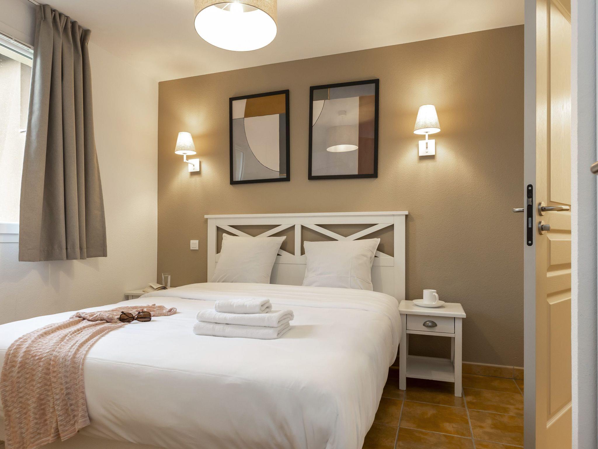 "Odalys Référence Les Côteaux de Sarlat", 4-room terraced house 59 m2 on 2 levels. Bright, cosy furnishings: living/sleeping room with 1 sofabed, 1 pull-out bed, dining table and satellite TV. Exit to the terrace. 1 room with 1 french bed and shower. Kitchenette (dishwasher, 4 ceramic glass hob hotplates, kettle, microwave, freezer, electric coffee machine). Sep. WC. Upper floor: 1 room with 1 french bed. 1 room with 2 beds. Bathroom, sep. WC. Electric heating. Parquet floors. Terrace. Terrace furniture. Facilities: children's high chair, baby cot. Internet (WiFi, free). Please note: non-smoking house. Maximum 1 pet/ dog allowed. Smoke alarm.