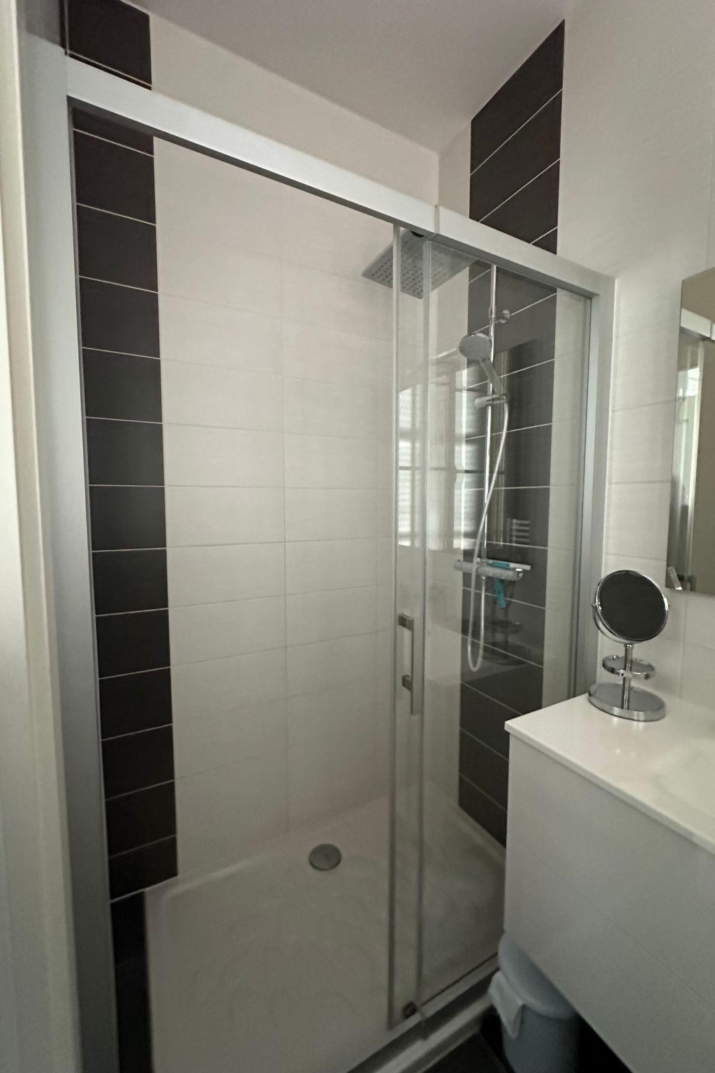 The accommodation includes a bedroom with wardrobe, living room, flat-screen TV, private shower room, dining area with table, bed linen and towels.