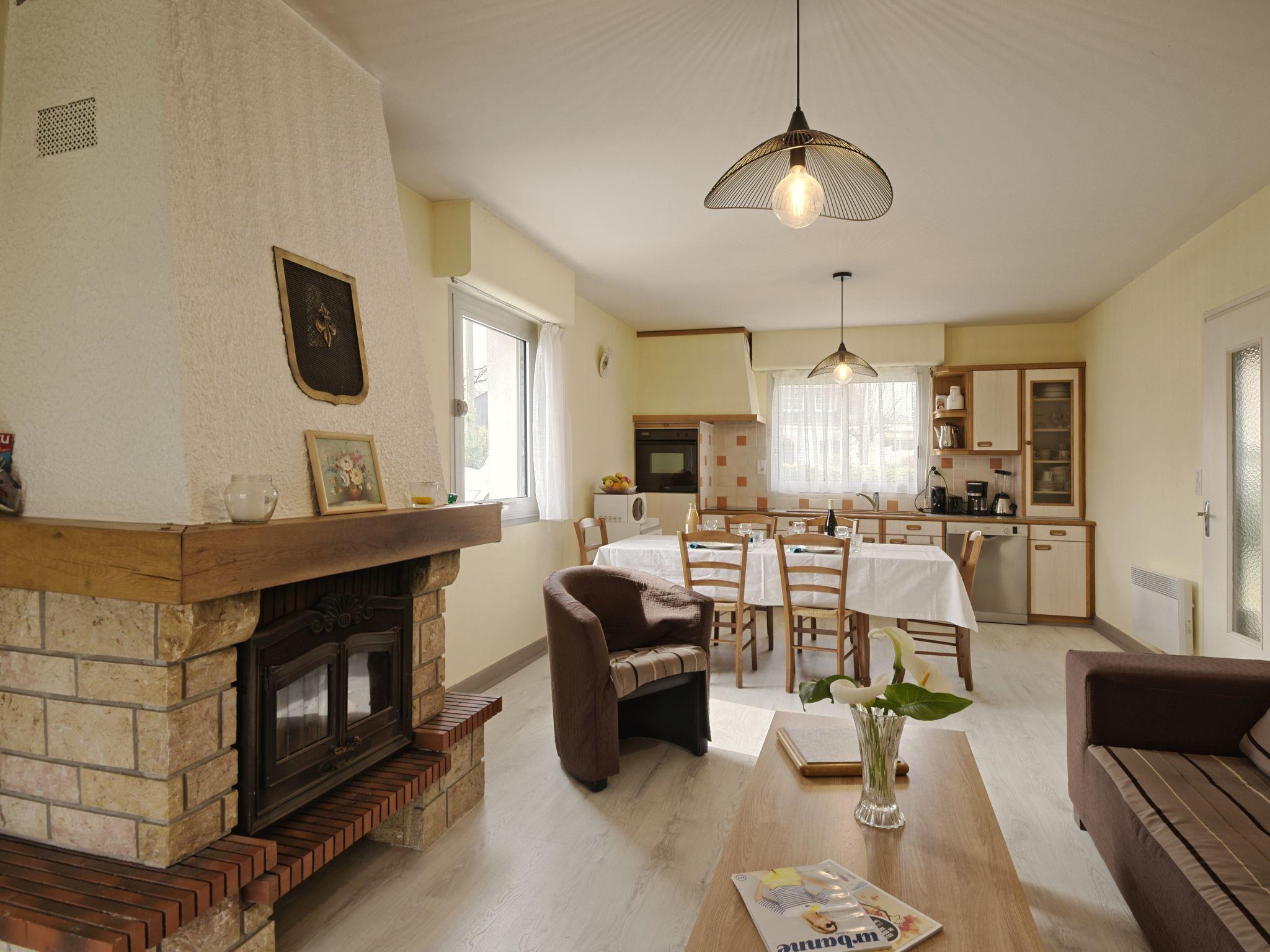 "Le Clos Er Bert", 4-room house 80 m2 on 2 levels. Practical furnishings: living/dining room with open-hearth fireplace, dining table and TV (flat screen). Exit to the terrace. 1 room with 1 french bed (140 cm, length 190 cm). Open kitchen (oven, dishwasher, 3 induction hot plates, toaster, kettle, microwave, electric coffee machine). Shower, sep. WC. Upper floor: 1 room with sloping ceilings with 2 beds (90 cm, length 190 cm). 1 room with sloping ceilings with 3 beds (90 cm, length 190 cm). Bathroom, sep. WC. Electric heating. Terrace roofed. Terrace furniture, barbecue. Facilities: washing machine, iron, children's high chair, baby cot for up to 2 year olds. Internet (WiFi, free). Please note: non-smokers only. Smoke alarm. Offer by a private individual according to Art. 155, IV of CGI. 5624000051564