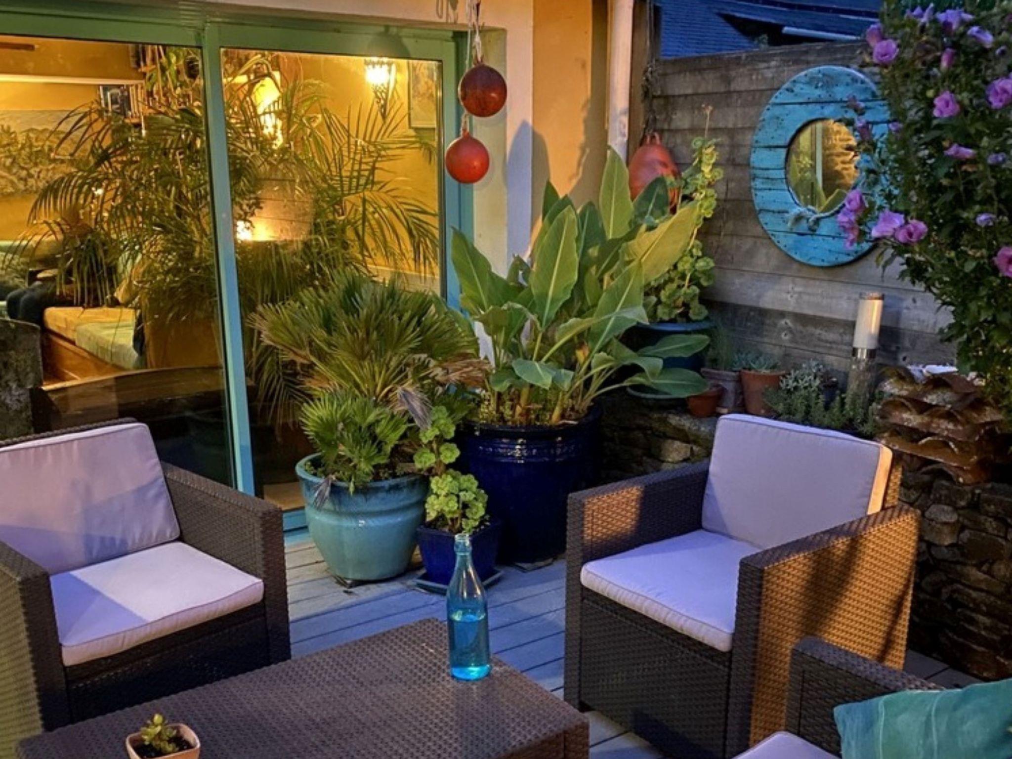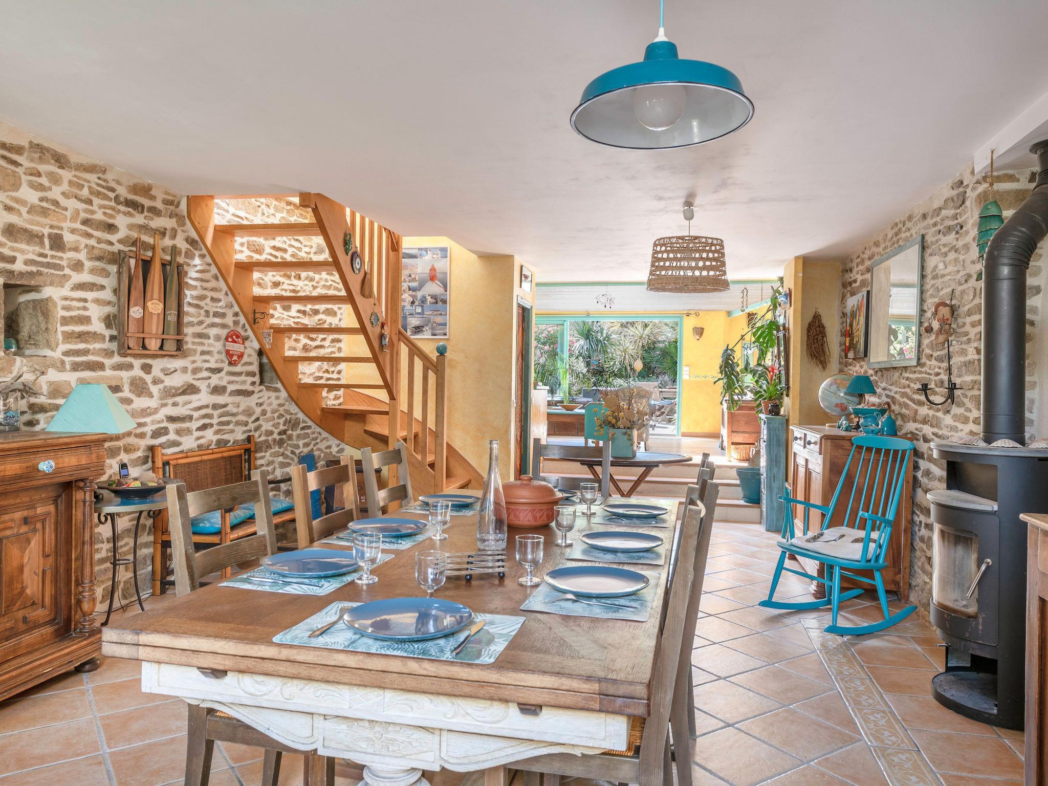 "La Demeure Ty Ar Bleiz", 5-room house 145 m2 on 2 levels. Very beautiful furnishings: living/dining room with Scandinavian wood stove (only for decoration), TV (flat screen). Exit to the terrace. 1 large room with 1 french bed (2 x 80 cm, length 200 cm), bath/shower. Exit to the terrace. Open kitchen (oven, dishwasher, 3 induction hot plates, toaster, kettle, microwave, freezer, electric coffee machine). Sep. WC. Upper floor: 1 room with sloping ceilings with 2 beds (80 cm, length 200 cm). 1 room with 1 french bed (140 cm, length 190 cm). 1 open small room with sloping ceilings with 1 french bed (140 cm, length 190 cm). Bath/WC. Electric heating. Large terrace 40 m2, south-west facing position. Terrace furniture, barbecue (portable), deck chairs (2). Facilities: washing machine, dryer, iron, children's high chair, baby cot for up to 2 year olds. Internet (WiFi, free). Please note: non-smoking house. Maximum 1 pet/ dog allowed. Smoke alarm. Offer by a private individual according to Art. 155, IV of CGI. 56240000505L9
