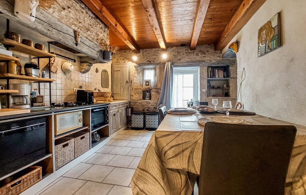 Dieses Haus empfängt Sie mit einer rustikalen Atmosphäre, in der sichtbare Holzbalken, Naturstein und liebevolle Details für angenehme Behaglichkeit sorgen. Probieren Sie in der Küche gemeinsam neue Rezepte aus, genießen Sie die Freude am Kochen und beim Essen in geselliger Runde. Spielen Sie am großen Tisch Karten- und Brettspiele oder lassen Sie den Abend entspannt mit Musik ausklingen.