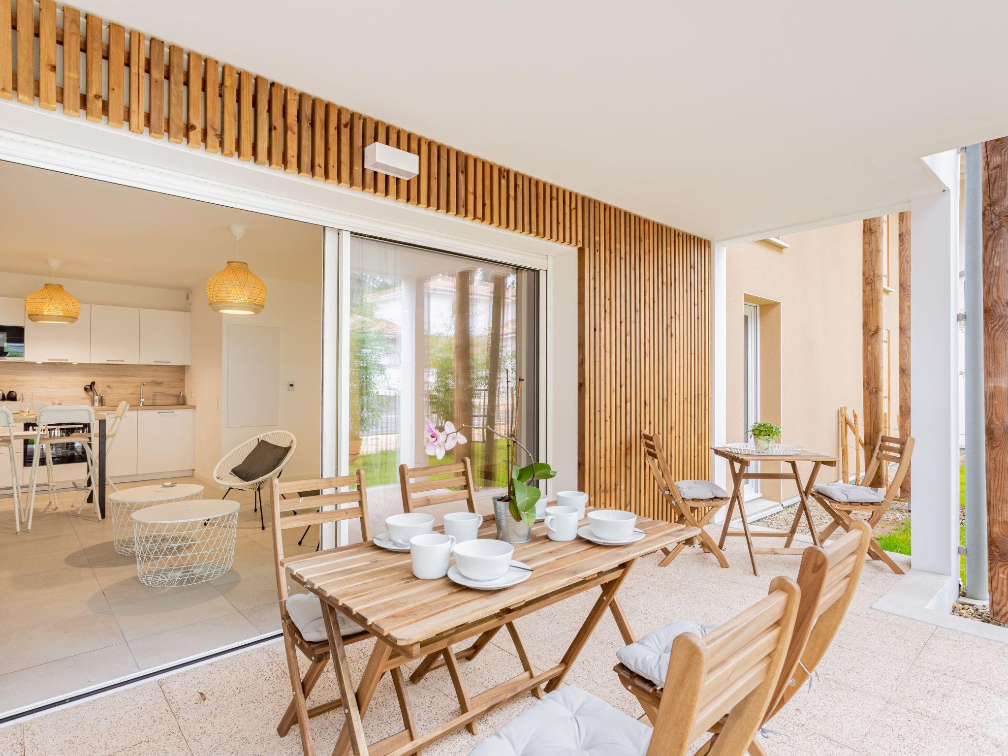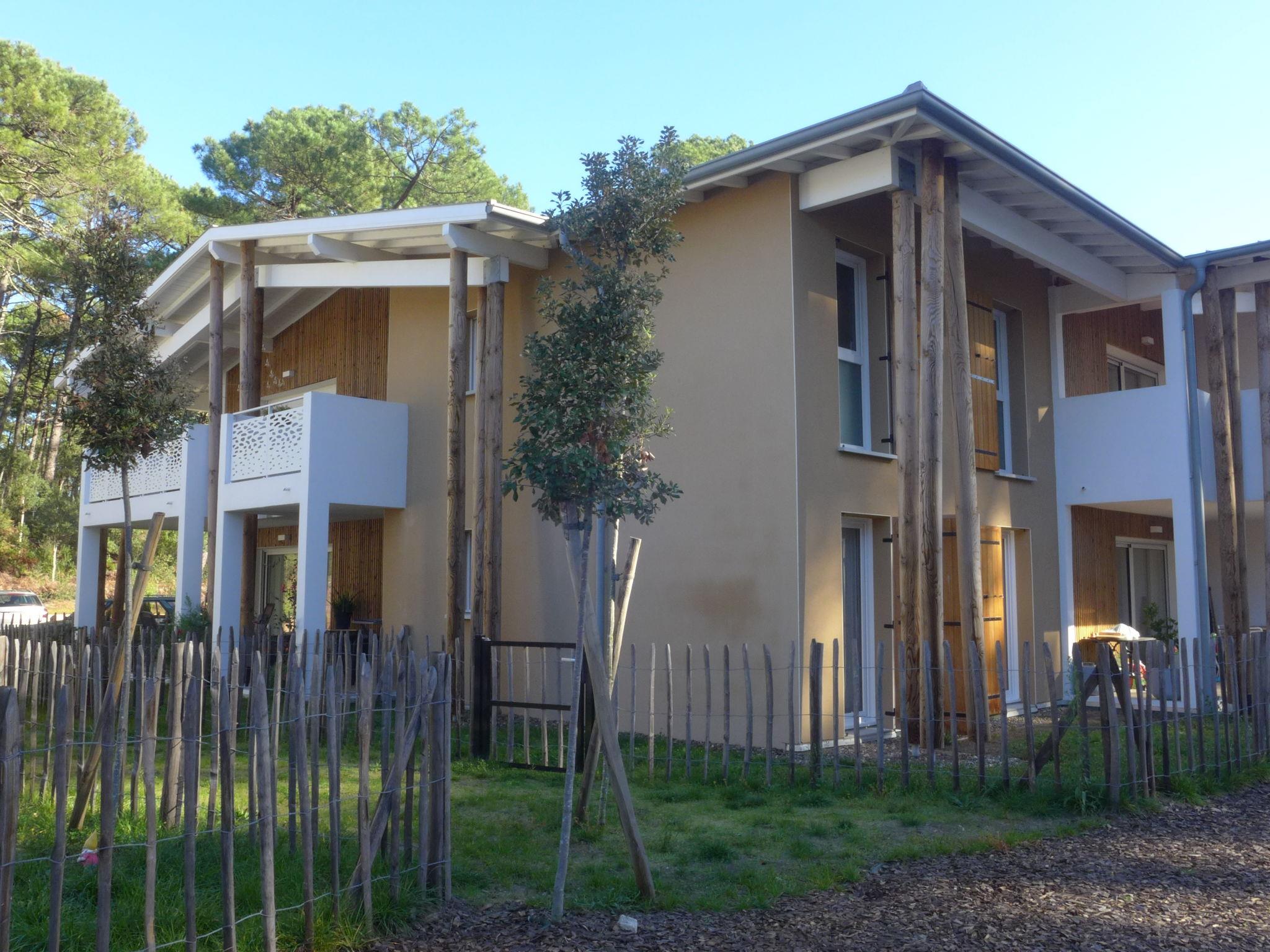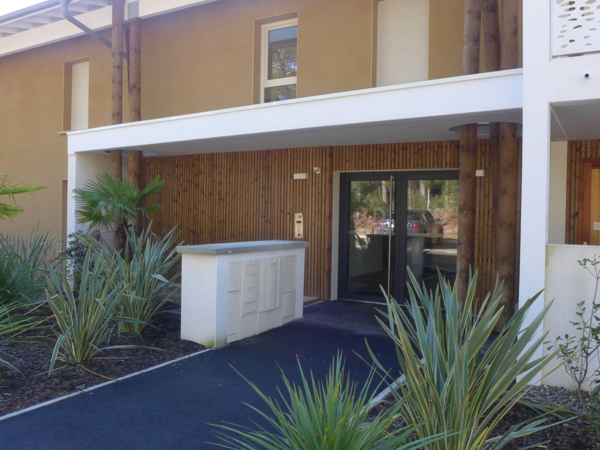Seignosse Océan 6 km from Hossegor: Residence "Dune Blanche", built in 2021, surrounded by trees. In the resort 500 m from the centre of Seignosse Océan, in a quiet position, 300 m from the sea. Grocery 500 m, supermarket 3 km, restaurant 500 m, bar, bakery, café. Surf school 500 m. Groups of teenagers on request only. The keys‘ handover takes place by the agency hossegor 6 km.