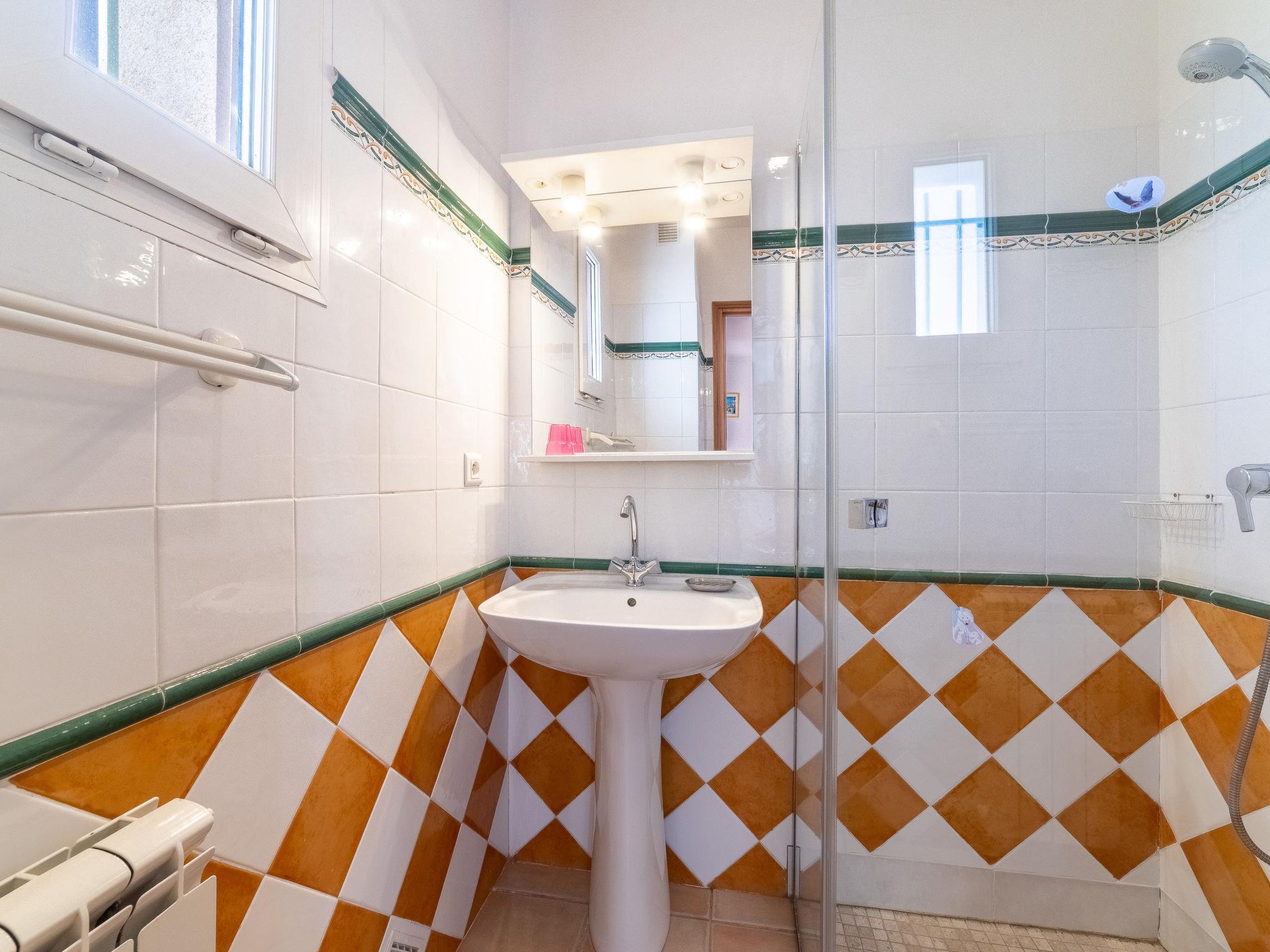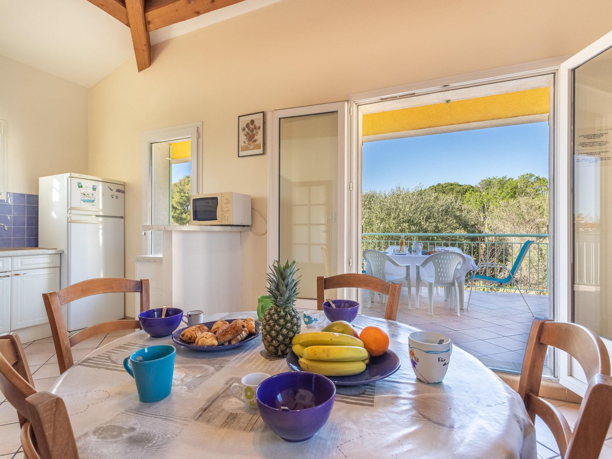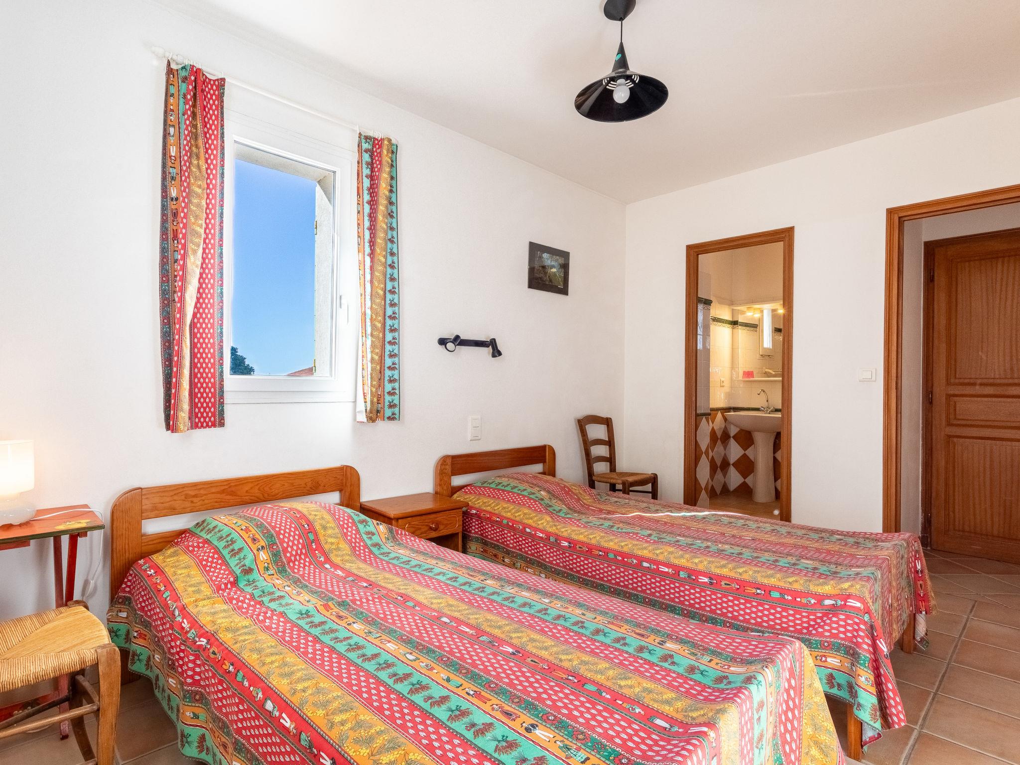 3-room apartment 80 m2 on 1st floor. Beautiful furnishings: lounge with TV and fan. Dining room. Exit to the terrace. 1 room with 2 beds (90 cm, length 190 cm), fan. 1 room with 2 beds (90 cm, length 190 cm), shower and fan. Open kitchen (4 hot plates, mini-oven, dishwasher, toaster, kettle, microwave, freezer, electric coffee machine). Exit to the terrace. Shower, sep. WC. Heating. Large terrace 25 m2 partly roofed, north-east facing position. Terrace furniture. Facilities: washing machine, iron, baby cot for up to 2 year olds. Internet (WiFi, free). Parking (fenced). Please note: TV only FR. Smoke alarm. The living room opens on to the dining room. 08310083-12919-0098