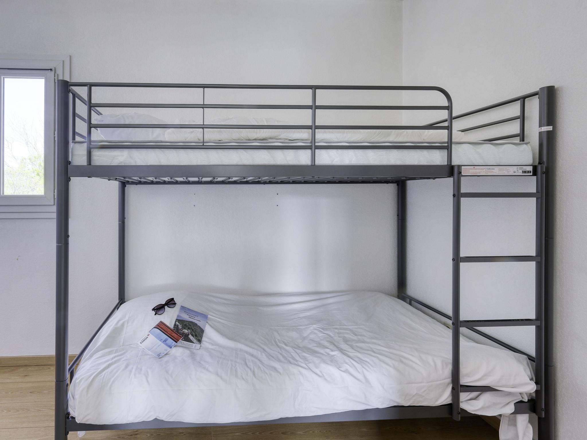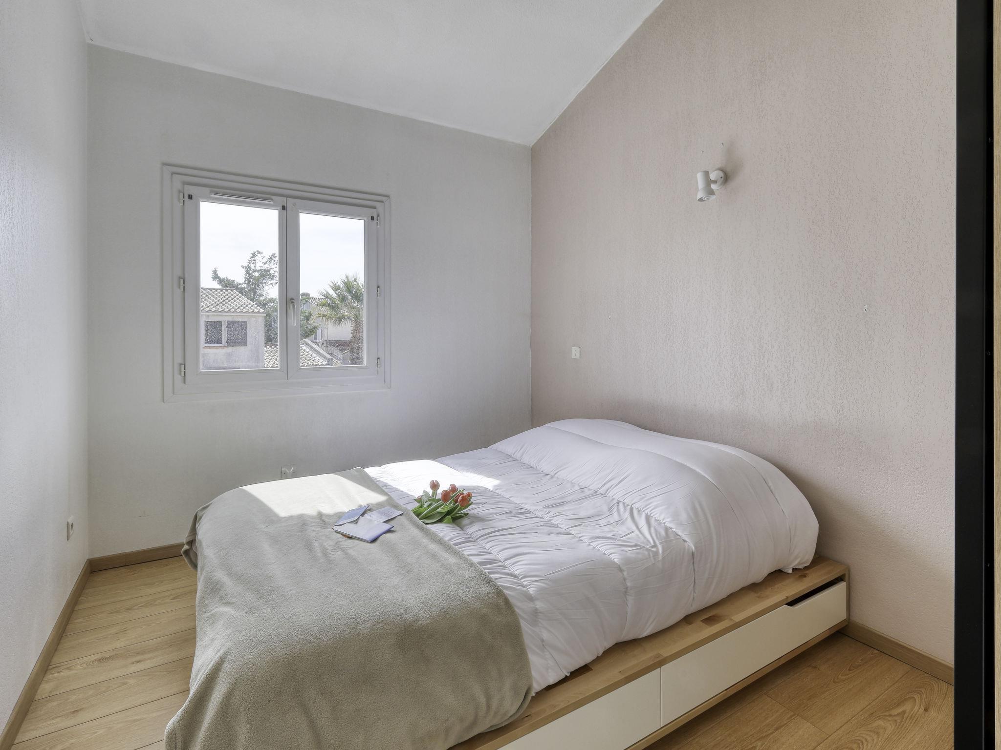 "bonnegrace", 3-room terraced house 60 m2 on 2 levels. Renovated in 2023, comfortable furnishings: living/dining room with TV (flat screen), air conditioning. Exit to the terrace. Kitchen (oven, dishwasher, 4 ceramic glass hob hotplates, toaster, kettle, microwave, electric coffee machine). Exit to the terrace. Shower, sep. WC. Electric heating. Upper floor: (steep stair), 1 room with 1 french bed (140 cm, length 200 cm). 1 room with 1 x 2 bunk beds (90 cm, length 190 cm). Sep. WC. Air-conditioning. Terrace 10 m2, south facing position and, east facing position terrace 12 m2, north facing position and, east facing position. Terrace furniture. Facilities: washing machine, iron. Internet (WiFi, free). Parking (1 car). Please note: TV only FR. Smoke alarm. Offer by a private individual according to Art. 155, IV of CGI. FR8353.440.1