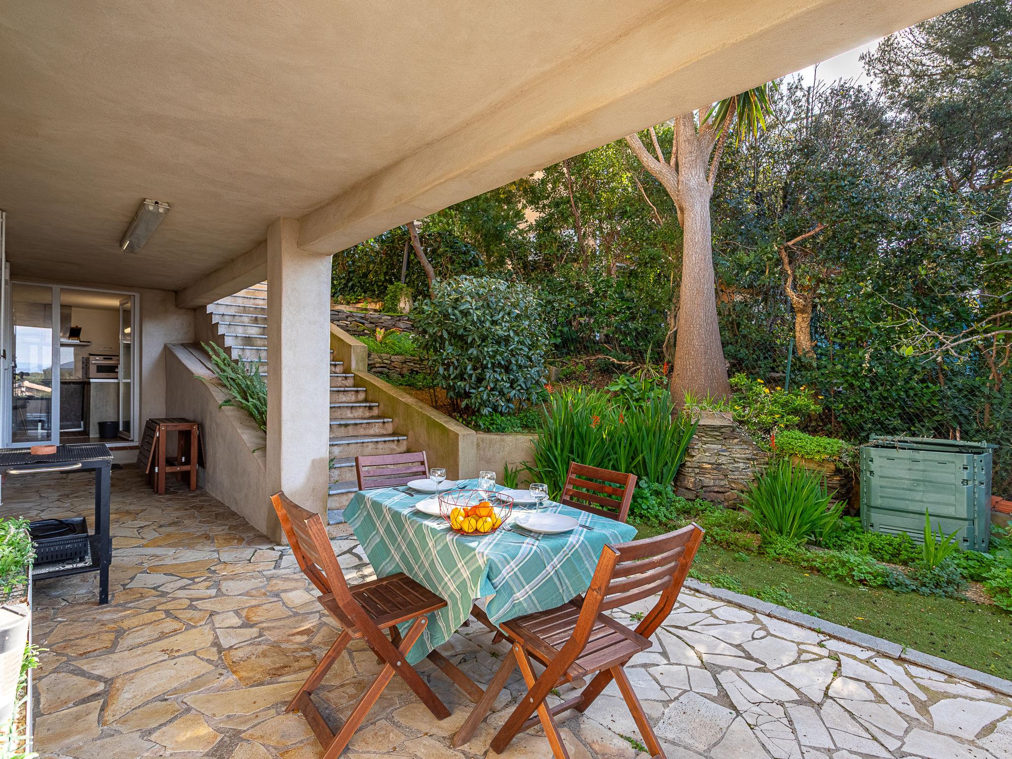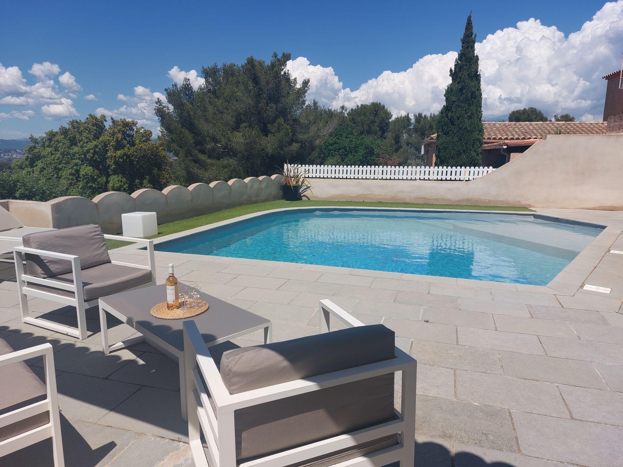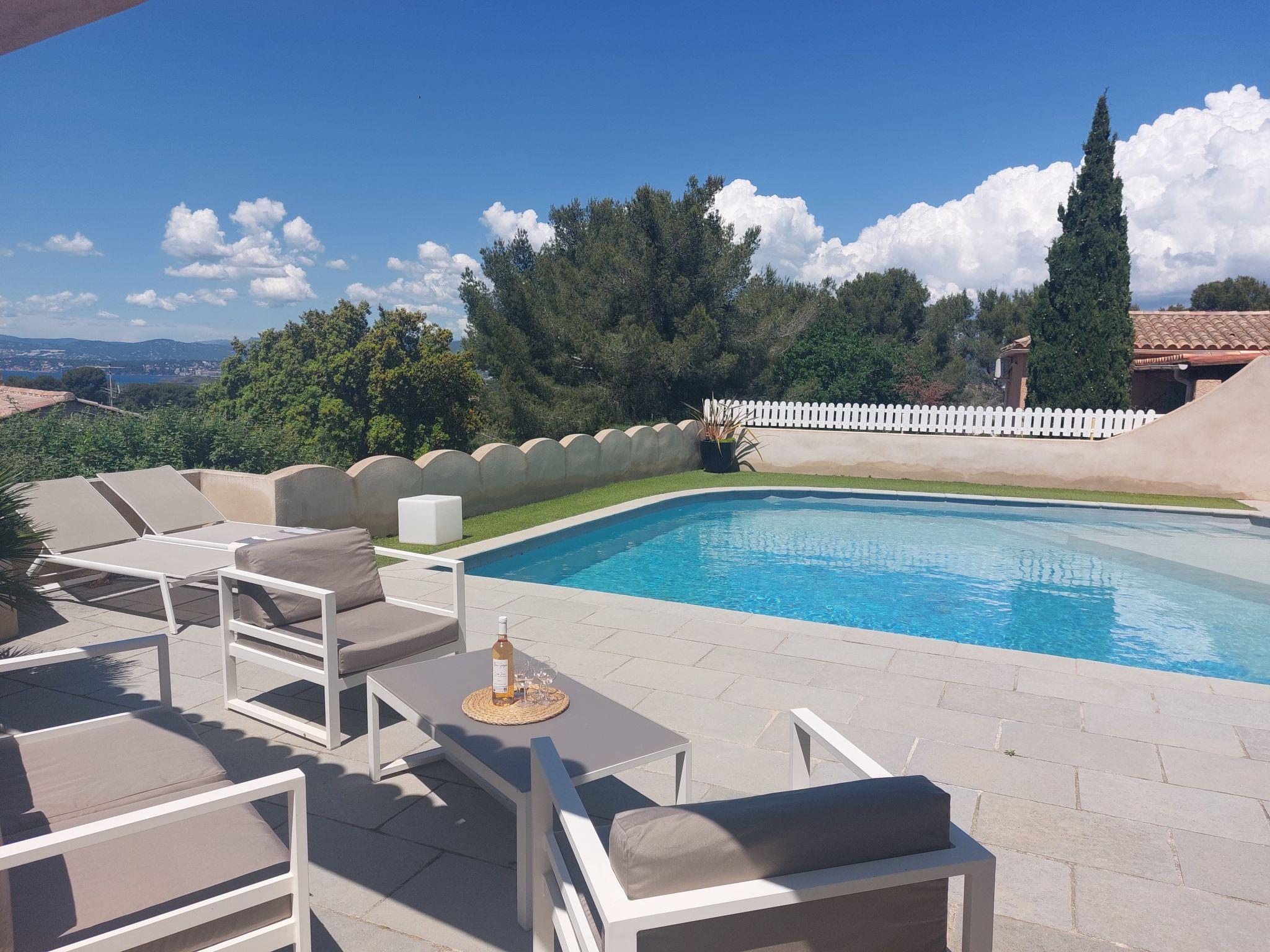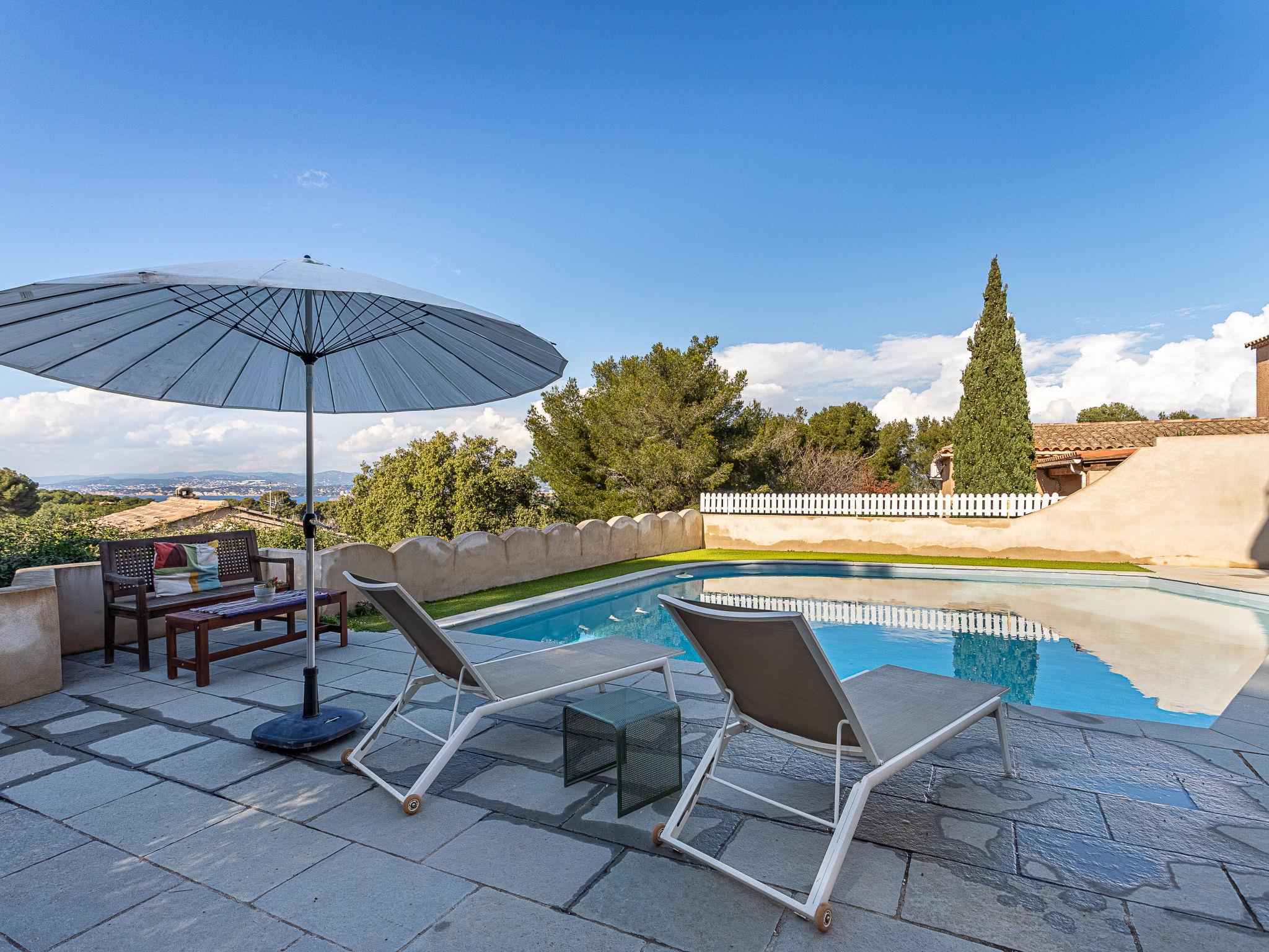 2-family house. 2.9 km from the centre of Six-Four-les-Plages, 6.4 km from the centre of Sanary sur Mer, 13.5 km from the centre of Toulon, in a quiet position in the residential district, 2 km from the sea. Private: well-kept terraced garden, 500 m2 (fenced), swimming pool fenced (5 x 5 m, depth 50 - 150 cm, seasonal availability: 01.Jan. - 31.Dec.) with alarm system. Unconventional pool shape. Parking. Grocery 2 km, supermarket 3.2 km, restaurant 2 km, bar 2 km, bakery 2 km, café 2 km, bus stop 350 m, railway station "Toulon" 13.6 km, ferry "Quai Saint Pierre Le Brusc" 2.1 km, sandy beach "Le Brusc" 2.1 km (small). Sports harbour 2.1 km, golf course (18 hole) 16 km. Nearby attractions: Iles des Embiez, Ile du Gaou, Ile de Porquerolle, Calanques de Cassis. Hiking paths: La foret de Janas, Le Faron, Evenos. Owner lives in separate semi-detached house.