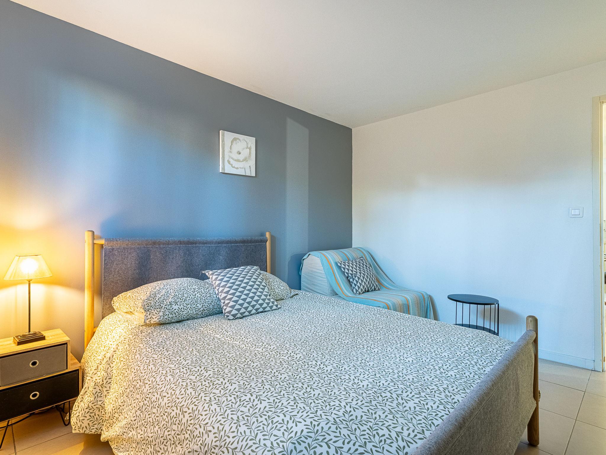 "Bleu Azur", 3-room apartment 65 m2, on the ground floor. Object suitable for 4 adults + 2 children. Comfortable and beautiful furnishings: living room with TV, flat screen and air conditioning. Exit to the terrace. 2 rooms, each room with 1 sofabed (80 cm, length 190 cm), 1 double bed (140 cm, length 190 cm). Open kitchen (dishwasher, 3 induction hot plates, toaster, kettle, electric coffee machine, combination microwave) with dining table. Shower/WC. Electric heating. Terrace roofed. Terrace furniture, electric barbecue, deck chairs (3). Partial view of the sea. Facilities: washing machine. Internet (WiFi, free). Please note: non-smoking house. Smoke alarm. The pool mentioned in the description is for private use. Offer by a commercial proprietor according to Art. 155, IV, CGI