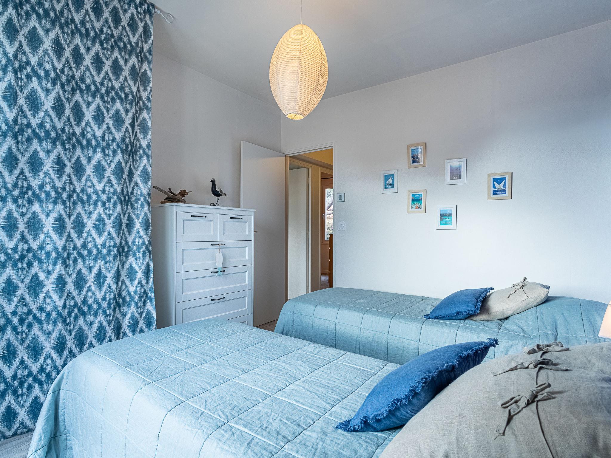 5-room terraced house 90 m2 on 2 levels, north facing position. Spacious and bright, renovated in 2022, beautiful and modern furnishings: living/dining room with TV (flat screen). Exit to the garden, to the terrace. 1 room with 1 french bed (140 cm, length 190 cm), shower/WC. Exit to the terrace. Kitchenette (oven, dishwasher, 4 induction hot plates, toaster, kettle, freezer, electric coffee machine, Capsules for coffee machine (NESPRESSO) extra). Upper floor: 1 room with 1 french bed (140 cm, length 190 cm). Exit to the terrace. 1 room with 2 beds (80 cm, length 200 cm). Exit to the terrace. 1 room with 1 x 2 bunk beds (90 cm, length 190 cm). Shower, sep. WC. Electric heating, air-conditioning. Terrace furniture, electric barbecue. Facilities: washing machine. Internet (WiFi, extra). Parking (fenced 1 car). Please note: TV only FR. Smoke alarm. Offer by a commercial proprietor according to Art. 155, IV, CGI