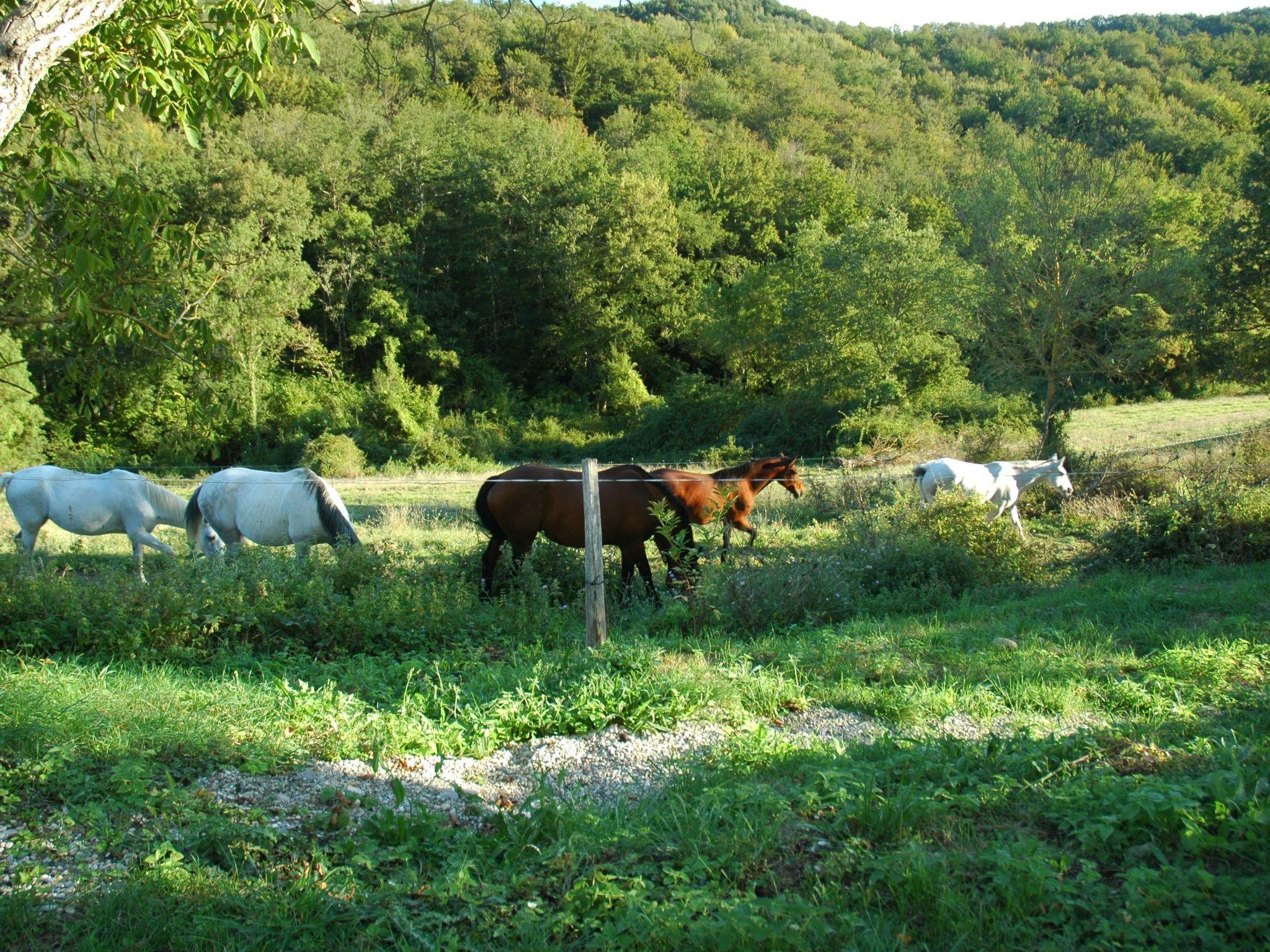 This holiday house is located at the end of a property and is surrounded by a patio in front of and at the side of the house. The house boasts two bedrooms with single beds. The first bedroom is furnished with two adjacent single beds for two people and the second bedroom can accommodate three people in three single beds. Additionally, it also offers an antique mirrored wardrobe for storage of your luggage, as well as two windows overlooking the surrounding meadows and forest. Both bedrooms have an adjacent private bathroom. The first bathroom boasts a bathtub and a shower with an integrated seat and the second bathroom is equipped with a shower tub with a shower stall. Additionally, each bathroom boasts a toilet and a sink and is naturally lit. At the heart of the house is the charming and spacious open spaced living, dining and kitchen area, furnished with high end solid wood furniture. The living room is furnished with a three and a two seater sofa and an armchair. You will also find a television with satellite receiver. The open plan kitchen area on the other side of the room consists of a fully equipped kitchen unit. The refrigerator (with an 80l freezer compartment), oven, ceran stove and several small appliances, including a microwave, a toaster, a kettle and a coffee maker enable you to prepare all your meals comfortably. There are two dining tables: one is adjacent to the kitchen and the other one is on the patio, which is accessible from the house.