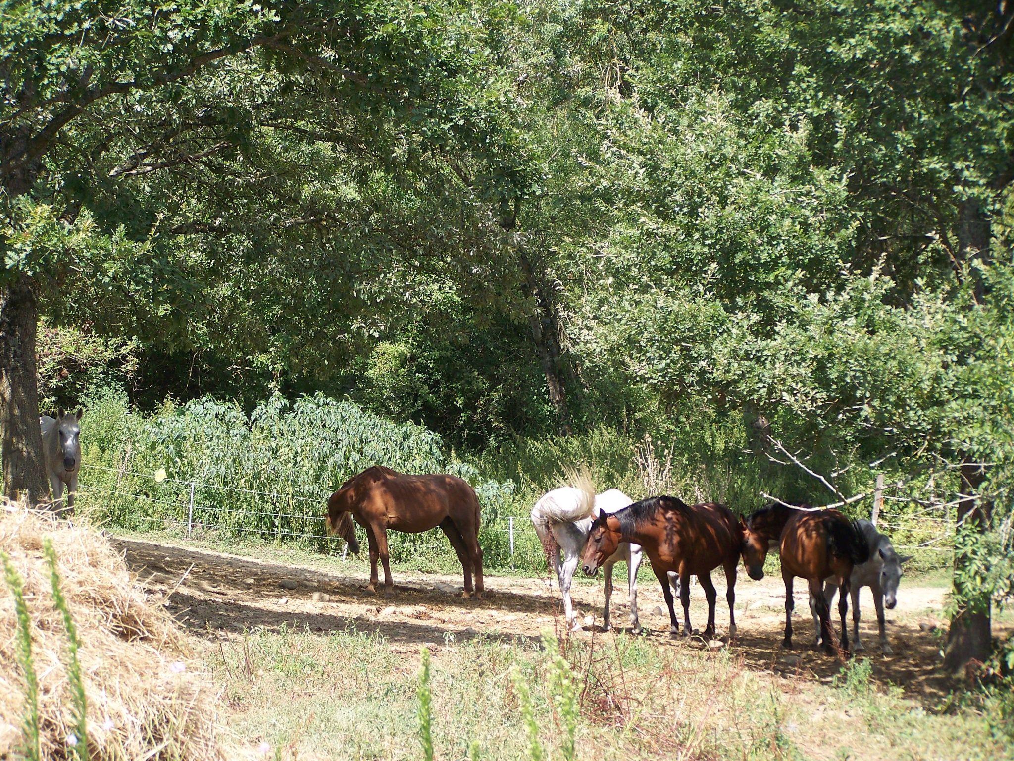 On the patio, there is a round dining table with plenty of chairs with armrest, ensuring a comfortable dining experience. Enjoy the Mediterranean sun under the sun shade and the reclining chairs. From the patio you have nice views over the natural surroundings.