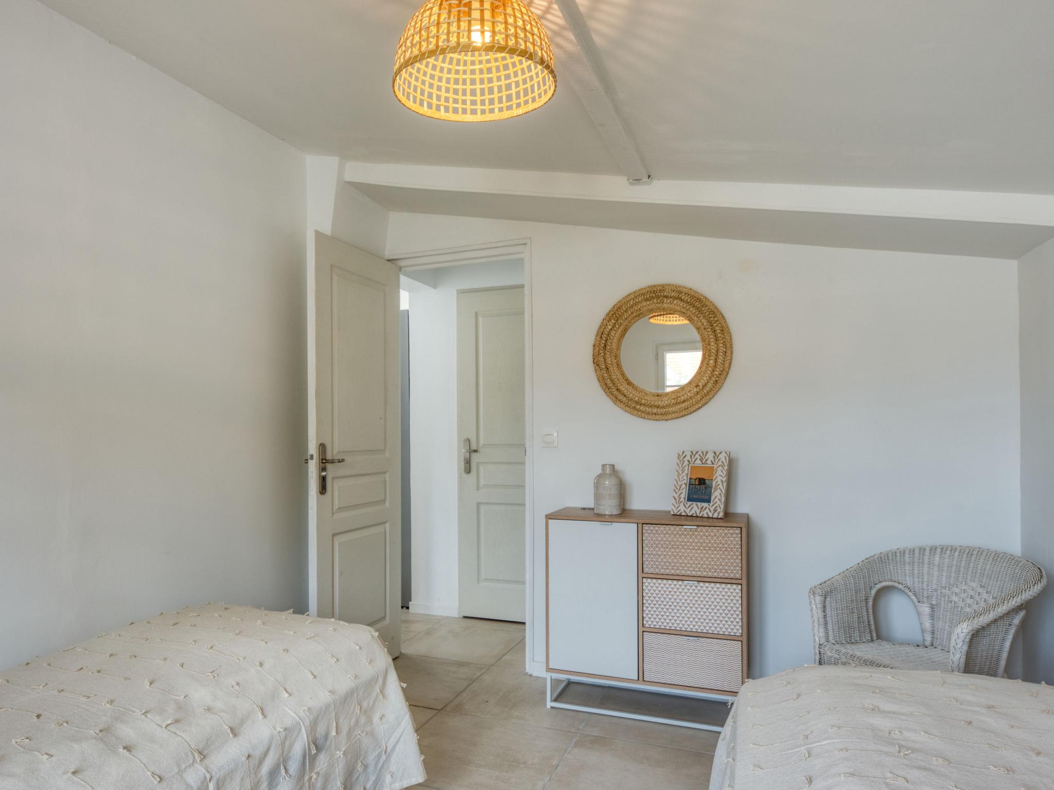 "Petite Ensouleihado", 3-room house 75 m2. Spacious and bright, comfortable and tasteful furnishings: large living/dining room with dining table and TV (flat screen). Exit to the terrace. 1 room with 1 french bed (140 cm, length 190 cm). Exit to the garden. 1 room with 2 beds (90 cm, length 190 cm). Open kitchen (oven, dishwasher, 4 induction hot plates, toaster, kettle, microwave, freezer, electric coffee machine) with bar. Shower, sep. WC. Electric heating. Large terrace. Terrace furniture, barbecue (portable), deck chairs (4). Facilities: washing machine, iron, children's high chair, baby cot. Internet (WiFi, free). Please note: suitable for families. Non-smoking house. Maximum 1 pet/ dog allowed. Smoke alarm. When there are less than the maximum number of guests staying at the property, the annex will not be available for use.