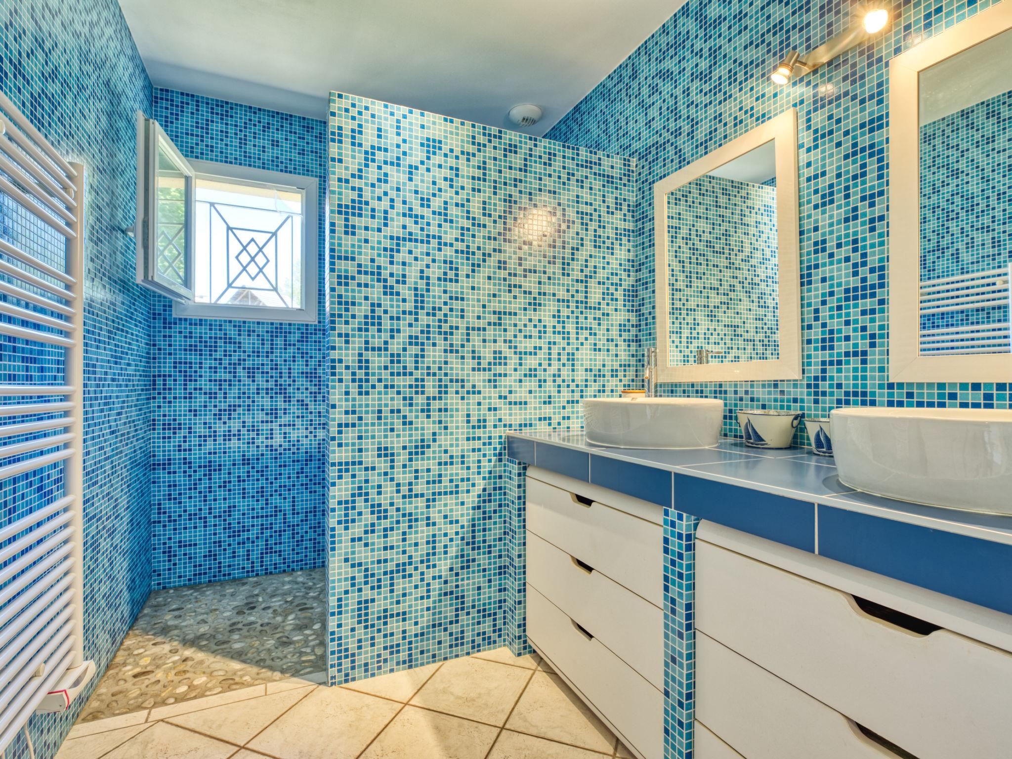 "Mimosa", 4-room house 110 m2. Beautiful and cosy furnishings: living/dining room with panoramic window with dining table and satellite TV (flat screen), DVD and wood-burning stove. Exit to the garden. 1 room with 1 french bed (140 cm, length 200 cm). 1 room with 1 french bed (140 cm, length 190 cm). Exit to the garden. 1 room with 1 french bed (140 cm, length 200 cm), shower/WC. Open kitchen (oven, dishwasher, 3 induction hot plates, toaster, kettle, microwave, freezer, electric coffee machine) with bar. Shower, sep. WC, double hand-basin. Underfloor heating. Terrace furniture, barbecue (portable), deck chairs (6). Facilities: washing machine, iron, children's high chair, baby cot. Internet (WiFi, free). Please note: non-smoking house. Smoke alarm. Offer by a private individual according to Art. 155, IV of CGI.