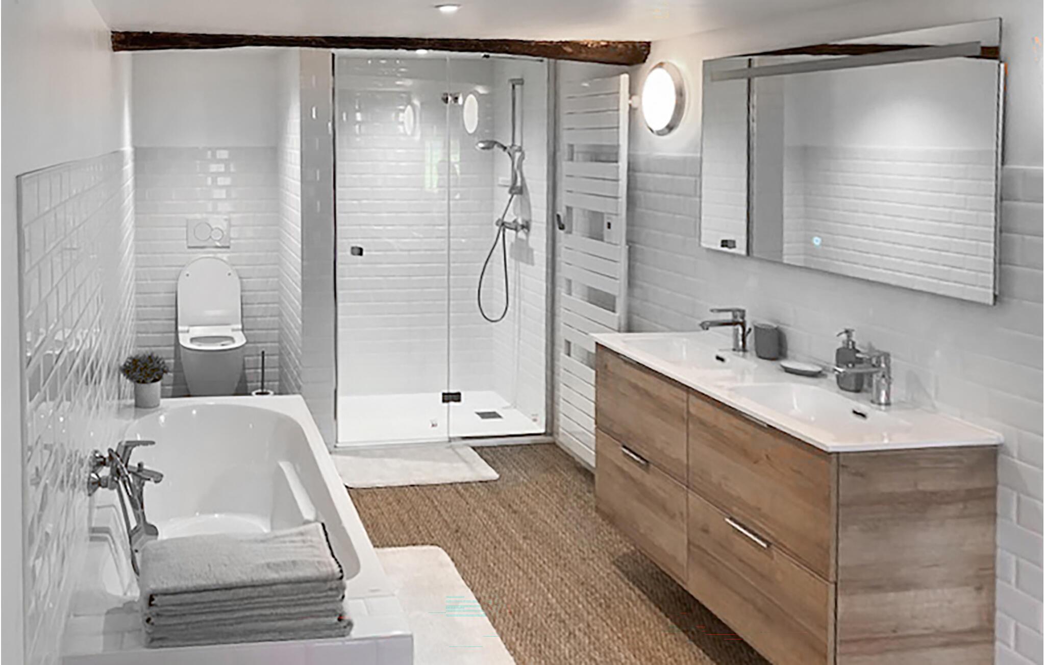 - WC mit warmem und kaltem Wasser, Dusche und Badewanne