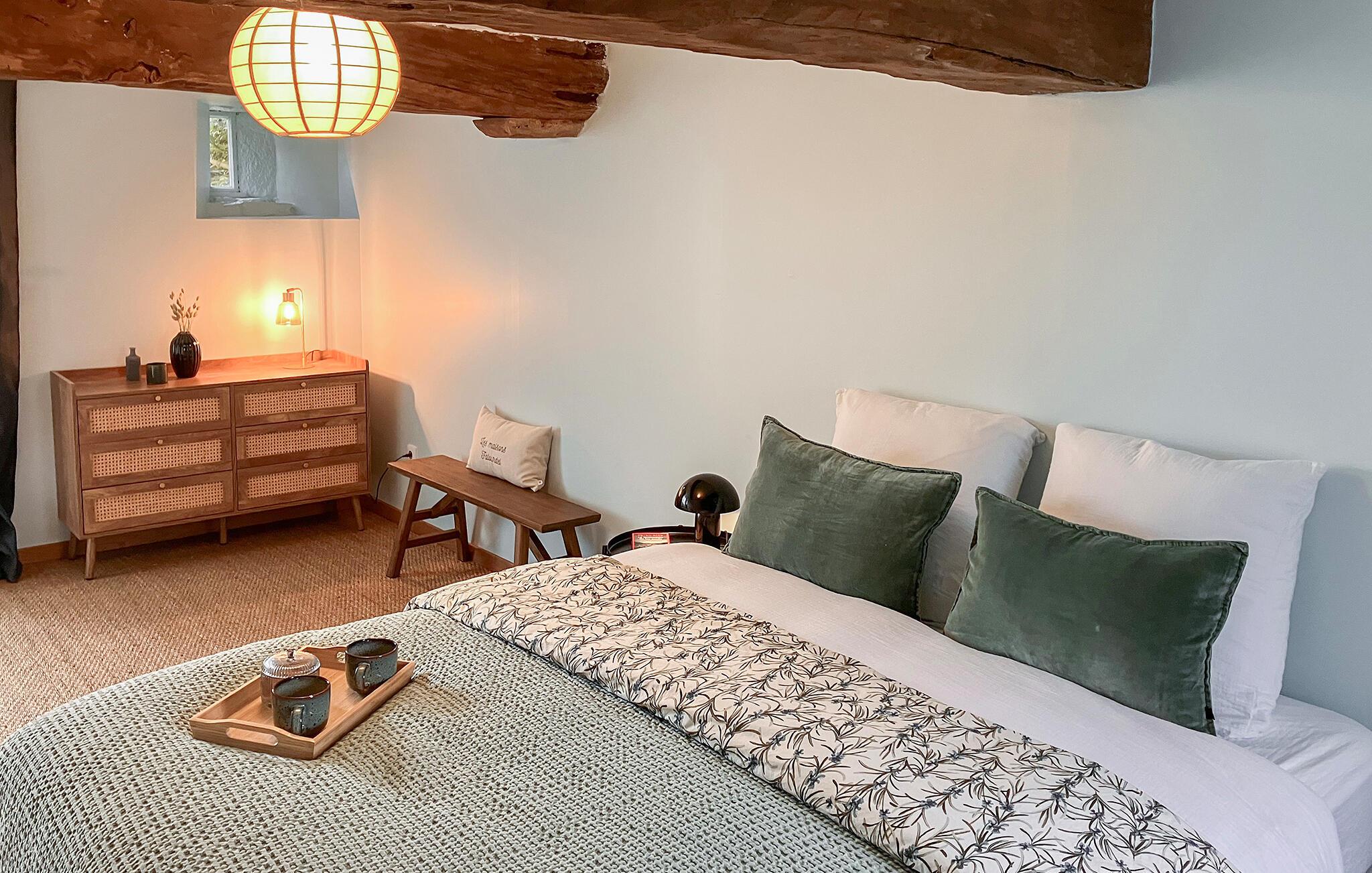 Charme, Ruhe und Entdeckungen verbinden sich in diesem Ferienhaus zu einem authentischen Aufenthalt im Einklang mit den Jahreszeiten – zwischen ländlicher Idylle und der normannischen Küste. Umgeben von viel Grün bietet Ihnen das Haus den idealen Rahmen für einen erholsamen Urlaub. Holzbalken, dezente Farben und bequemes Mobiliar schaffen eine Atmosphäre, in der Sie sich schnell wie zuhause fühlen. Wenn die Tage kühler werden, lädt das Wohnzimmer mit seinem schönen Kaminofen zu gemütlichen Stunden der Entspannung ein.