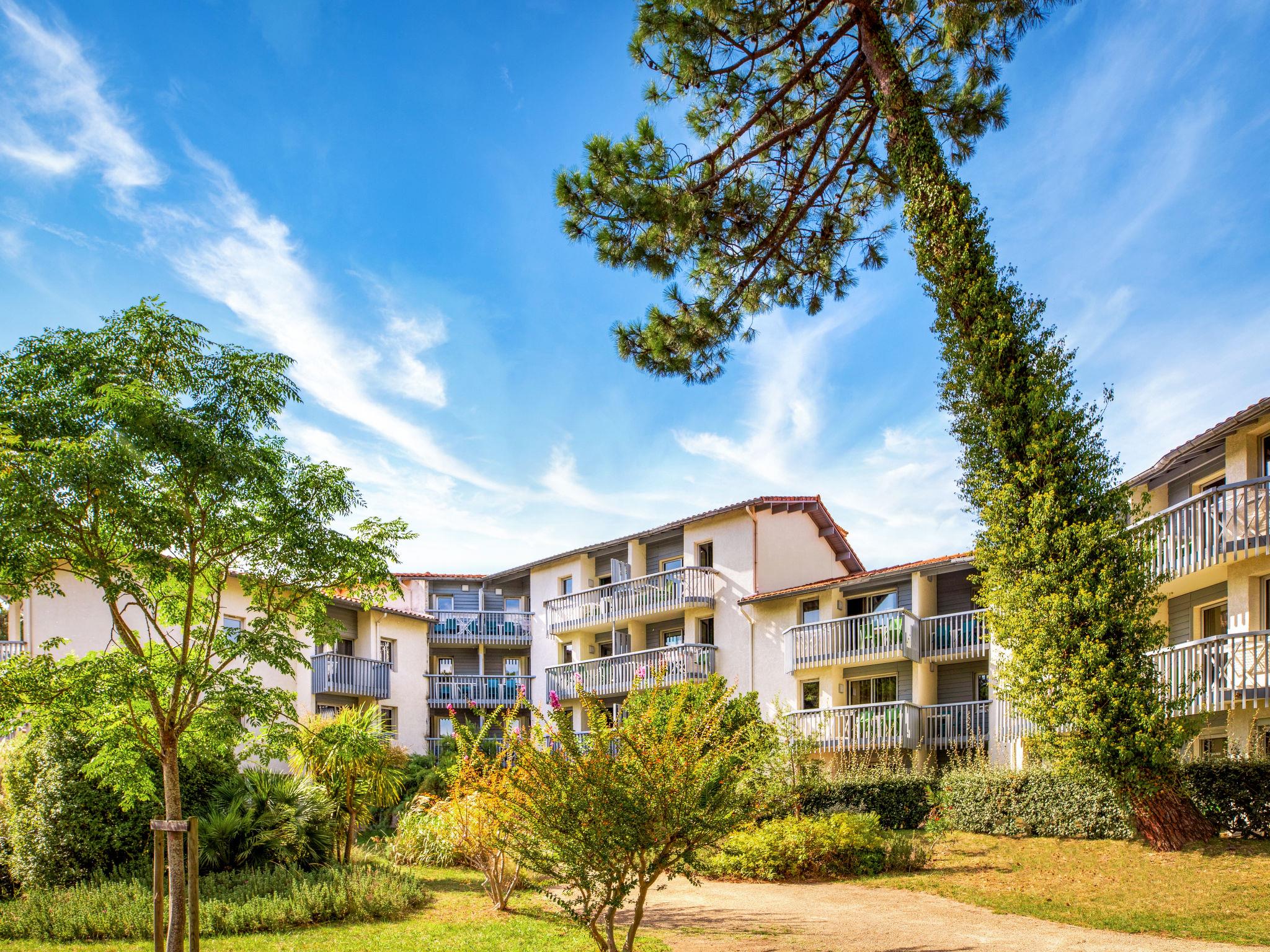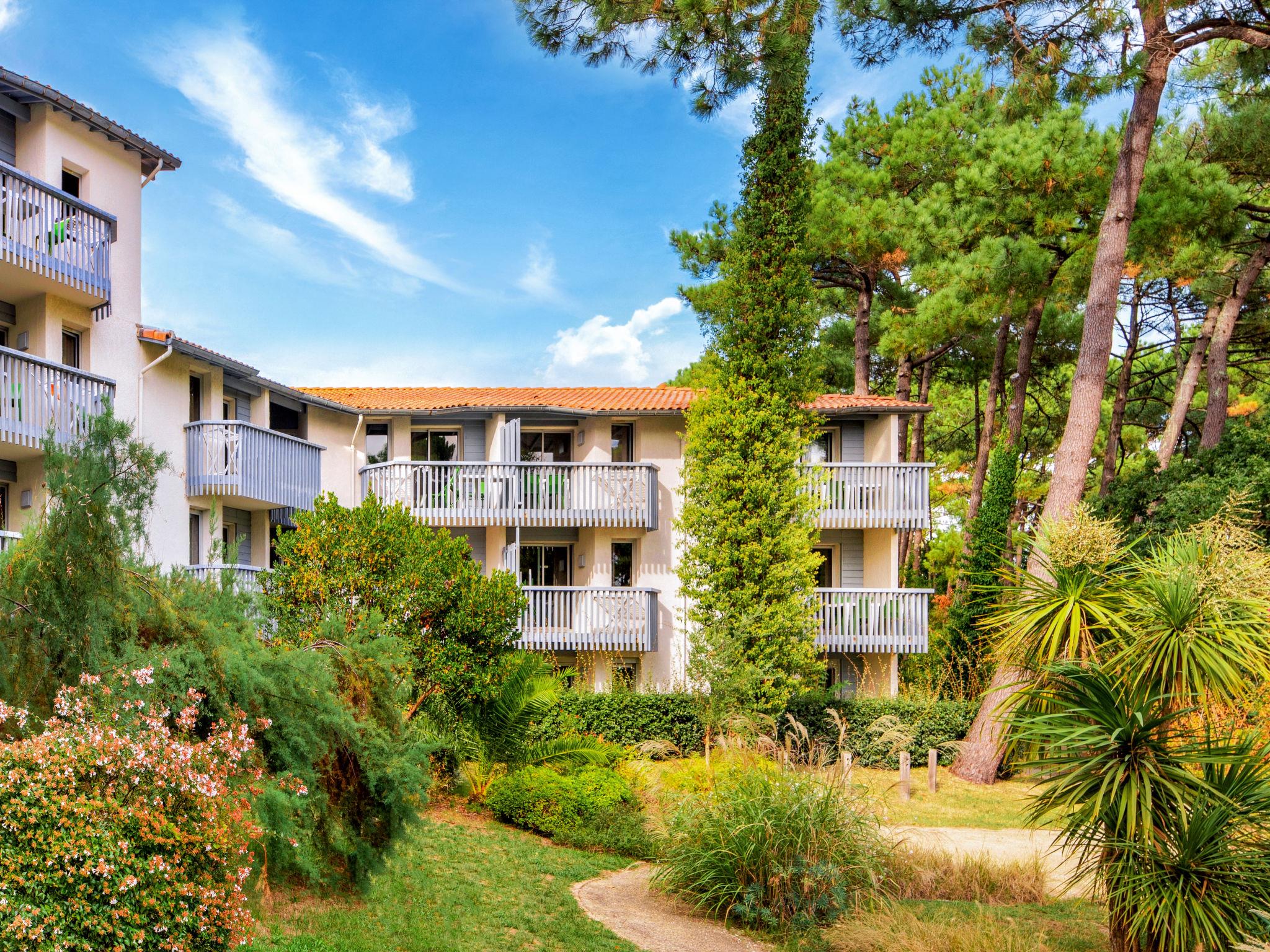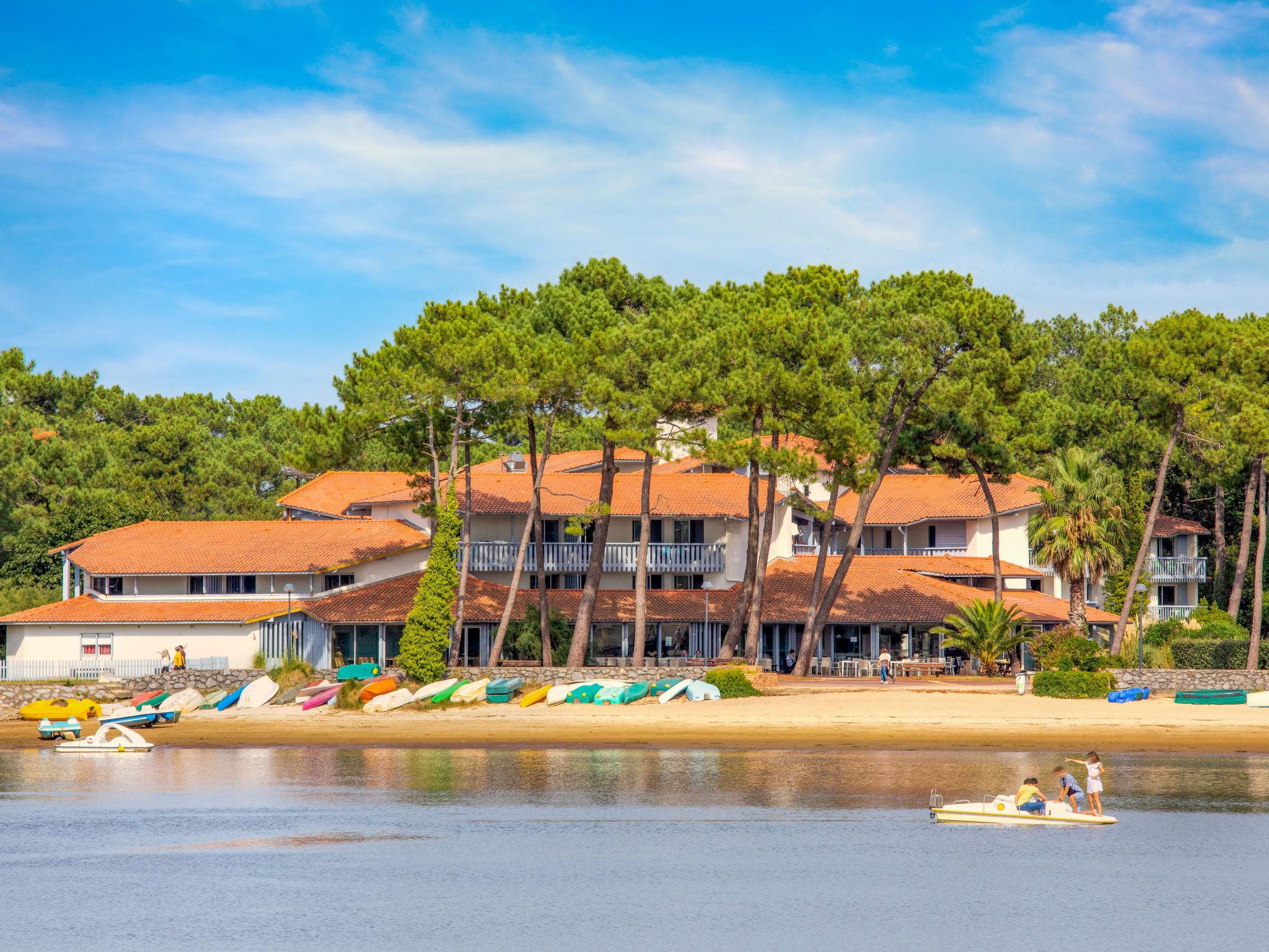 Resort "Sowell Family Pignada Plage", 4 storeys. 2 houses in the residence. 111 apartments in the residence. In the district of Port d'Albret 900 m from the centre of Vieux-Boucau, 7.5 km from the centre of Soustons, 15 km from the centre of Hossegor, 1.7 km from the sea, 50 m from the lake. For shared use: natural state property with trees, swimming pool (18 x 9 m, depth 45 - 150 cm, seasonal availability: 01.Apr. - 30.Sep.). Tennis (extra), table tennis, boccia. In the complex: reception, restaurant, lift, storage room for bicycles, washing machine, tumble dryer (for shared use, extra), bicycle rental. Parking (limited number of spaces). Shop 900 m, sandy beach "Vieux-Boucau" 1.7 km, bathing lake "Lac Marin de Port d'Albret" 50 m. Golf course (18 hole) 10 km. Please note: the photograph shows a typical example. The holiday properties may differ in living space, floorplan, equipment and furnishing.