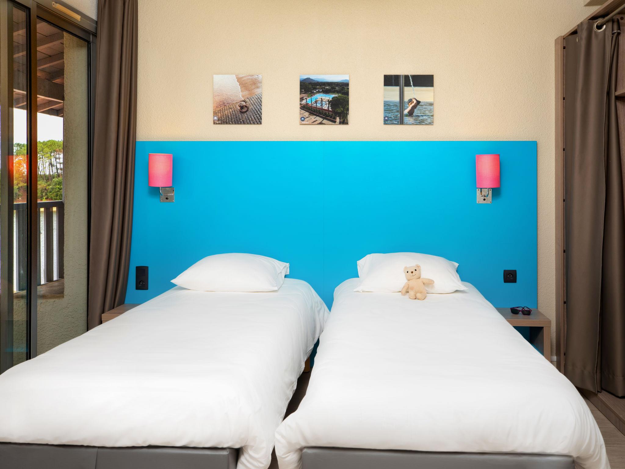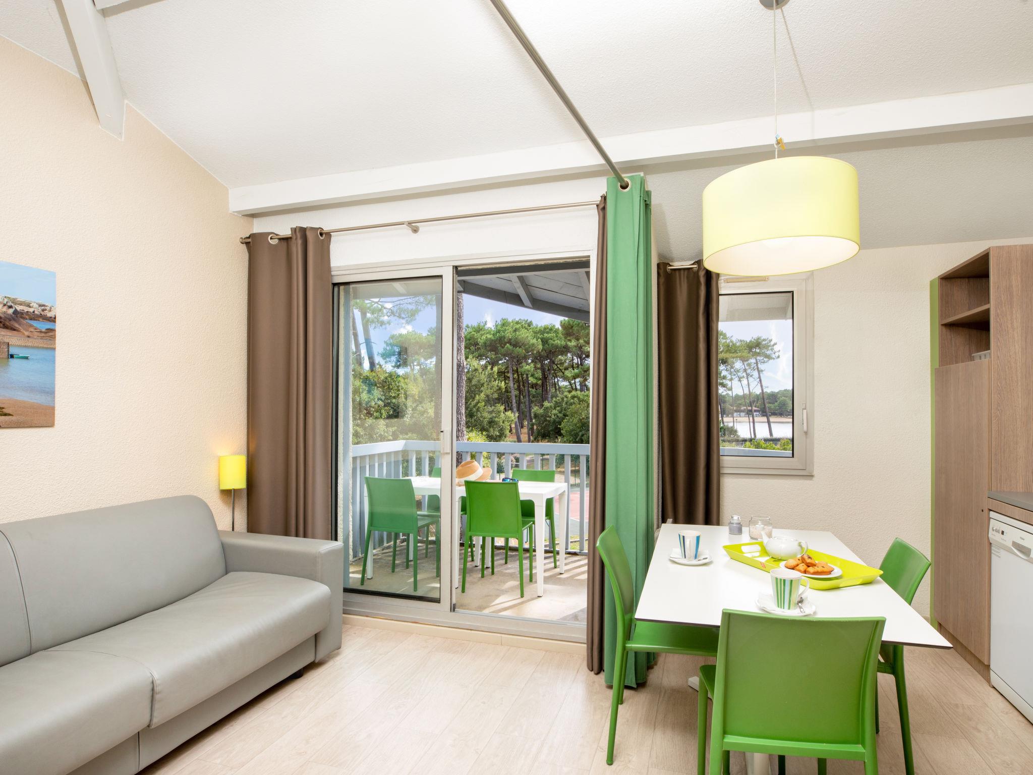 Resort "Sowell Family Pignada Plage", 4 storeys. 2 houses in the residence. 111 apartments in the residence. In the district of Port d'Albret 900 m from the centre of Vieux-Boucau, 7.5 km from the centre of Soustons, 15 km from the centre of Hossegor, 1.7 km from the sea, 50 m from the lake. For shared use: natural state property with trees, swimming pool (18 x 9 m, depth 45 - 150 cm, seasonal availability: 01.Apr. - 30.Sep.). Tennis (extra), table tennis, boccia. In the complex: reception, restaurant, lift, storage room for bicycles, washing machine, tumble dryer (for shared use, extra), bicycle rental. Parking (limited number of spaces). Shop 900 m, sandy beach "Vieux-Boucau" 1.7 km, bathing lake "Lac Marin de Port d'Albret" 50 m. Golf course (18 hole) 10 km. Please note: the photograph shows a typical example. The holiday properties may differ in living space, floorplan, equipment and furnishing.