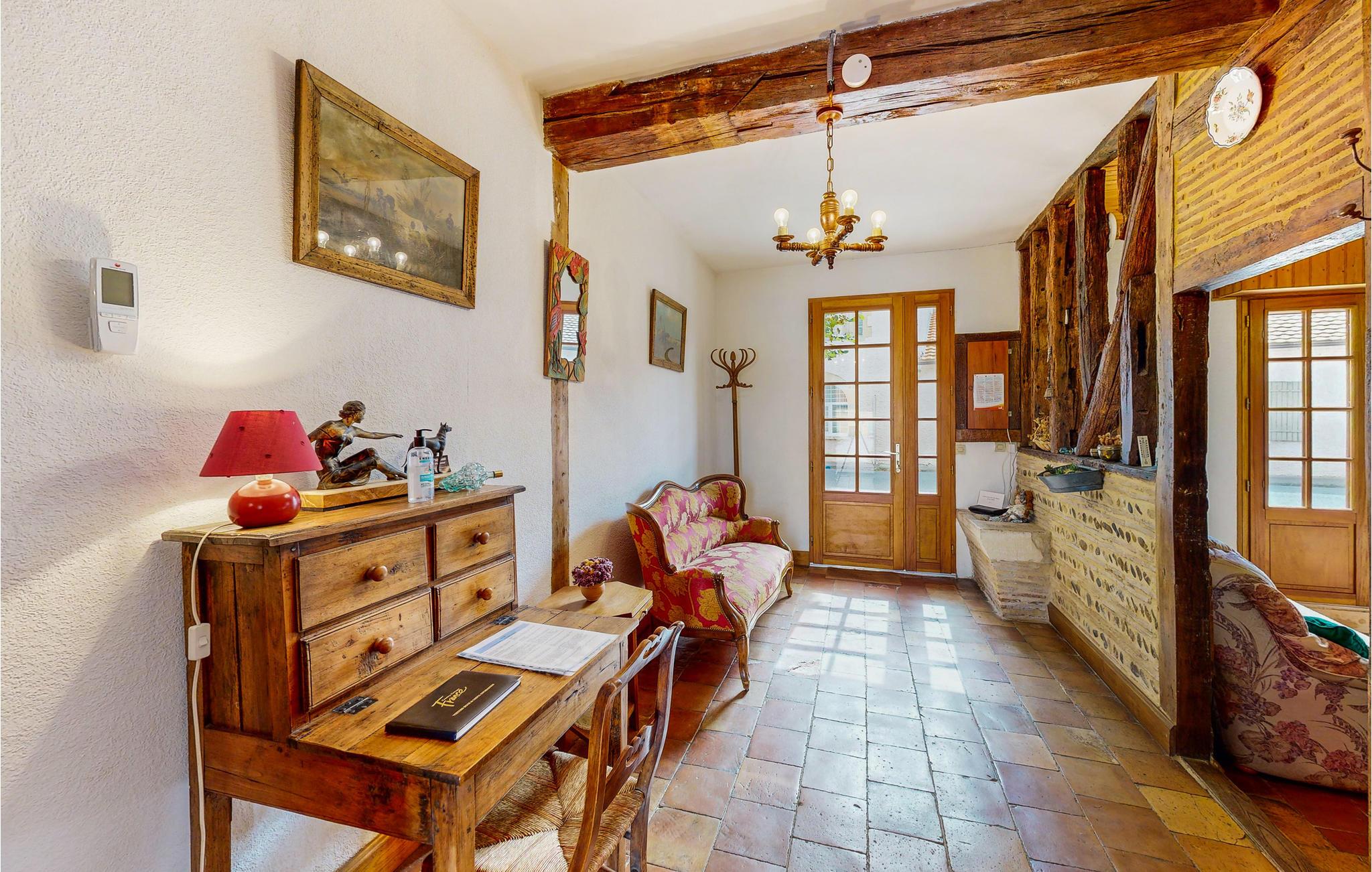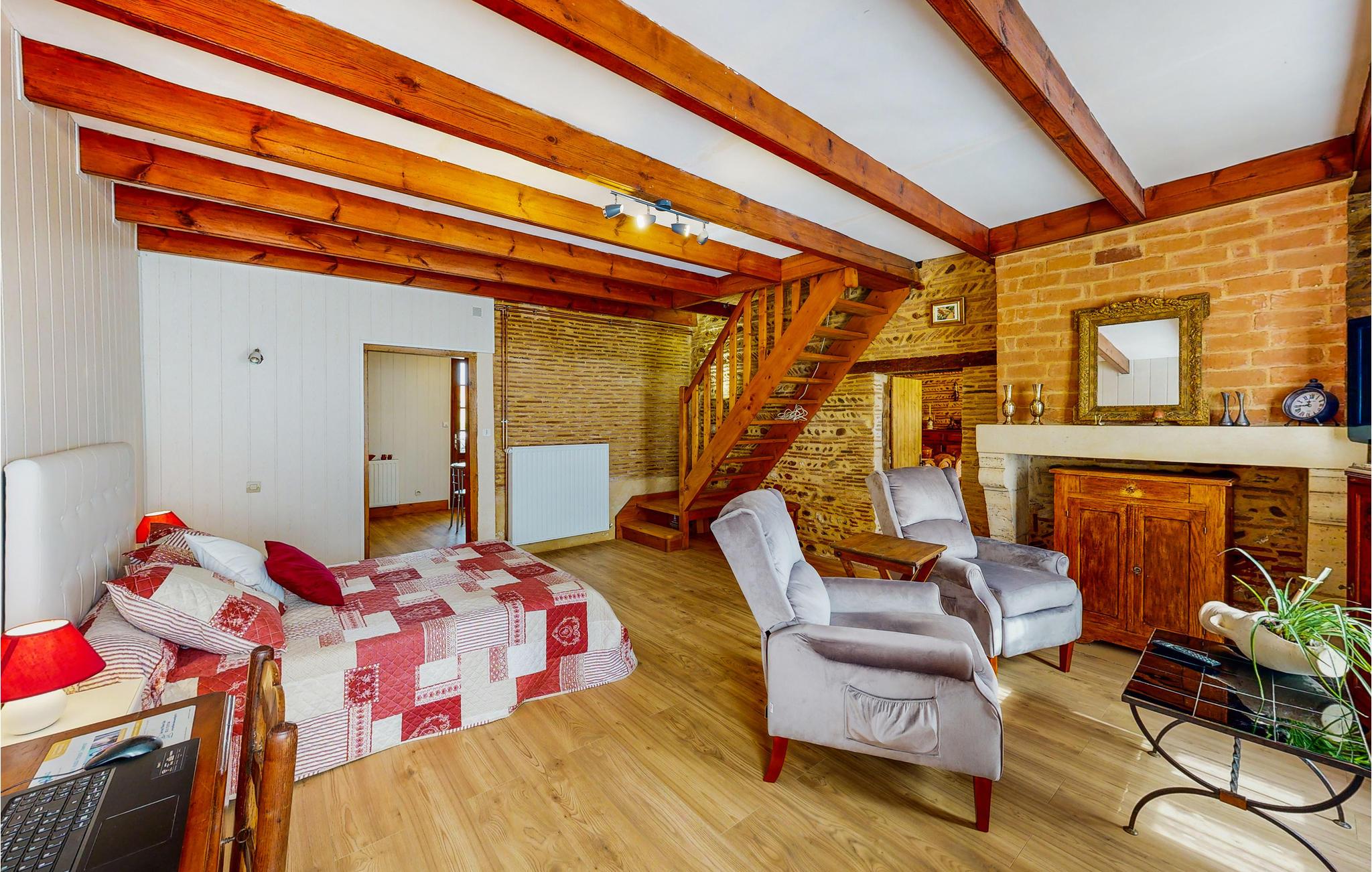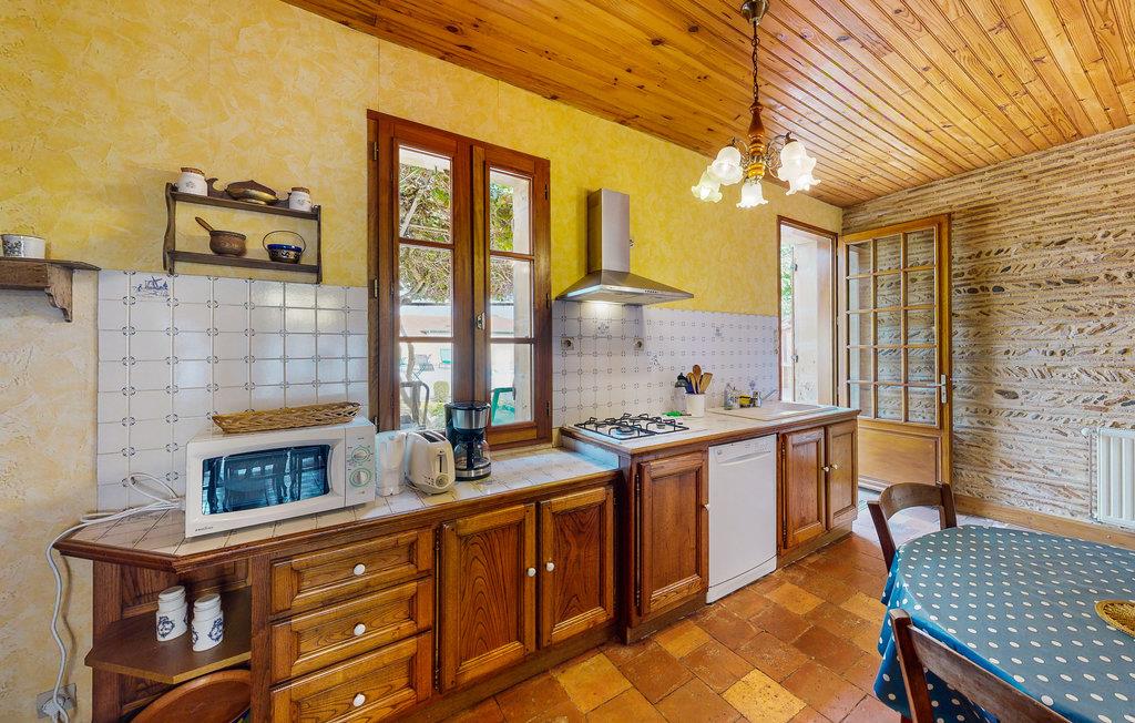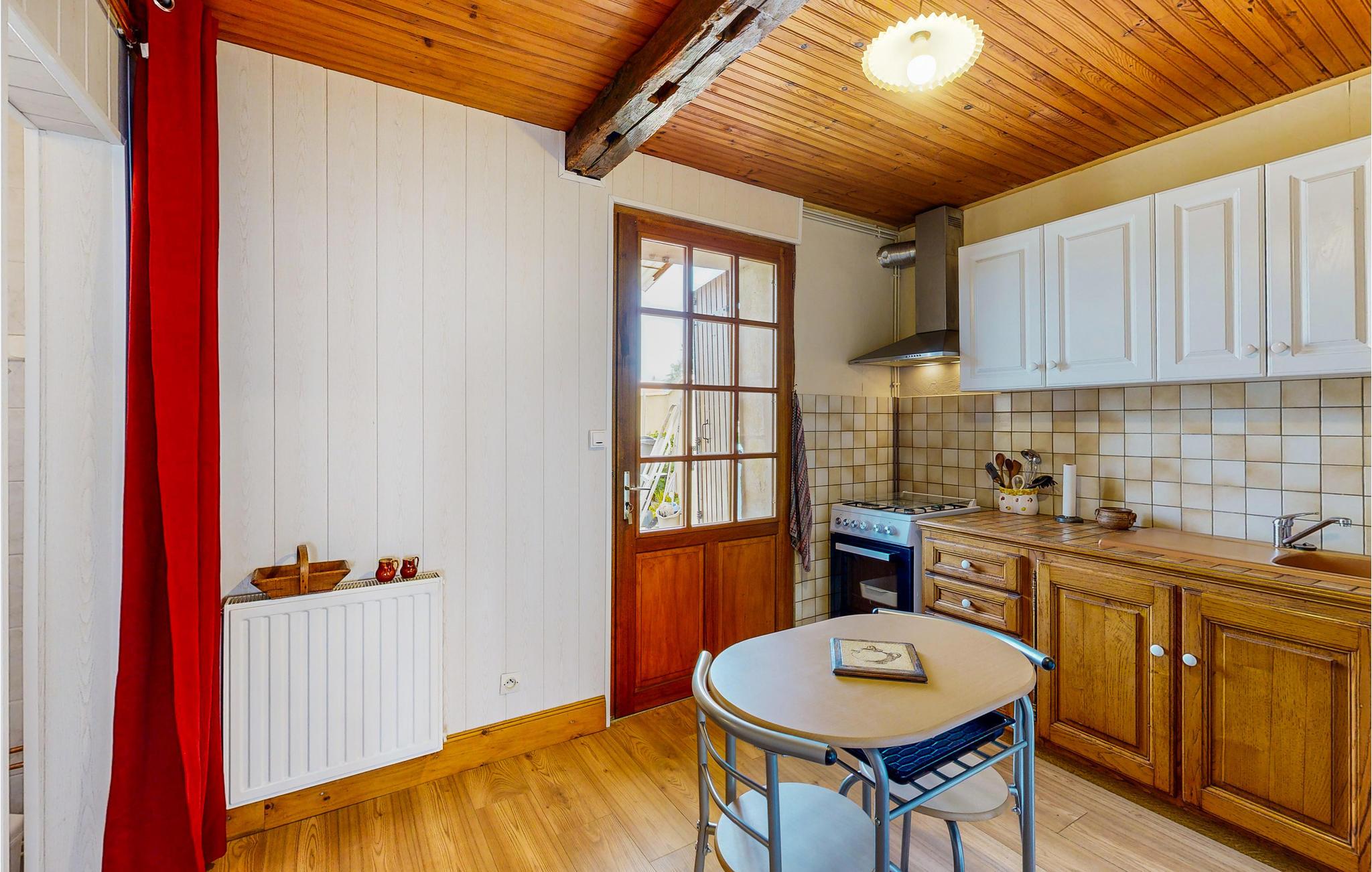 Verbringen Sie Ihren Urlaub in diesem gemütlichen Ferienhaus in einem ursprünglichen Dorf westlich von Bergerac. Umgeben von weitläufigen Weinfeldern und nur einen kurzen Spaziergang von der Dordogne entfernt, bietet das Haus eine angenehme Atmosphäre für eine erholsame Auszeit. Lassen Sie sich im Wohnzimmer auf den bequemen Sofas nieder und genießen Sie die traditionelle Einrichtung mit antiken Möbelstücken, sichtbaren Holzbalken und rustikalen Steinmauern. Der großzügige Esstisch lädt zu gemeinsamen Mahlzeiten ein. Nutzen Sie die Küche, um regionale Spezialitäten zuzubereiten.