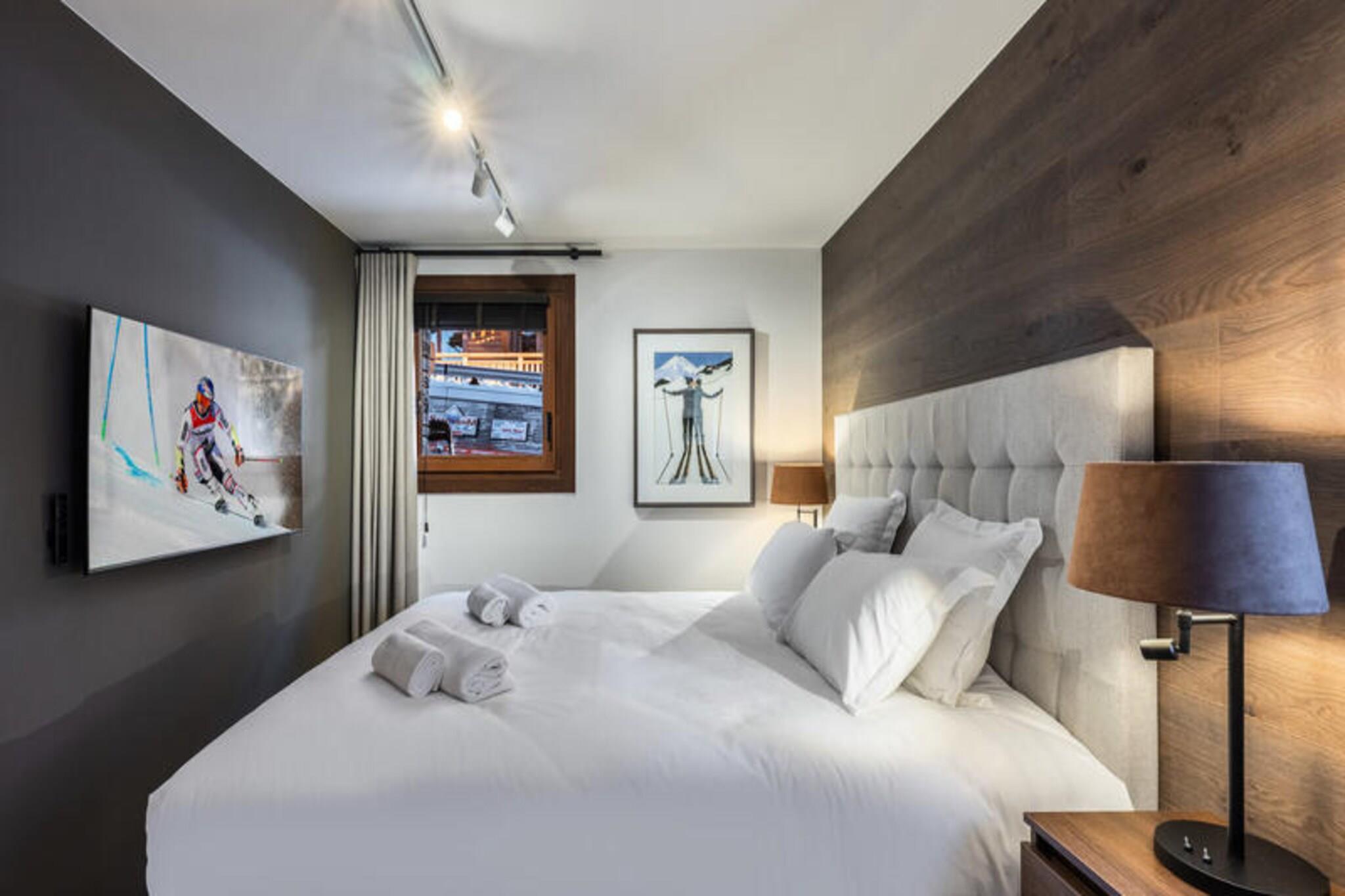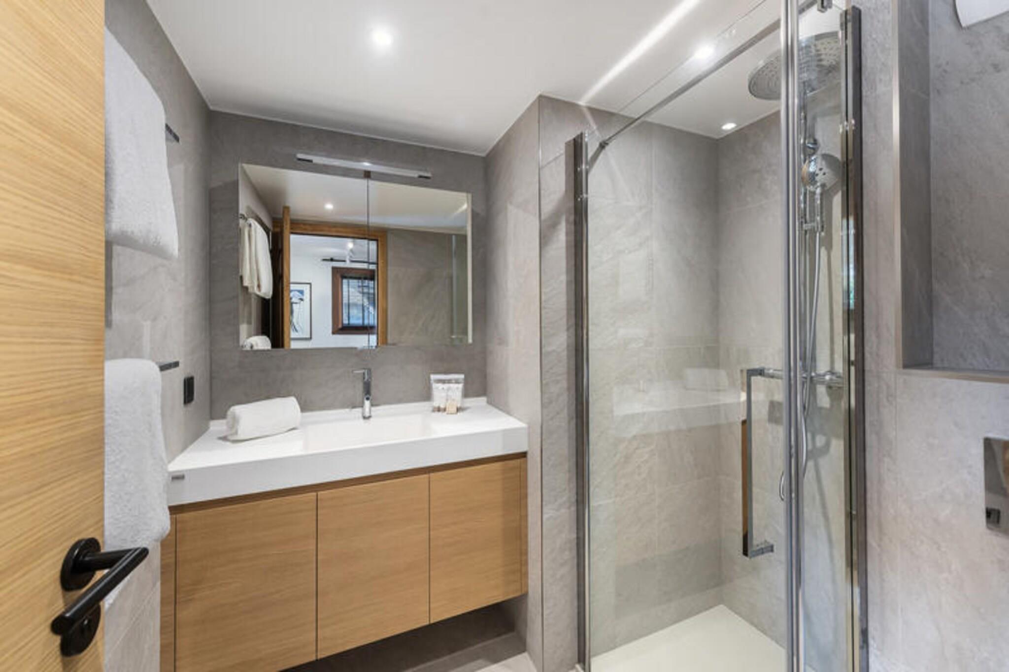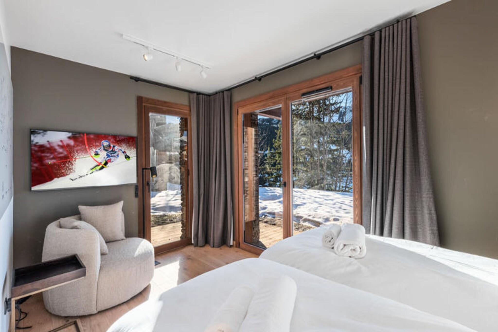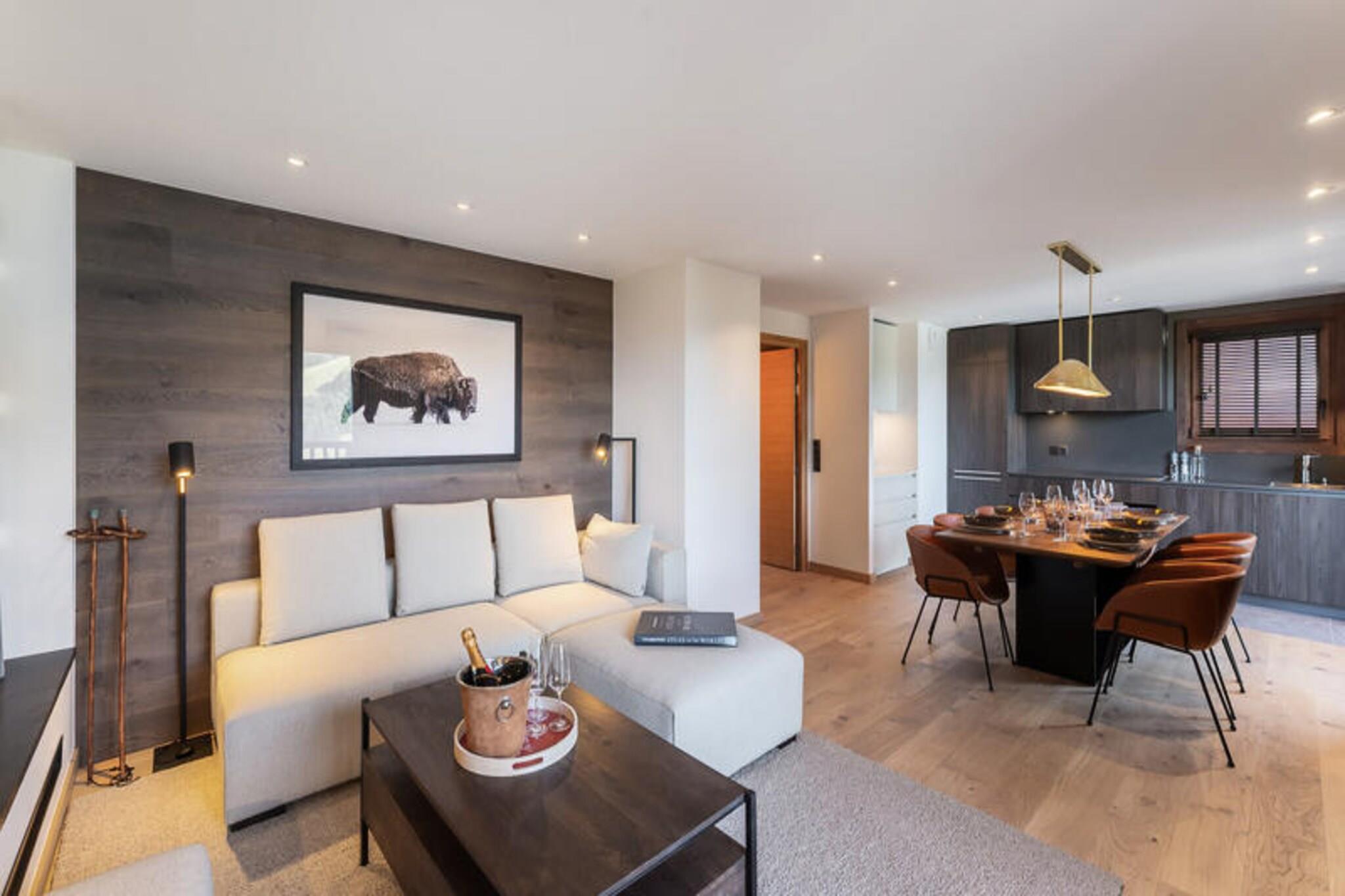 This luxurious 100m² apartment, located in a two-unit chalet, comfortably accommodates up to 7 people across 3 bedrooms. Two of the bedrooms are en-suite, including one with a double bed (180x200) and another with a set of bunk beds and a pull-out bed. The apartment is non-smoking and does not allow pets. Additional features include a TV lounge with a gas fireplace and a sauna for four people, perfect for unwinding after a day on the slopes. Located just 400 meters from the Ariondaz gondola, this apartment offers direct access to the 3 Valleys ski area, renowned for its extensive and varied slopes. Courchevel Moriond’s shops, restaurants, and the French Ski School are also within easy reach, ensuring that all your needs are met while enjoying the serene surroundings of the Glaciers area. The apartment features an open, fully equipped kitchen with two refrigerators, an oven, a dishwasher, and a microwave. The dining area can seat up to 10 guests, and the property includes a ski locker with a boot dryer for 10 pairs of boots. For added convenience, the apartment includes a washing machine and dryer, and a cellar for additional storage.
