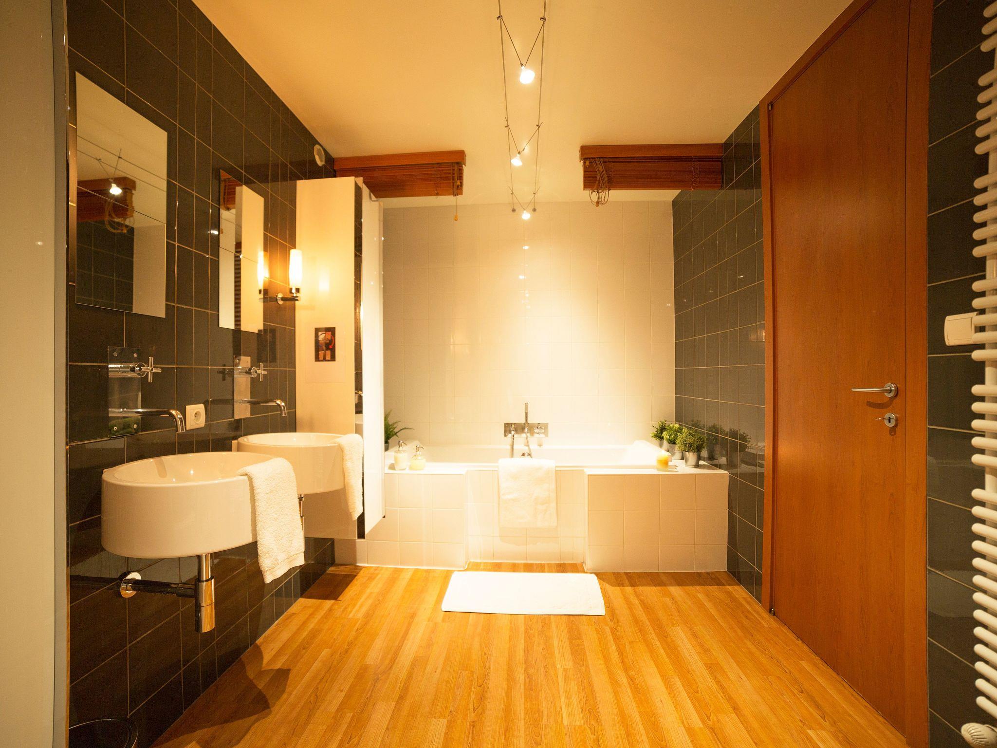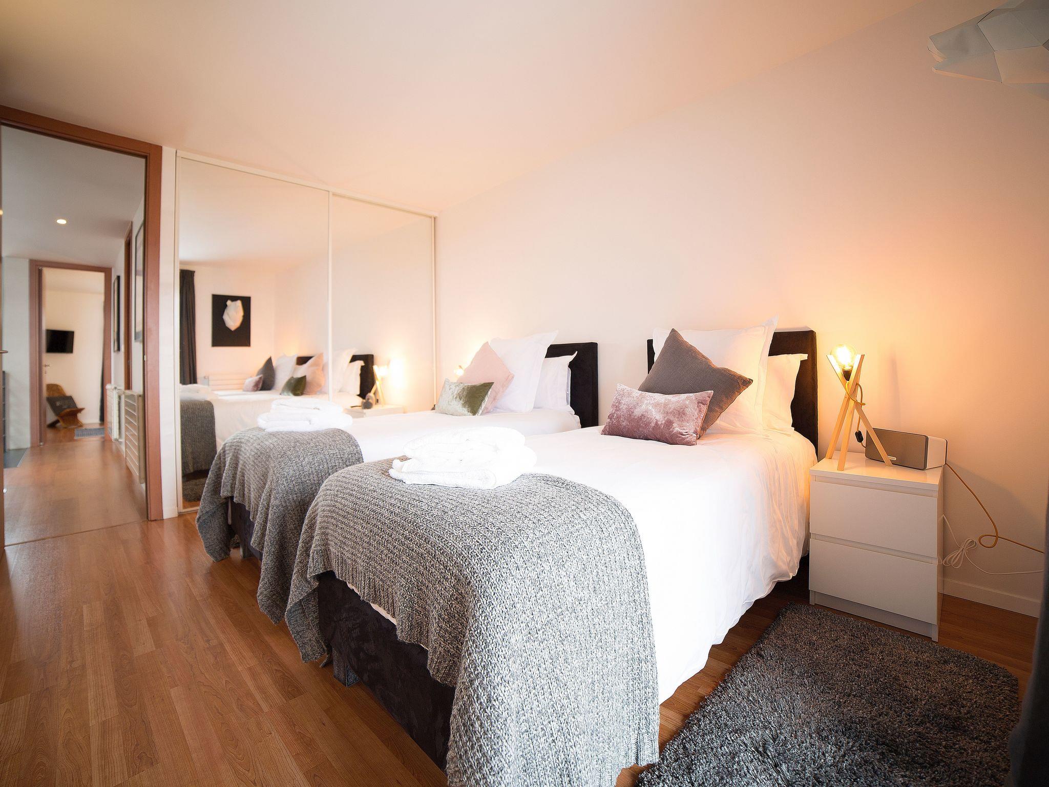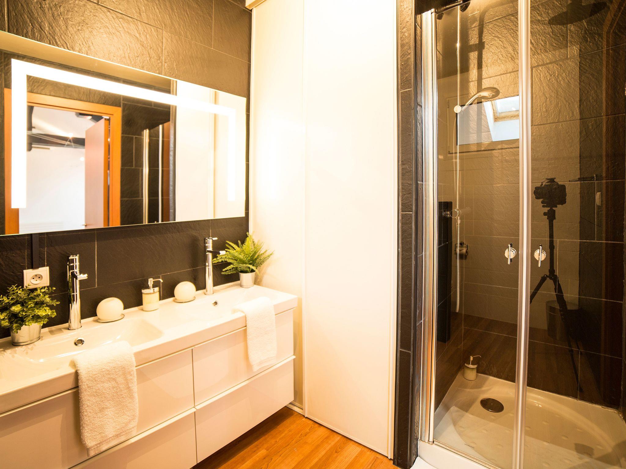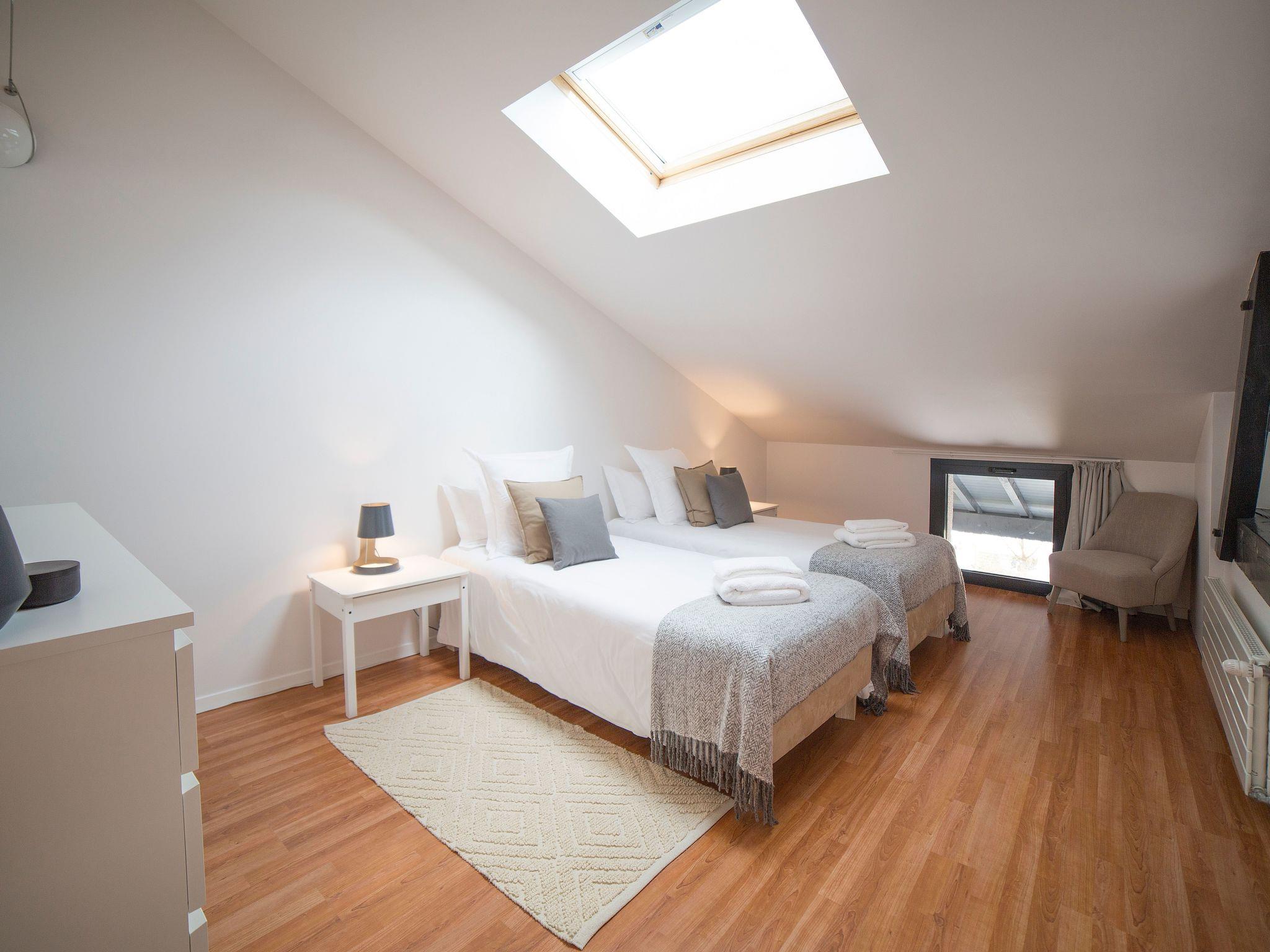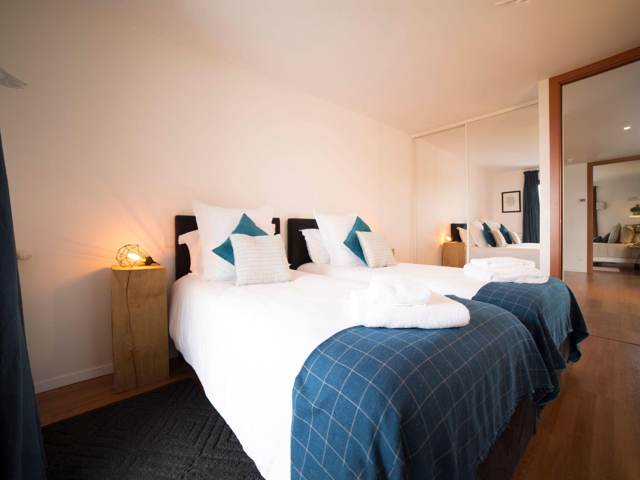 There are four bedrooms on the first floor: two doubles and two twins, which can be arranged as double bedrooms. All of the bedrooms have televisions and plenty of storage. There's also a bathroon on this floor, with twin basins, a bath and a shower. There is a large loft room on the top floor with two sets of twin beds separated by a shower room. There are also gym and play areas with a television and games consoles. Please be aware the 4 single beds located on the mezzanine are in an open space together with the gym and the games room. Please refer to our photos.