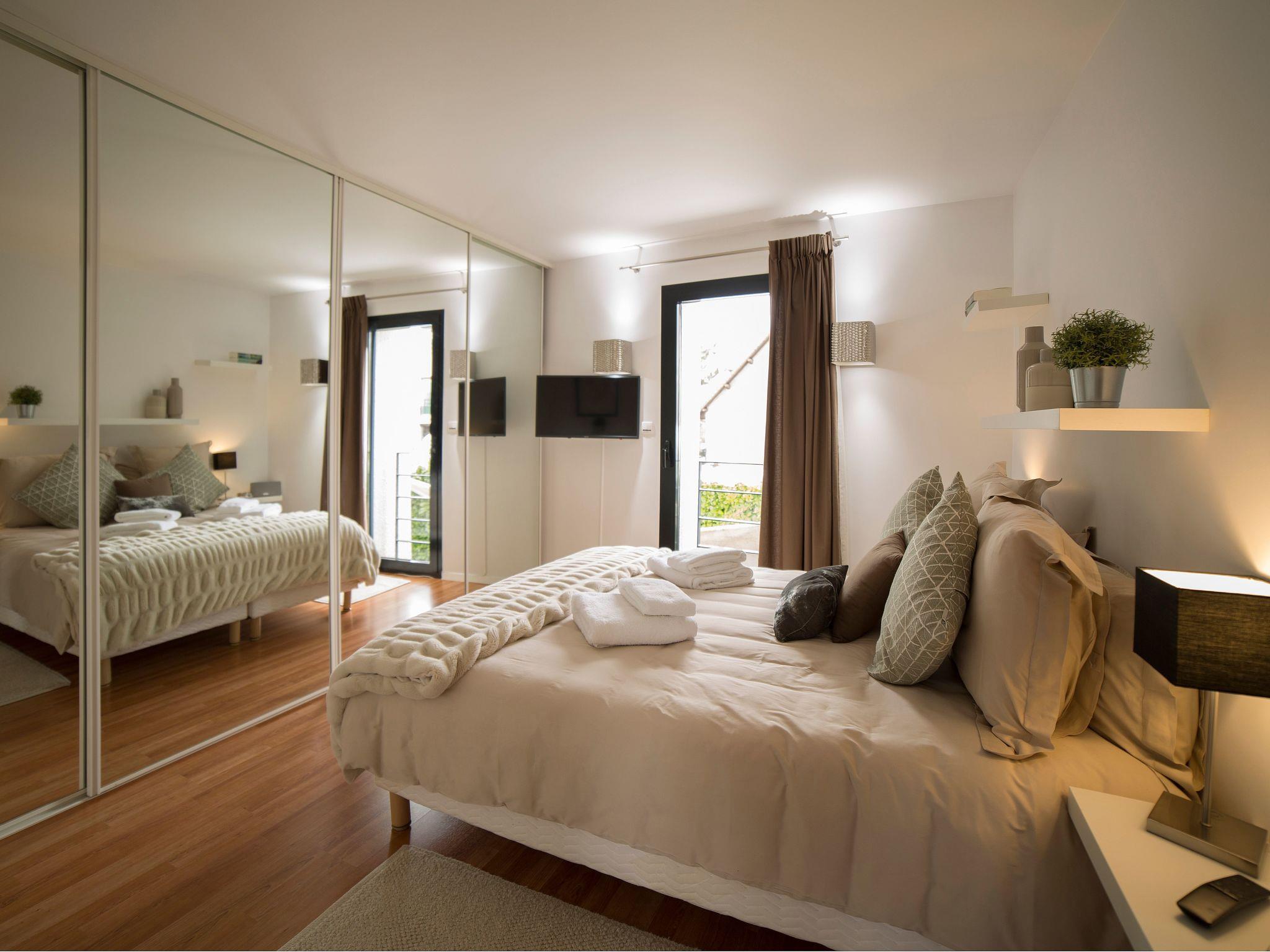 The property ...This three-storey semi-detached home has plenty of room for up to 12 people, with four bedrooms as well as a mezzanine loft room designed for younger guests.The main living area is on the ground floor, along with the home cinema and a games area. There's a cosy seating area around a beautiful suspended fireplace. Doors from here lead into the garden, which has a furnished terrace for al fresco meals, and a sail shade for sunny days. There's a step up to the well-equipped kitchen and dining area, where there's a table big enough to seat everyone together. There is also a toilet on this floor. Another outside area features a cosy seating area, a jacuzzi , and a swim spa - a large jacuzzi with a counter-current for swimming. There's also a lovely summer kitchen with plancha grill, which is perfect for making the most of long summer evenings.