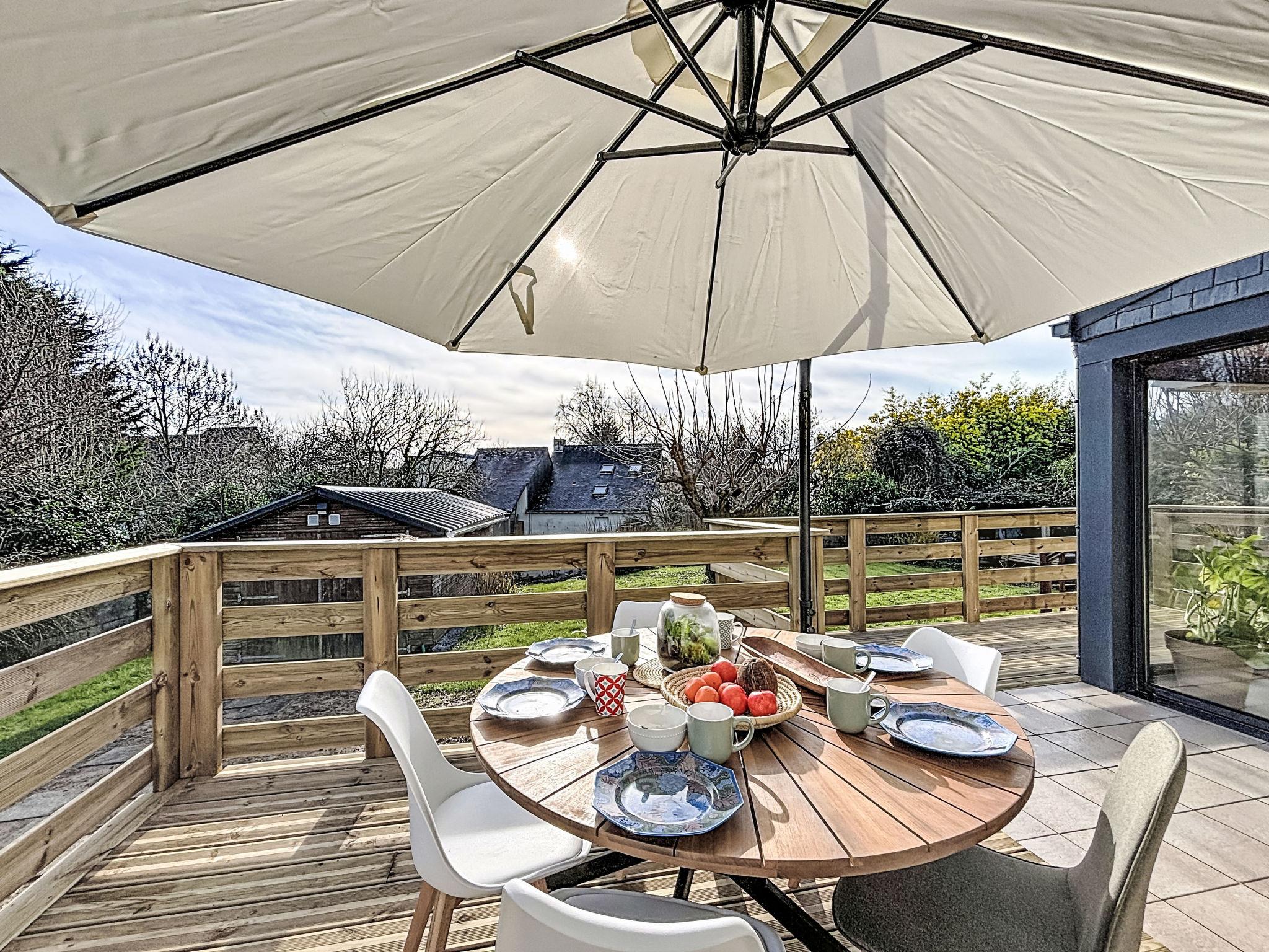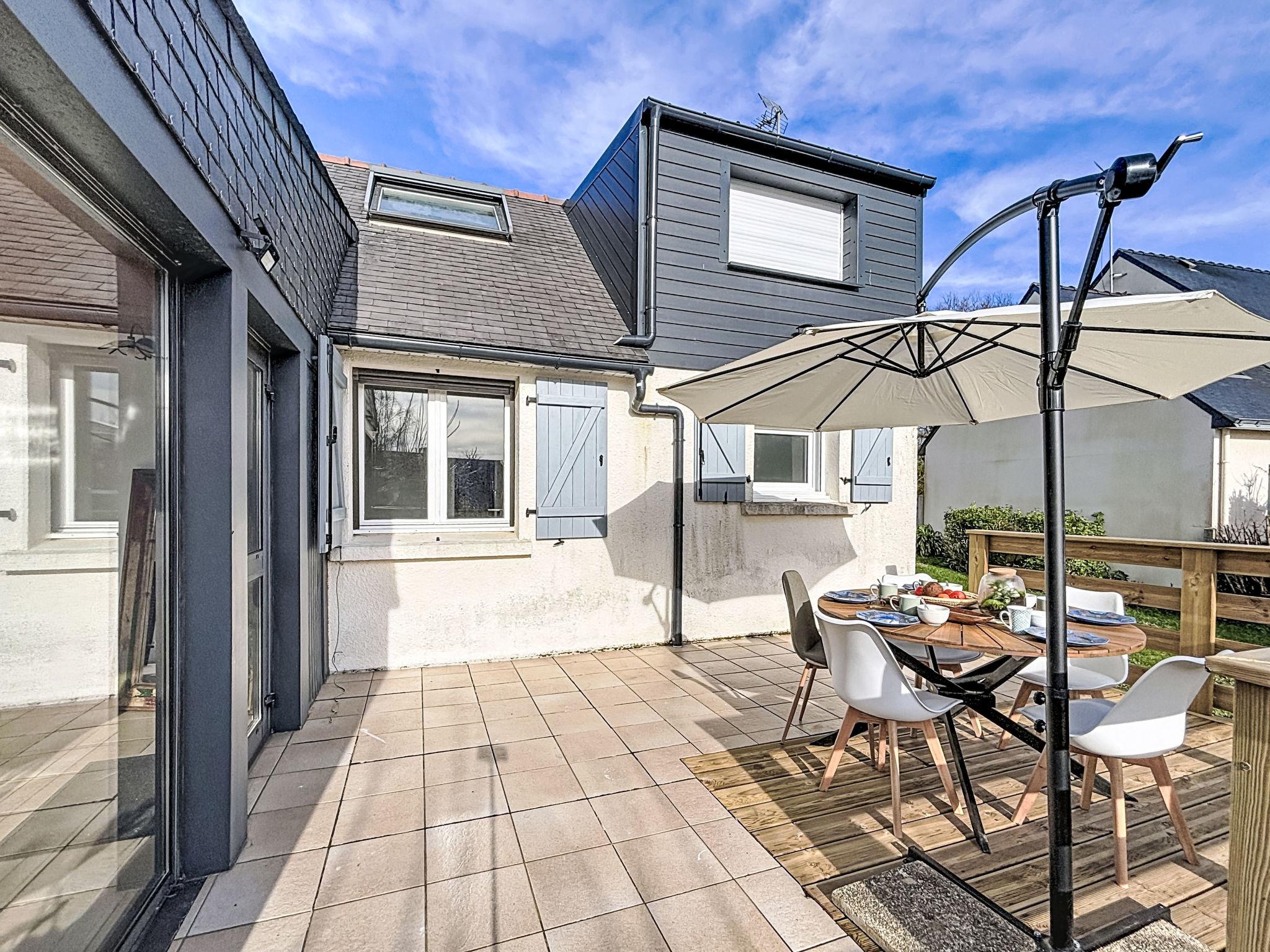 "Maison de Kergoff", 4-room house 90 m2. Comfortable furnishings: living/dining room with TV (flat screen). Exit to the veranda. 1 room with 1 french bed (1 x 140 cm, length 190 cm). Kitchen (oven, dishwasher, 3 induction hot plates, toaster, kettle, freezer, electric coffee machine, Capsules for coffee machine (Senseo) extra). Shower, sep. WC, double hand-basin. Upper floor: 1 room with 2 beds (90 cm, length 190 cm). 1 room with 1 french bed (1 x 140 cm, length 190 cm). Sep. WC. Heating. Terrace 25 m2. Terrace furniture, barbecue. Facilities: washing machine, children's high chair, baby cot, hair dryer. Internet (WiFi, free). Parking. Please note: non-smokers only. 1 pet/ dog allowed. Smoke alarm. Offer by a private individual according to Art. 155, IV of CGI. 56214000450FB