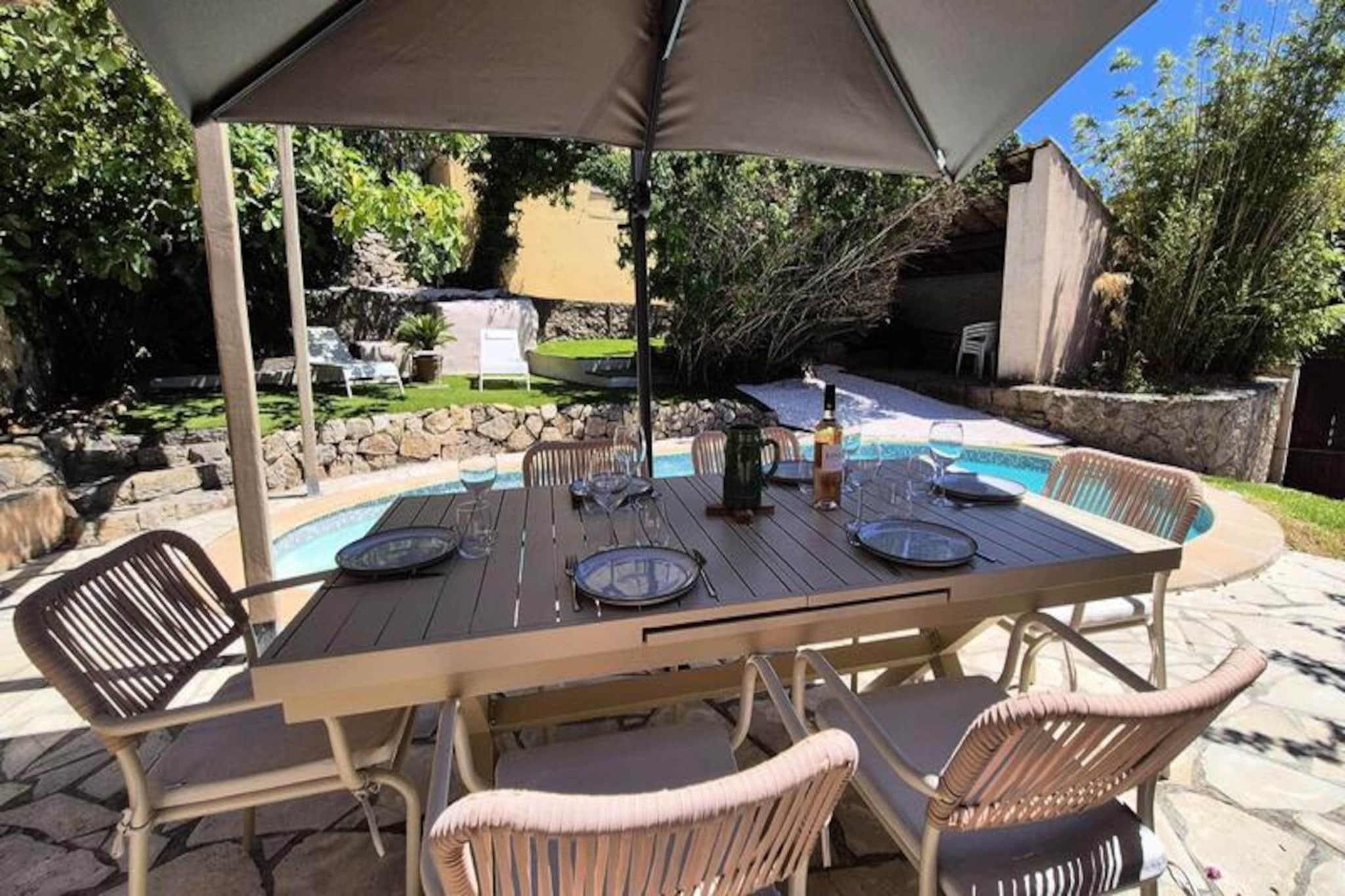 In the enchanting village of Saint-Mandrier-sur-Mer, where the Mediterranean breeze dances through the streets, this charming family home offers the perfect retreat for a memorable holiday. Just a short stroll from the vibrant port, sandy beaches, and local shops, this property invites you to experience the relaxed Provençal lifestyle in a serene and leafy setting. Whether you're seeking a peaceful escape or an adventure-filled getaway, this home has it all. Step into the sunny garden, where a private swimming pool awaits, surrounded by comfortable sun loungers for lazy afternoons under the sun. The shaded terrace, complete with a large parasol, is perfect for al fresco dining, while a second tranquil spot under the trees provides a cool haven for reading or napping. Inside, the house exudes charm and comfort, featuring a bright veranda that leads to a spacious living room with original flooring, air conditioning, and a cozy sitting area. The open-plan kitchen is fully equipped, making it easy to prepare meals to enjoy with loved ones. The property comfortably accommodates up to eight guests, with two large air-conditioned bedrooms, a versatile open-plan room with a pull-out bed, and two well-appointed bathrooms. Additional amenities include Wi-Fi, a washing machine, and two private parking spaces. The house is thoughtfully designed to ensure a relaxing stay, blending modern conveniences with timeless Provençal charm. With everything within walking distance, including the port, restaurants, and beaches, this home is perfectly situated to explore the beauty of Saint-Mandrier-sur-Mer. Whether you're savoring local delicacies, basking by the pool, or wandering through the picturesque village streets, this property promises an unforgettable escape by the sea.