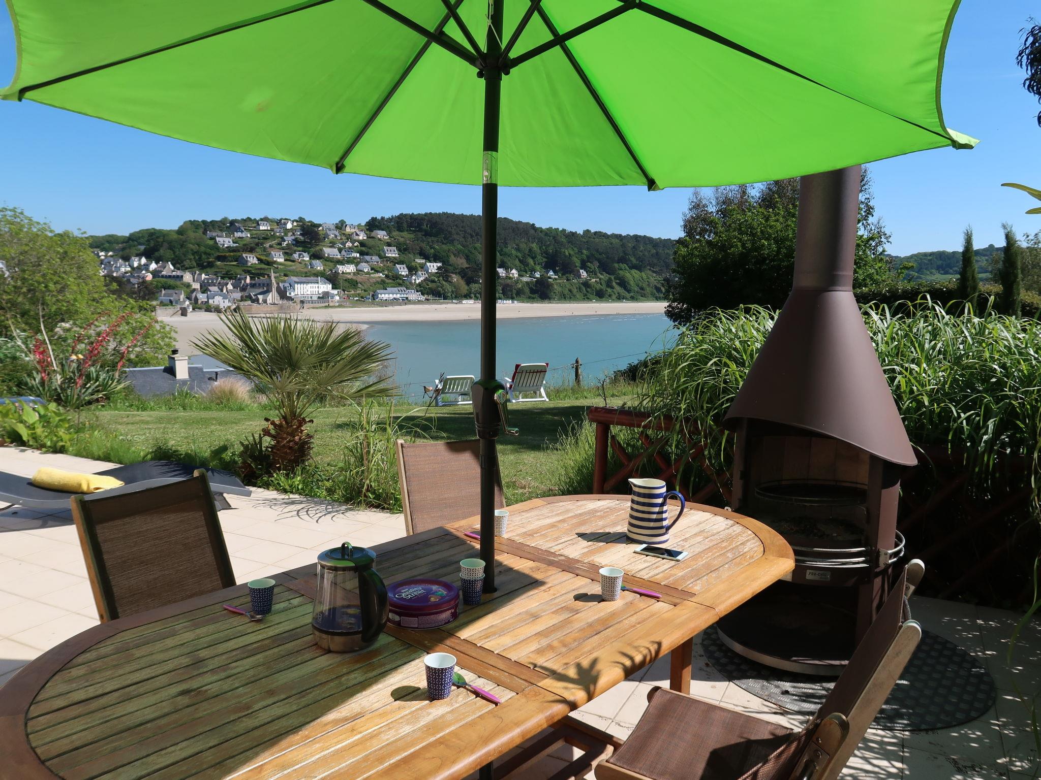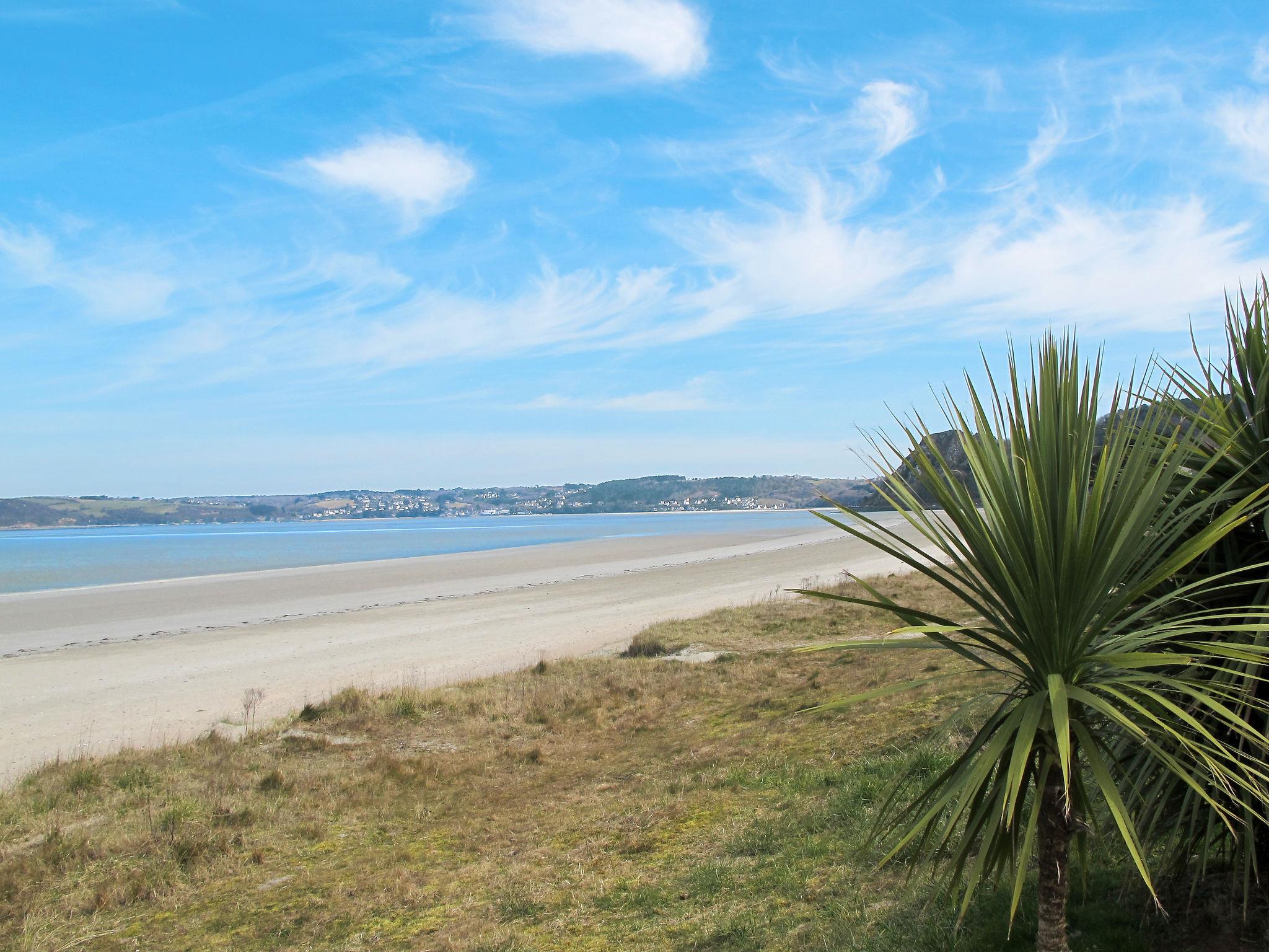 Modern, beautiful, very comfortable single-family house "Meeresblick". In the district of Petit Port 800 m from the centre of Saint Michel-en-Grève, on the outskirts, 8 km from the centre of Plestin-les-Grèves, 11 km from the centre of Lannion, in a quiet, sunny position on a slope, in the residential district, 150 m from the sea, in a cul-de-sac, south facing position. Private: beautiful, well-kept garden 1'000 m2 (not fenced) with lawn and wildlife garden, courtyard. Children's playground (swing), parking (for 3 cars) on the premises. Shop 700 m, supermarket 7 km, bicycle rental 1 km, bus stop 6 km, sandy beach 800 m. Sailing school 5 km, tennis 1 km. The owner does not accept any groups.