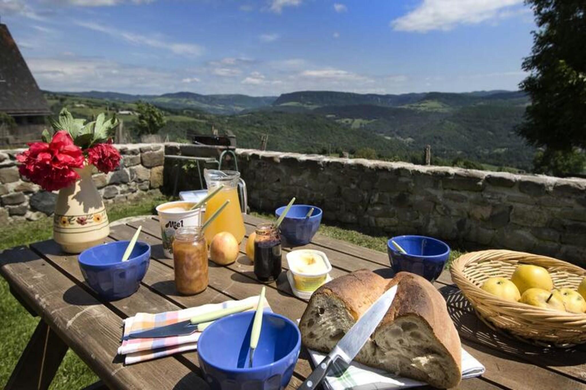 Gîte à; the entrance to the hamlet of Nogardel, located along the GR6 at the gates of Aubrac. On the ground floor: living room/lounge (fireplace with insert, television), kitchen (oven, dishwasher, microwave, washing machine), bathroom, Separate WC. Upstairs: 1 bedroom (1 double bed and 2 single beds), 1 mezzanine (1 double bed), separate WC. Baby kit chair bed and playpen. Enclosed exterior with garden furniture and barbecue, beautiful view. Discovery of the family farm. Pets admitted free of charge The price includes: Charges, electricity and electricity. 8 kWh/day, heating up to 40 kWh/day. The price does not include: Rental of sheets (15EURO/bed), bathroom and household linen (15EURO/person), end-of-stay cleaning service (50EURO) and wood for the fireplace. Heating in the event of exceeding 40 kWh/day billed at the same time. at the current rate. Shared swimming pool - 12000 meters Deposit (in euros) - 100 Parking - nearby Bathroom linen - rental End of stay cleaning - extra Wifi - free