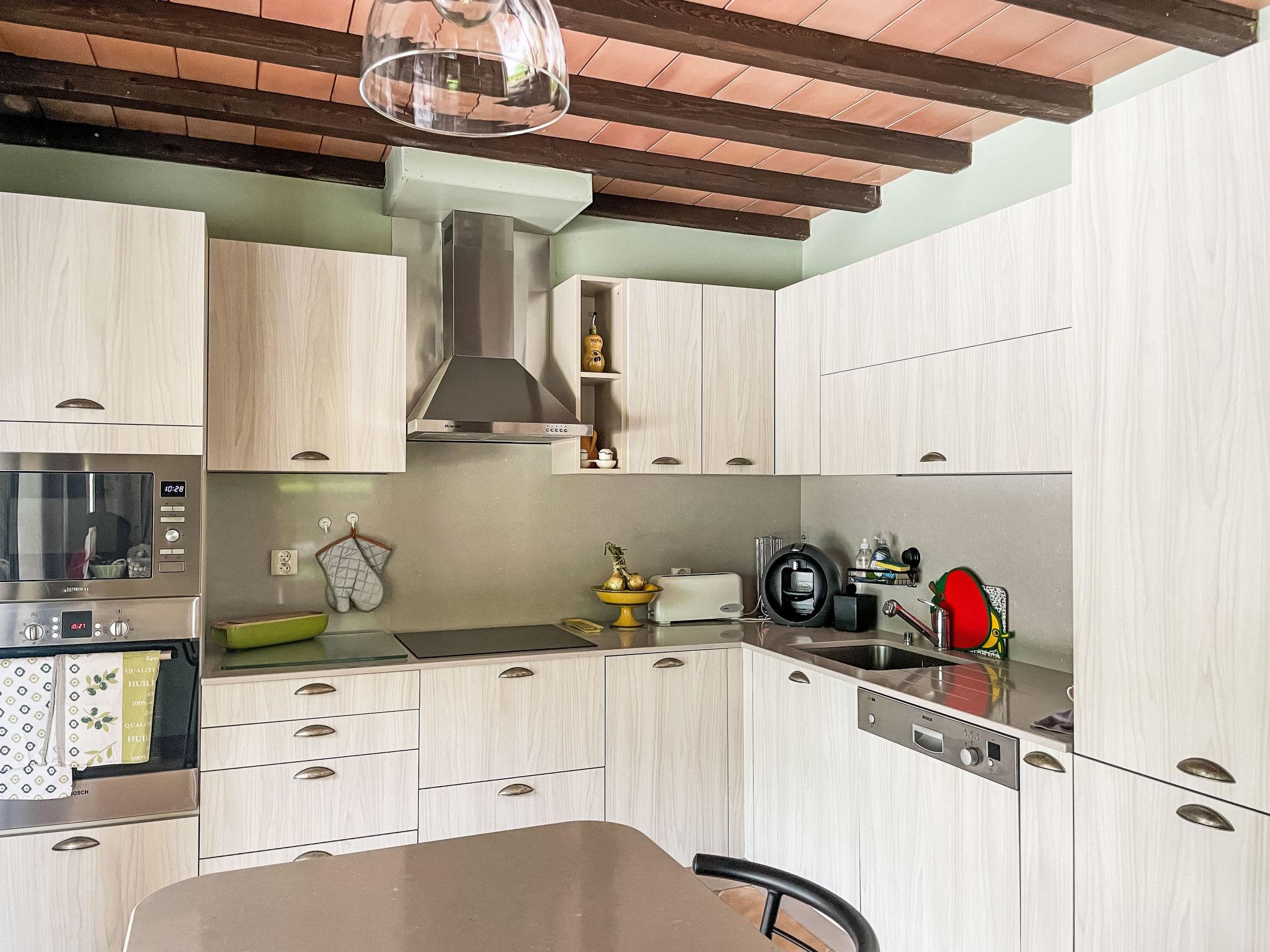 5-room villa 160 m2 on 2 levels. Comfortable and beautiful furnishings: living/dining room 35 m2 with panoramic window with open-hearth fireplace and TV (flat screen). Exit to the terrace, to the swimming pool. 1 room with 1 x 2 bunk beds (90 cm, length 190 cm). 1 room with 1 french bed (160 cm, length 200 cm). Exit to the terrace. Large kitchen 15 m2 (oven, dishwasher, 3 induction hot plates, toaster, kettle, microwave, freezer, electric coffee machine, Capsules for coffee machine (Tassimo) extra). Sep. WC, bath/shower/WC, double hand-basin. Electric heating, air-conditioning. Upper floor: gallery. Exit to the terrace. 1 room with 1 french bed (180 cm, length 200 cm). 1 room with 1 french bed (140 cm, length 190 cm), electric shutters. Shower, sep. WC. Terrace 50 m2, roofed, west facing position. Terrace furniture, barbecue, deck chairs (6). Facilities: washing machine, iron, baby cot for up to 2 year olds. Internet (WiFi, free). Please note: suitable for families. Non-smoking house. Maximum 2 pets/ dogs allowed. Smoke alarm. Offer by a private individual according to Art. 155, IV of CGI.