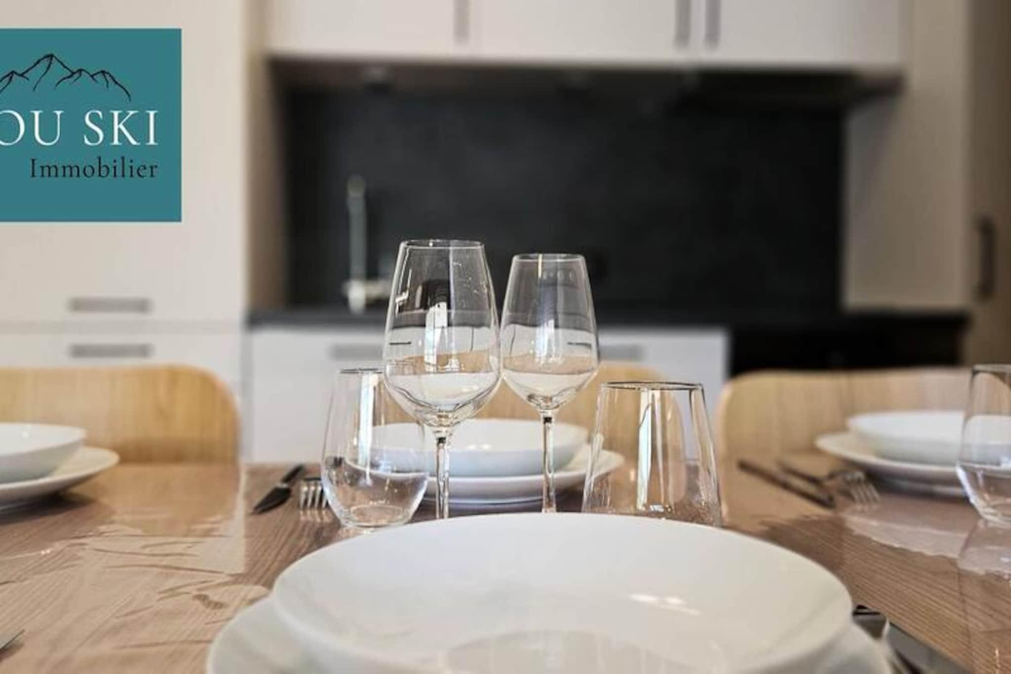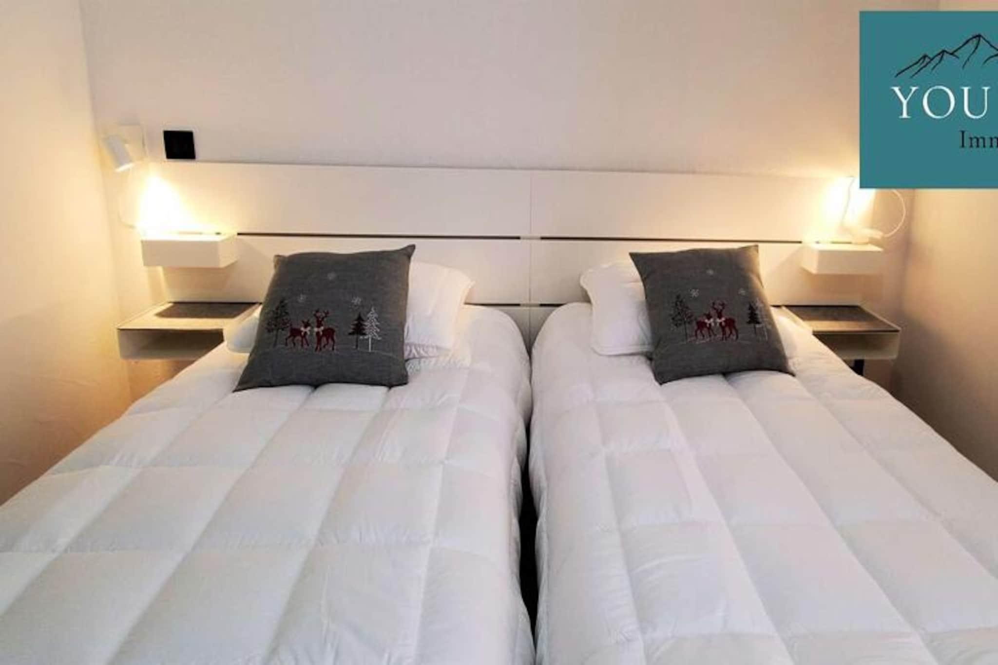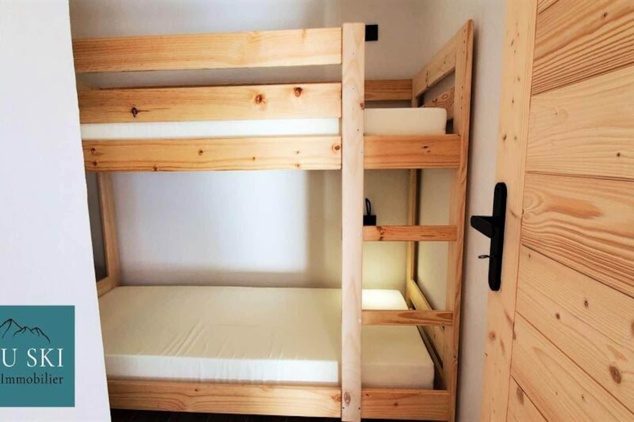 This charming and comfortable apartment offers three spacious bedrooms, making it ideal for families or groups. It features a master bedroom with a 160x200cm double bed and TV, a bedroom with an 80x200cm bunk bed, and another bedroom with two 80x200cm single beds. The apartment is pet-free and includes bed and bathroom linens for added convenience. A large living room offers a beautiful mountain view, and the apartment is equipped with modern amenities, including heating for a cozy stay. Located in the quiet village center, the property is just 100 meters from a ski shop and a restaurant. The ski slopes, ski school, daycare, and tourist office are only 600 meters away, easily accessible by the free shuttle service at the foot of the residence. The central location places guests close to essential services and the picturesque surroundings of the village, ensuring a peaceful and convenient stay. The apartment boasts a fully equipped kitchen with a dishwasher, fridge, oven, and both an electric filter coffee maker and a NESPRESSO machine. It also includes a kettle, toaster, and raclette grill for cozy meals. The bathroom comes with a WC, and additional amenities include a ski locker and covered parking space for your convenience. Enjoy the large balcony, perfect for relaxing after a day on the slopes.