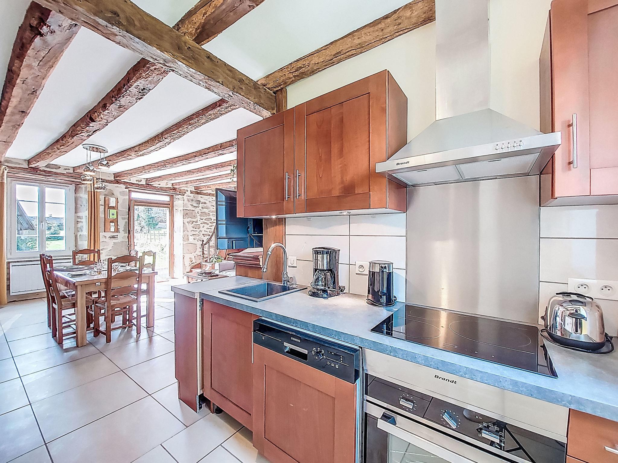 "Gîte Saint Sauveur", 2-room house 50 m2. Comfortable and rustic furnishings: living/dining room with open-hearth fireplace (only for decoration), dining table and TV (flat screen). 1 large room with 1 bed (90 cm, length 190 cm), 1 french bed (140 cm, length 190 cm), TV. Kitchen (oven, dishwasher, 3 induction hot plates, toaster, kettle, microwave, freezer, electric coffee machine). Shower, sep. WC. Electric heating. Facilities: washing machine. Please note: maximum 2 pets/ dogs allowed. Smoke alarm. Offer by a private individual according to Art. 155, IV of CGI.