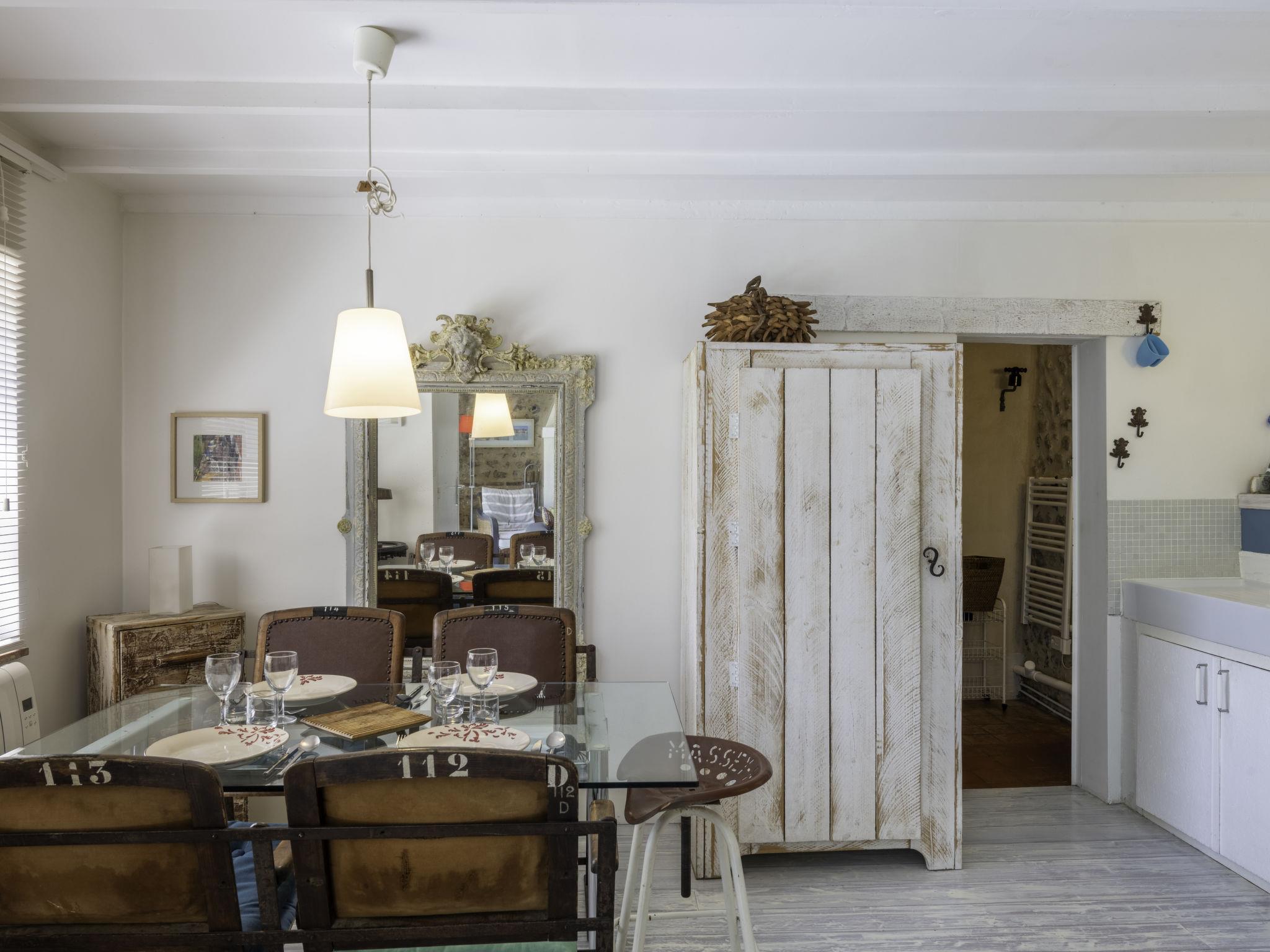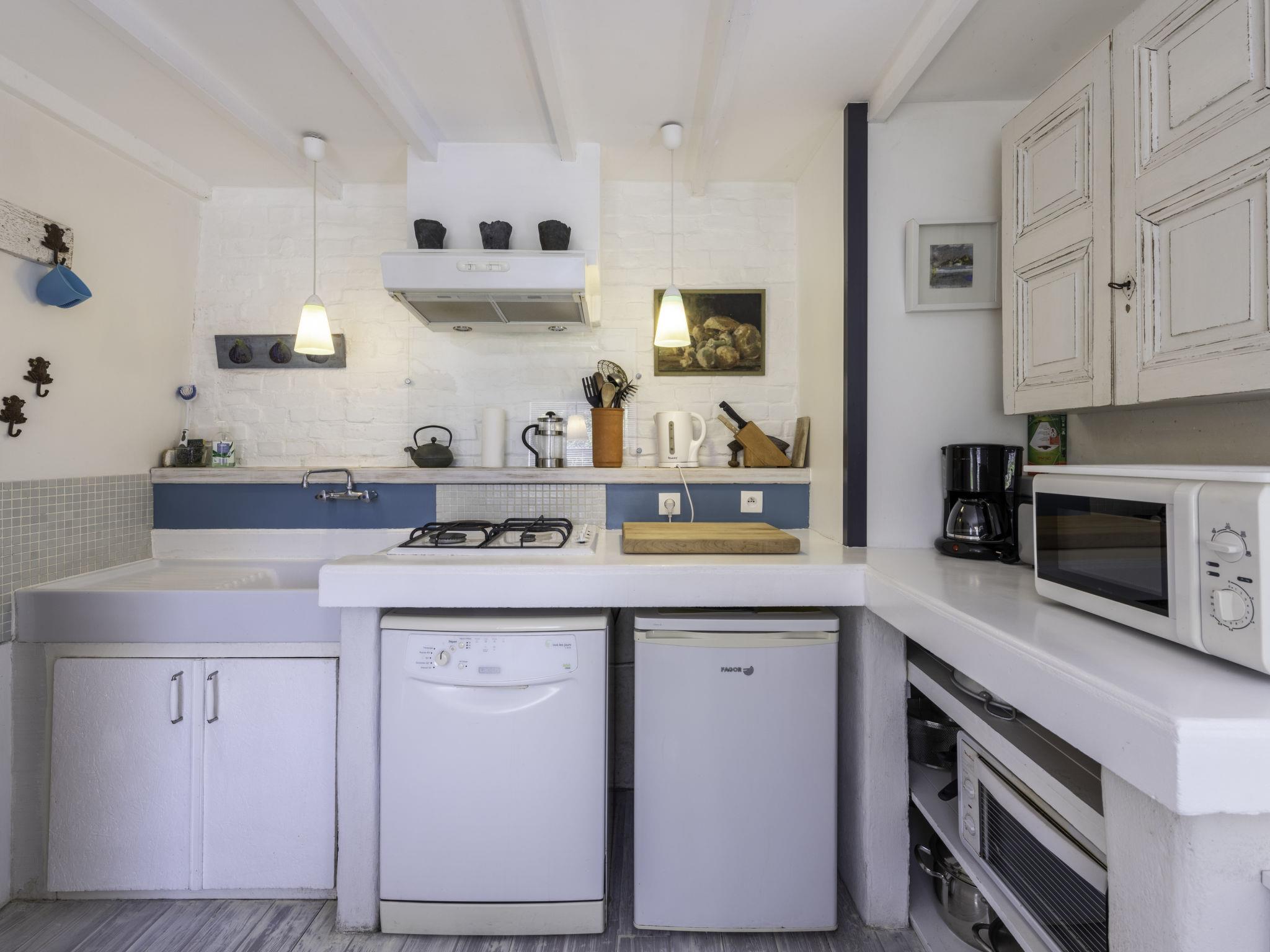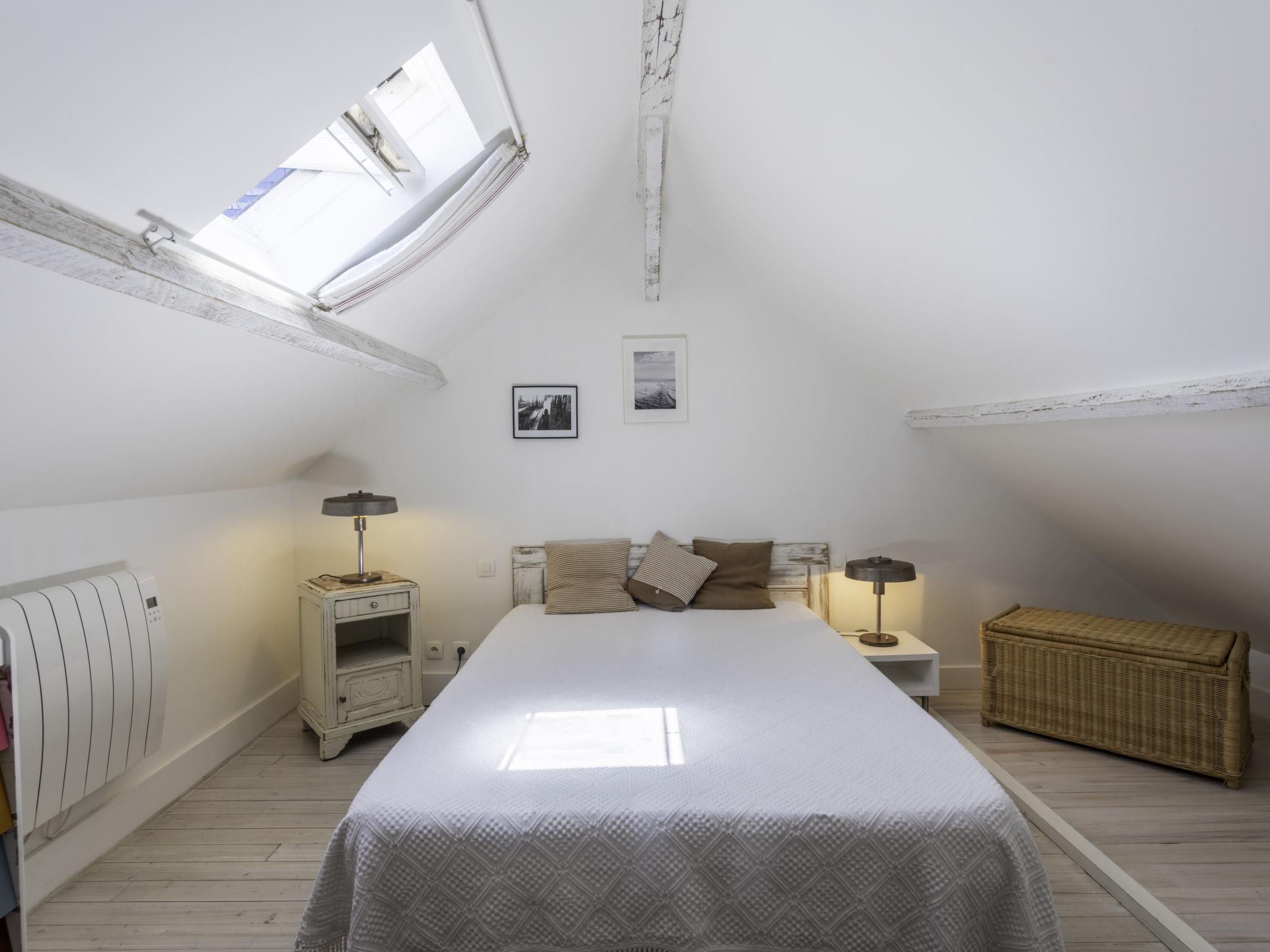 "Entre mer et jardin", 3-room house 53 m2 on 2 levels. Object suitable for 2 adults + 2 children. Bright, comfortable and tasteful furnishings: living/dining room with open-hearth fireplace, dining table, satellite TV, hi-fi system and DVD. Exit to the terrace. Kitchenette (1 hot plate, mini-oven, dishwasher, 3 gas rings, toaster, kettle, microwave, electric coffee machine). Shower/WC. Upper floor: open walk-through room with sloping ceilings with rooflight with 2 beds (80 cm). Interconnecting room with sloping ceilings with rooflight with 1 french bed. Electric heating. Parquet floors. Terrace, garden 100 m2. Terrace furniture. Facilities: baby cot. Internet (WiFi, extra). Please note: non-smoking house. FR03684