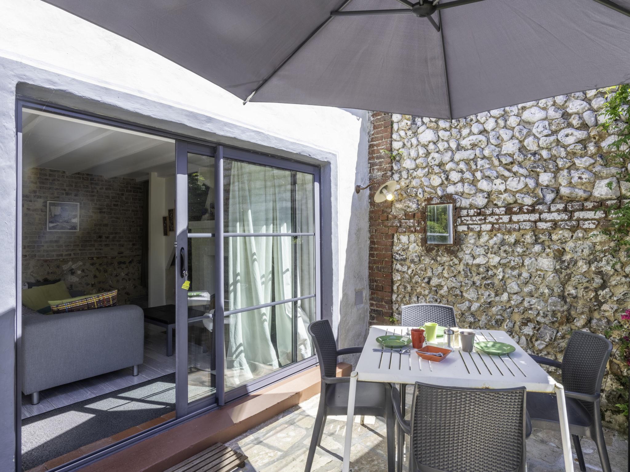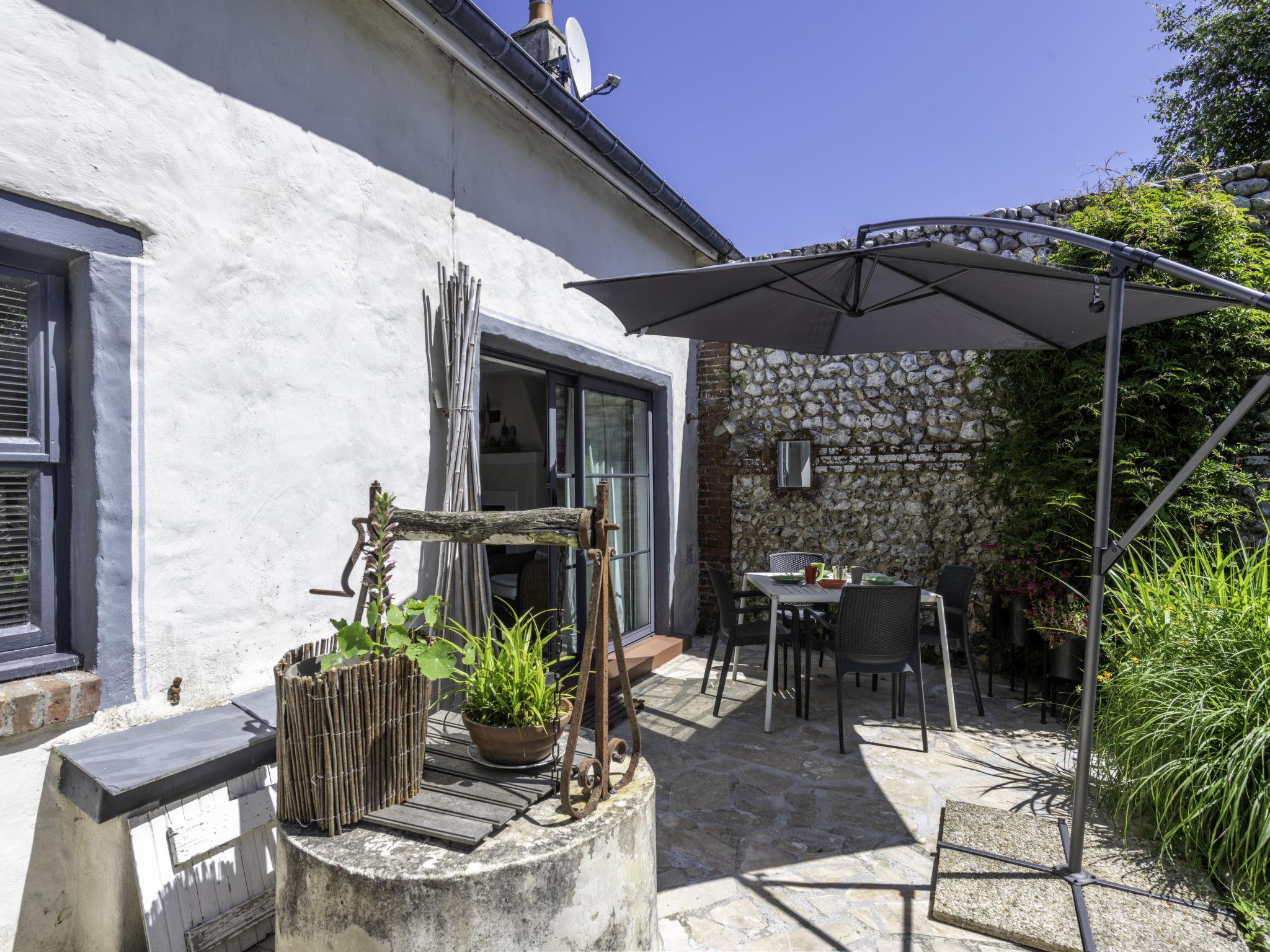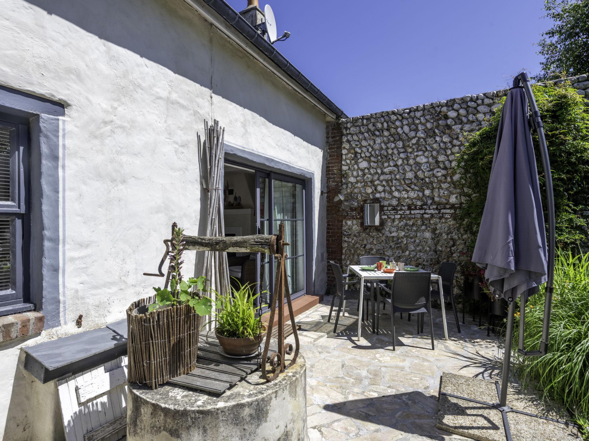 Single-family house "Entre mer et jardin", semi-detached. 200 m from the centre of Saint Pierre-en-Port, 8 km from the centre of Valmont, 13 km from the centre of Fécamp, 500 m from the sea. For shared use: property 1'000 m2 (fenced) with plants and trees, meadow, parking on the premises. Shop 200 m, supermarket 8 km, bus stop "Saint Pierre en port-Centre bour" 450 m, pebble beach 500 m. Please note: the owner lives on the same property.