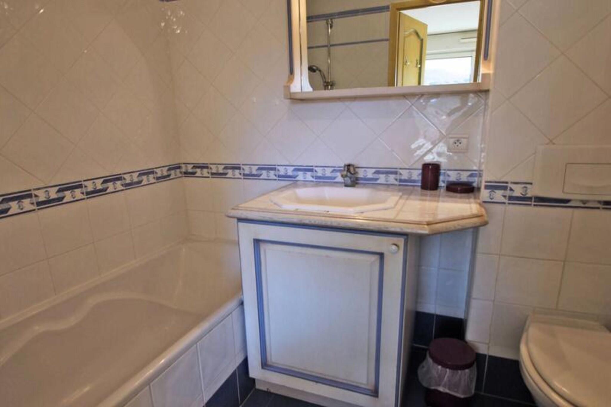 This spacious 74m², 4-room apartment is perfect for families or groups of friends, offering comfortable accommodation for up to 6 people. Located on the 3rd floor with an elevator, the apartment features an air-conditioned living room with a sofa, armchair, coffee table, and flat-screen TV, creating a cozy area to relax. The dining area, with a table and chairs, is open to the fully equipped kitchen, which includes modern appliances such as a 4-burner hob, dishwasher, coffee maker, toaster, kettle, oven, and microwave. The living space opens directly onto a terrace with garden furniture, ideal for enjoying the outdoors. The apartment's three bedrooms are designed for comfort and convenience. The master suite, featuring a 160 cm bed, has ample storage with large cupboards and its own private terrace with garden furniture, as well as an en-suite bathroom with a bathtub/shower, vanity unit, and WC. The second bedroom also has a 160 cm bed (2x80) and cupboards, while the third air-conditioned bedroom is furnished with two 90 cm beds and cupboards. A second bathroom, equipped with a bath and shower, vanity unit, and washing machine, ensures additional comfort for guests. Additional amenities include a private underground parking space, air conditioning throughout, and pocket WiFi. The residence features a swimming pool, open from May to September, and is located just 500 meters from the city center, 350 meters from the beach, and 100 meters from shops. With its prime location and well-appointed spaces, this apartment offers the perfect base for a relaxing getaway.