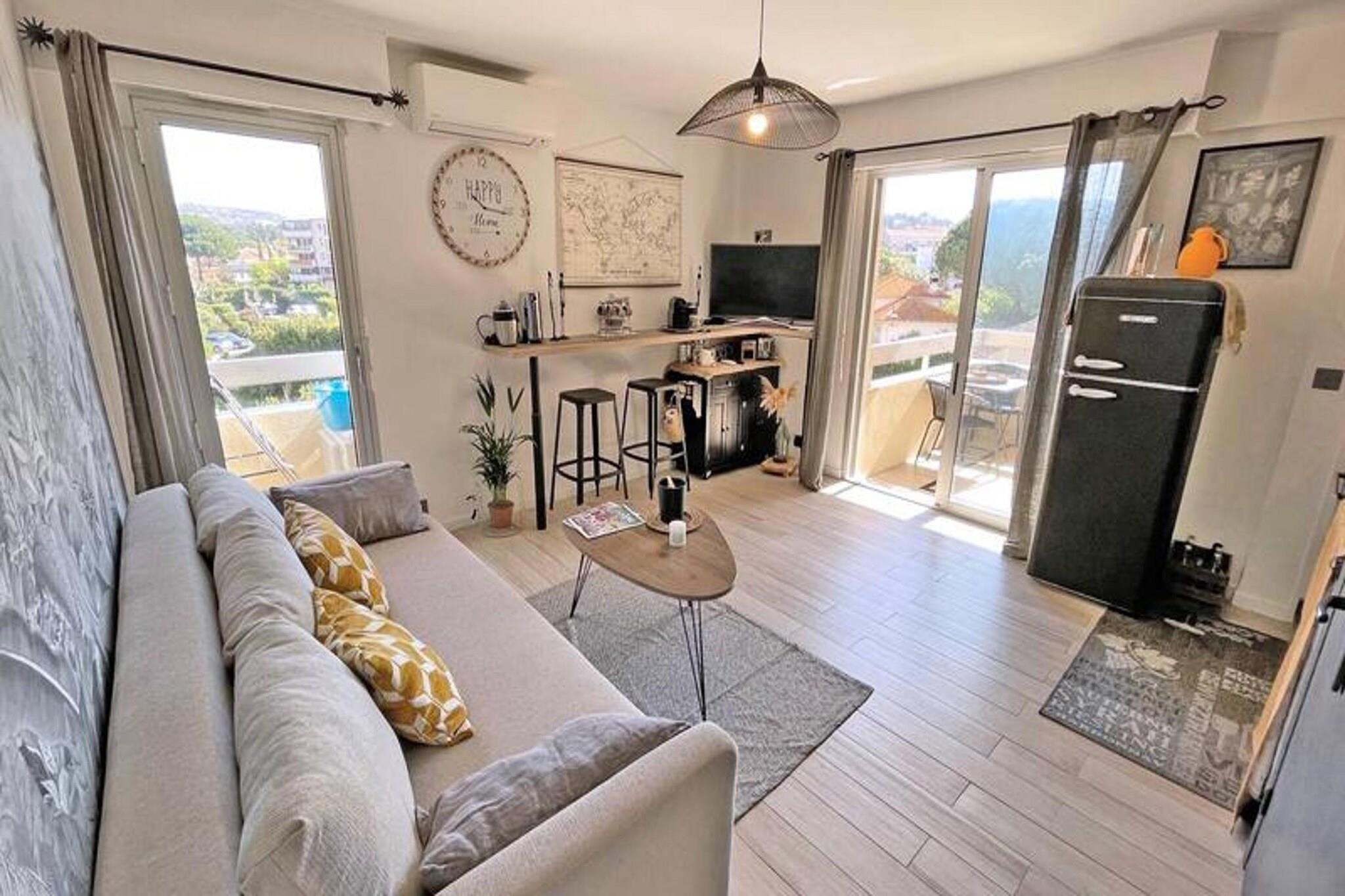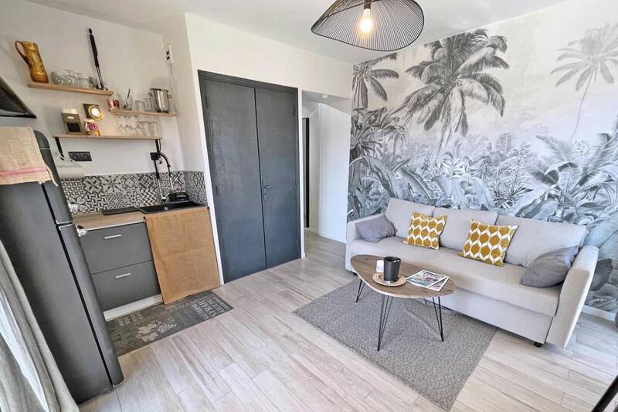 This charming 26m² studio, located on the 3rd floor with elevator access, is a fully renovated and cozy retreat ideal for couples or friends. The air-conditioned main room features a 160cm "rapido" type sofa bed, a flat-screen TV, and a bar with stools. The open kitchen is well-equipped with modern appliances including a 2-burner induction hob, oven, microwave, Nespresso machine, and various kitchen utensils. A bathroom with a shower, vanity unit, and washing machine completes the interior, while the terrace with dining furniture and a sofa offers an inviting space to unwind with an open view. Perfectly positioned in Sainte-Maxime, the studio is just 250 meters from the city center, 300 meters from the beach, and 100 meters from the nearest shops. Guests will enjoy the convenience of walking to local attractions, cafes, and markets. The central location also ensures easy access to all amenities for a truly enjoyable stay. Additional amenities include private parking secured by a gate, WiFi (fiber), and a common bicycle garage for active guests. The studio also provides an annex balcony for hanging laundry, making it ideal for both short and long stays. Please note, pets are not allowed, and smoking is prohibited inside the accommodation.