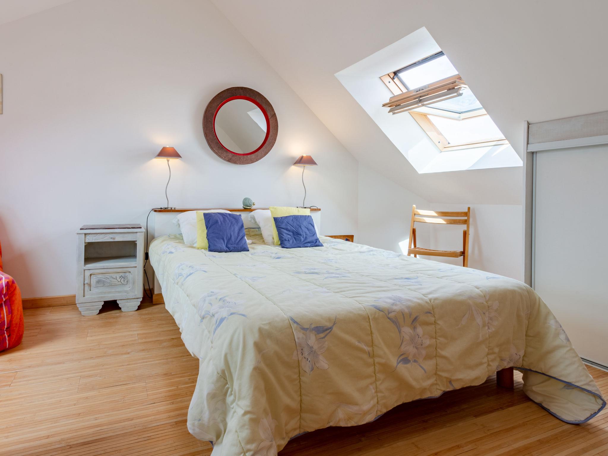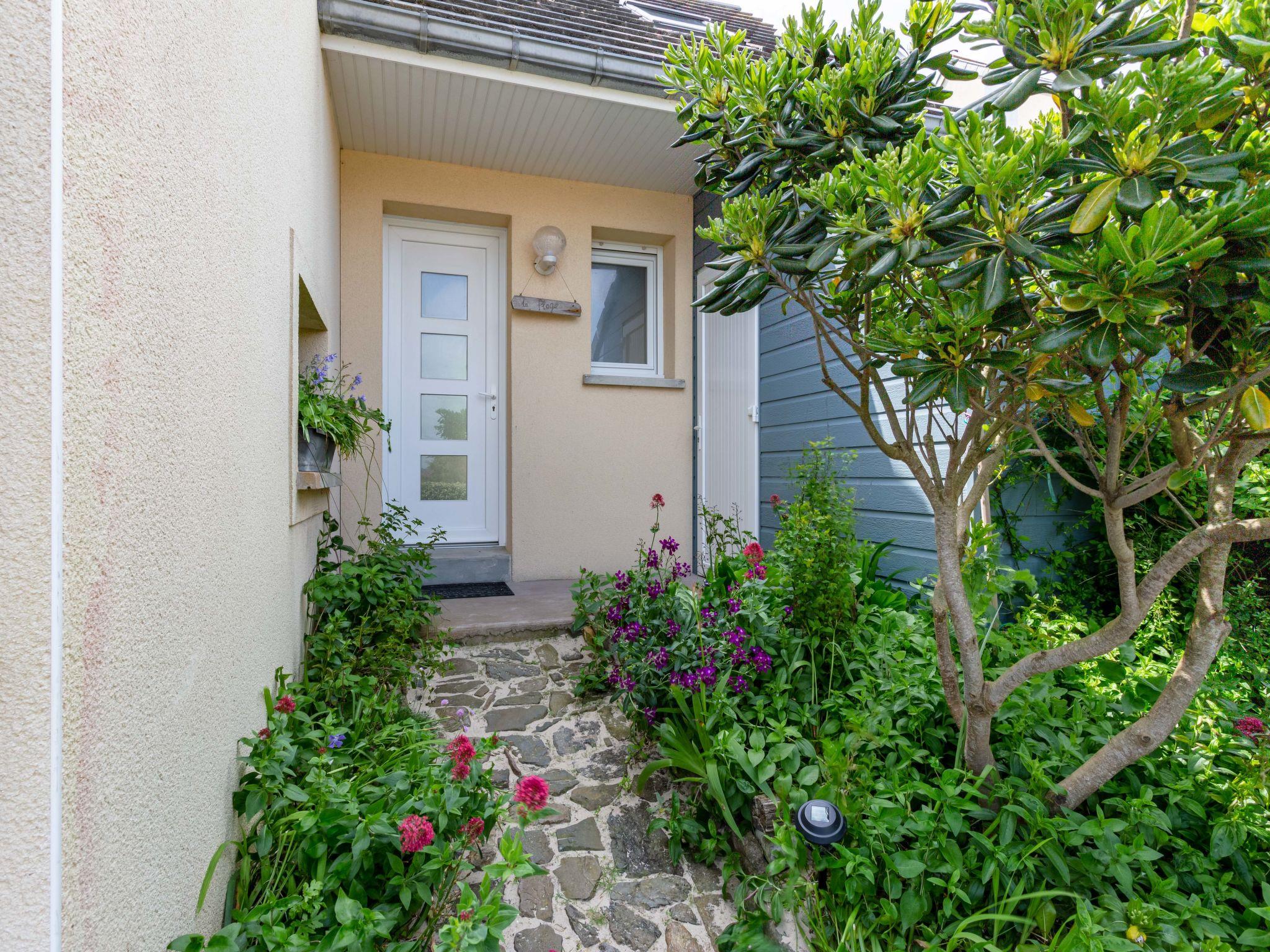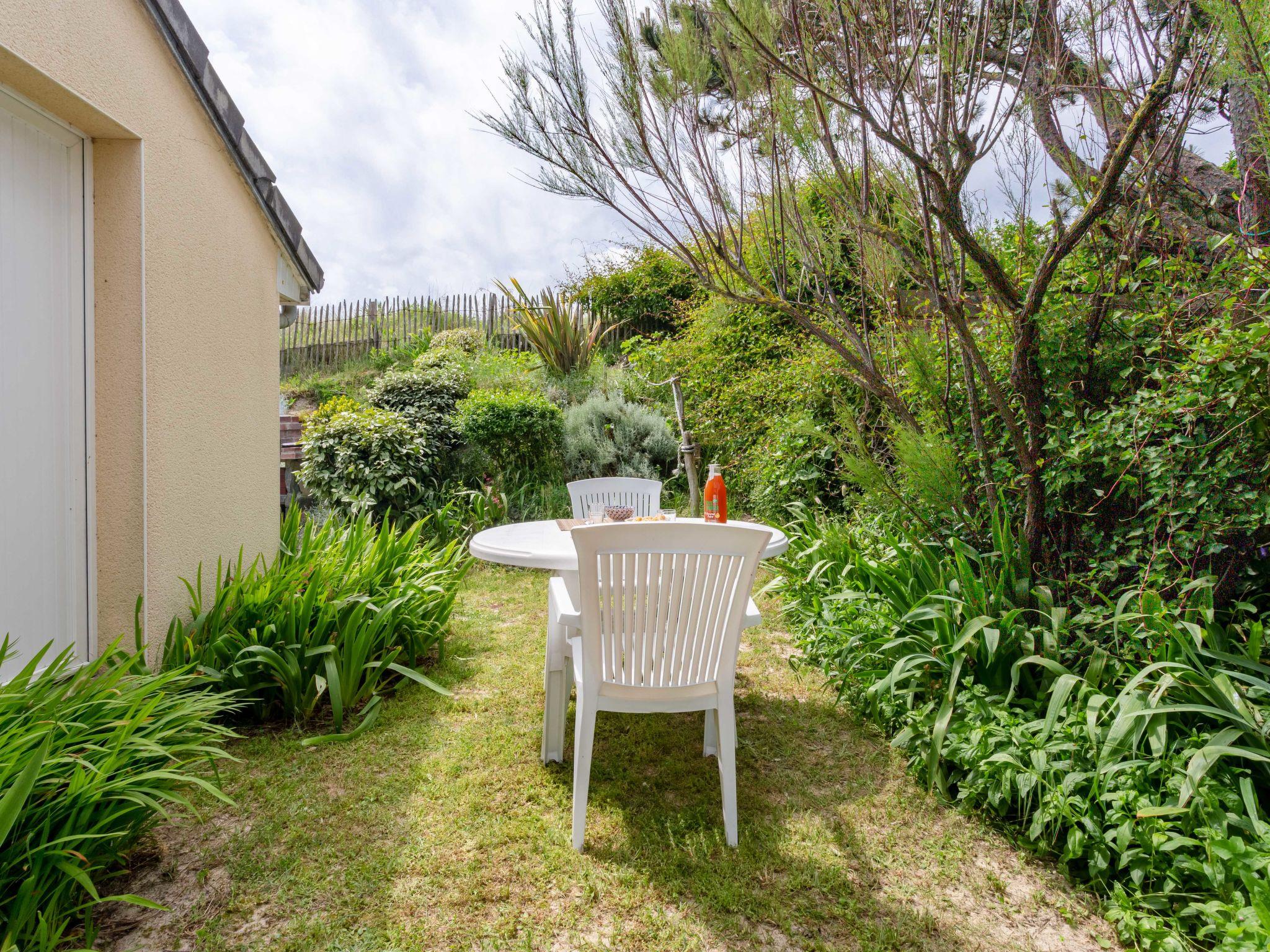 "La Plage", 2-room semi-detached house 36 m2 on 2 levels. Practical and beautiful furnishings: living/dining room with dining table, TV and radio. Exit to the garden. Kitchenette (2 hot plates, toaster, kettle, microwave, electric coffee machine). Shower/WC. Electric heating. Upper floor: (spiral staircase), 1 open room with sloping ceilings with rooflight with 1 french bed (140 cm, length 190 cm), TV. Wooden floors. Terrace. Terrace furniture, barbecue (portable), box-room. View of the sea. Please note: non-smoking house. Smoke alarm.