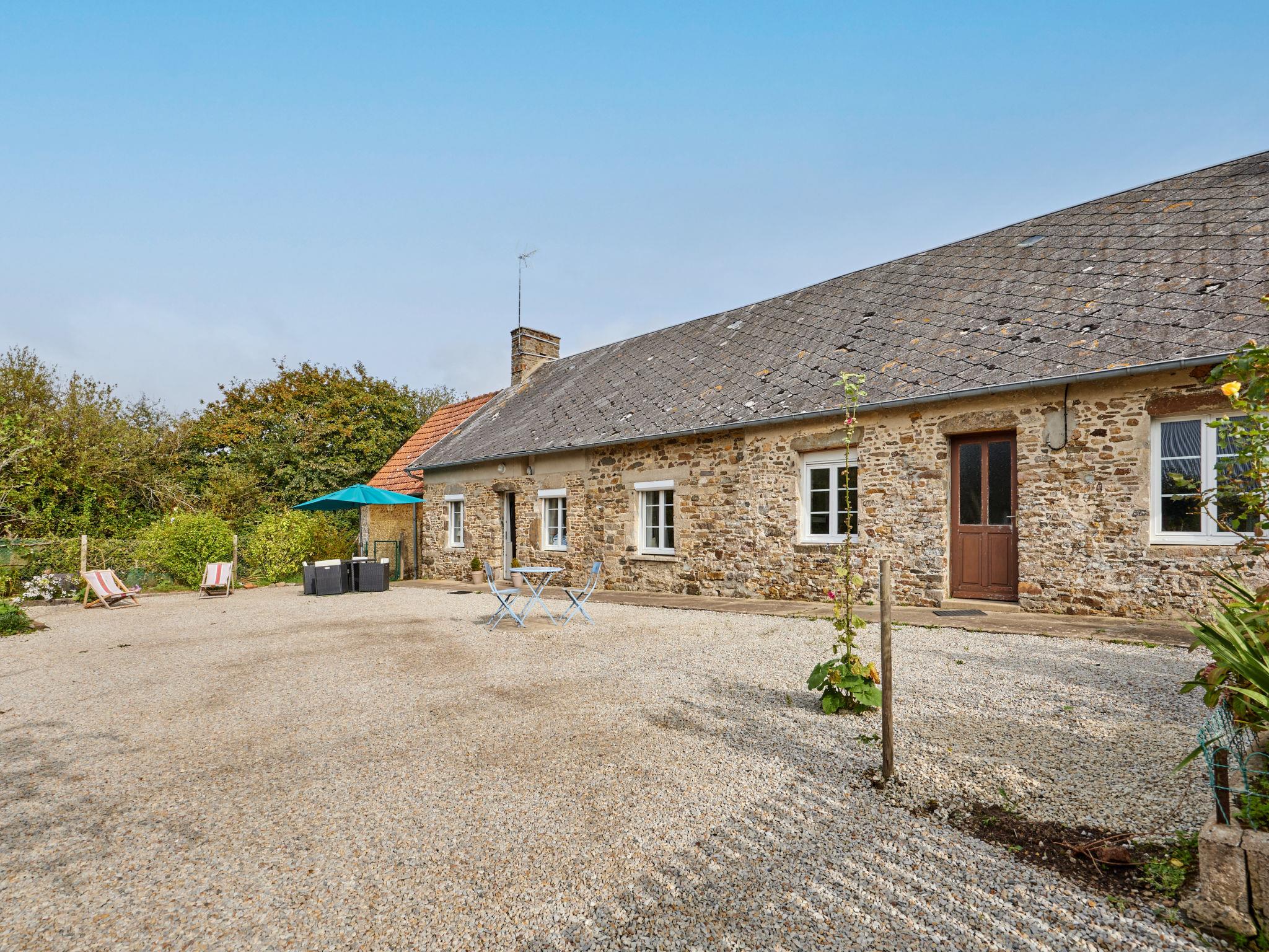 Cosy house "La Marinière". In a quiet position, 3 km from the sea, 30 m from the beach, in the countryside. Private: property 1'946 m2 (fenced) with lawn, beautiful garden to relax, courtyard, parking (for 2 cars). Supermarket 11 km, bus stop "La Haye - Rue de Verdun" 8 km, sandy beach "Plage de surville" 3 km. Nearby attractions: La Haye 12 km, Coutances 34 km, Agon coutainville 34 km, Granville 65 km, Cherbourg 48 m, Le Mont saint Michel 114 m.