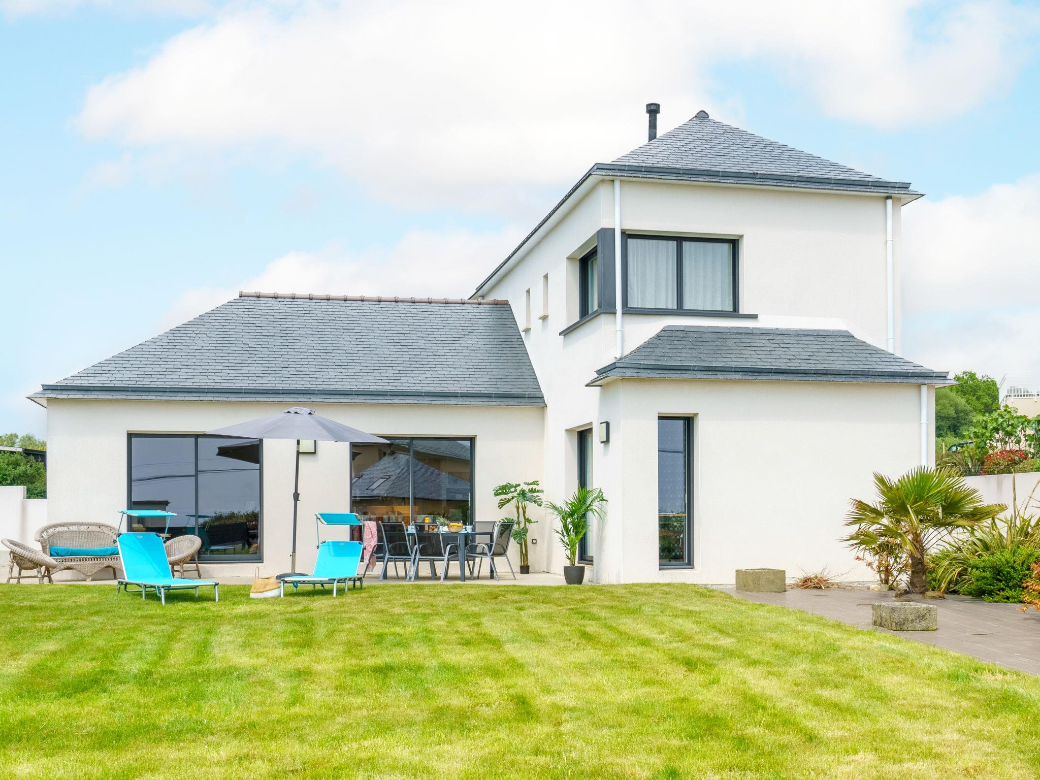 Beautiful single-family house "Orphée", built in 2019. 1.2 km from the centre of Telgruc-sur-Mer, in the residential district, 2.2 km from the sea. Private: property 1'250 m2 (fenced) with wildlife garden and trees, parking, single garage. Supermarket 1.2 km, bus stop 2 km, sandy beach "Trez Bellec" 2.2 km, indoor swimming pool 15 km. Nearby attractions: Camaret 21 km, Cap de la Chèvre 24 km, Pointe de Pen Hir 24 km, Abbaye de Landevennec 13 km, Oceanopolis, Brest 48 km, Douarnenez 27 km. Hiking paths: Presqu'île de Crozon 1 km.