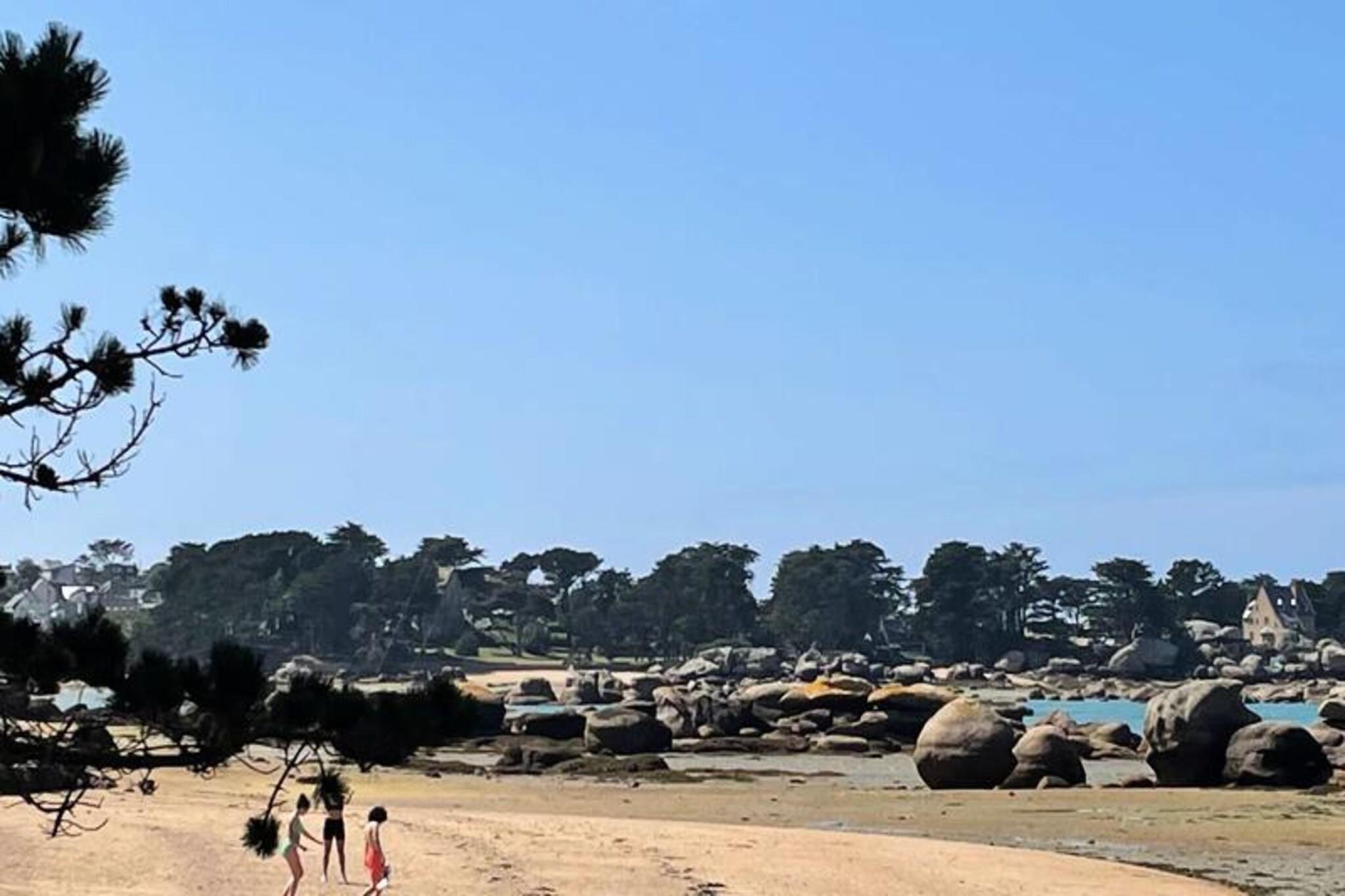 Holiday home and its magnificent garden decorated with rocks typical of the Pink Granite Coast. The house is rated 3 stars for its comfort. With a surface area of ??90 m², it is designed for 6 people. It includes a living-dining room with access to the terrace and the garden, an open kitchen, a “beach return” bathroom, toilet with hand basin. The three bedrooms are upstairs as well as a bathroom with a shower and toilet. Private parking, non-smoking accommodation, pets not allowed, beds made, linen and final cleaning included. Rental equipment: Induction hob, fridge-freezer, electric oven and microwave, coffee maker, Tassimo pod machine, toaster, kettle, dishwasher. Sofa and armchairs, television, Wifi internet box, large solid wood table and chairs, 2 beds 140x190 cm, 2 beds 90x190 cm, duvets and pillows, baby equipment (folding bed + mattress, adjustable chair). Large shower cubicle, sink, washing machine in the small bathroom. Garden furniture, large parasol, plancha. Environment : You will stay in the center of Trégastel, close to both shops and the beach. Ideal setting to recharge your batteries and discover the Pink Granite Coast. A change of scenery guaranteed! Services included: Household linen for 2 people Household linen for 1 person Heating - 1