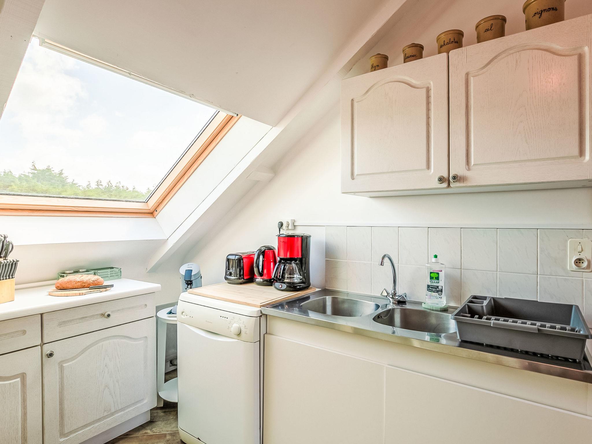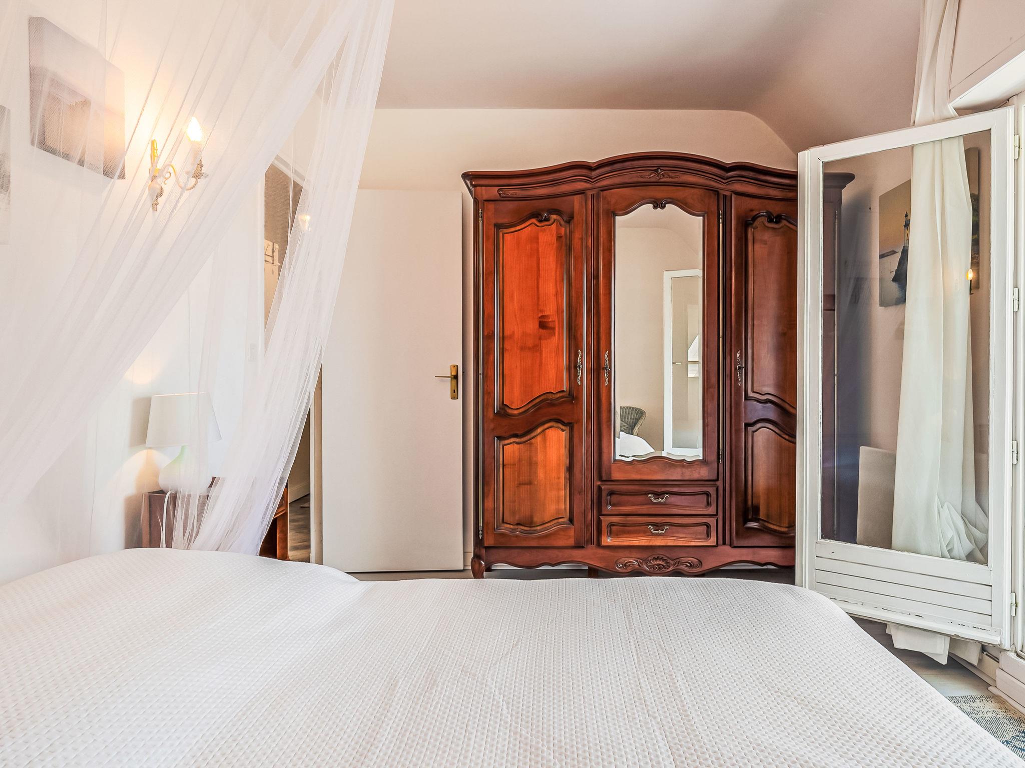 "Belle Vue Mer", 3-room apartment 58 m2 on 1st floor. Bright, with sloping ceilings, beautiful and romantic furnishings: upper floor: living room with sloping ceilings. Exit to the balcony. 1 room with 1 french bed (140 cm, length 190 cm). Exit to the balcony. 1 room with sloping ceilings with 2 beds (90 cm, length 190 cm). Exit to the balcony. With sloping ceilings, open kitchen (oven, dishwasher, 4 induction hot plates, toaster, kettle, freezer, electric coffee machine, Capsules for coffee machine (Senseo) extra) with dining table. Bathroom, sep. WC. Electric heating. 3 small balconies 3 m2, south facing position. Balcony furniture. Very beautiful panoramic view of the sea. Facilities: washing machine, iron, hair dryer. Internet (WiFi, free). Please note: non-smokers only. Smoke alarm. Offer by a private individual according to Art. 155, IV of CGI.